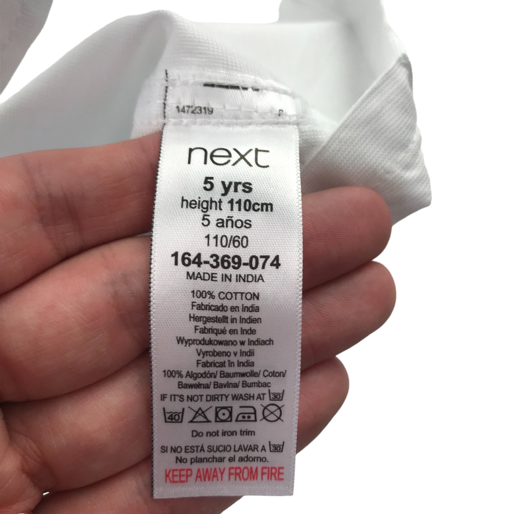 Preloved second hand Next Shirt Age 5 White with Blue Sleeves Stripe Across Chest Short Sleeve Button Up Cotton