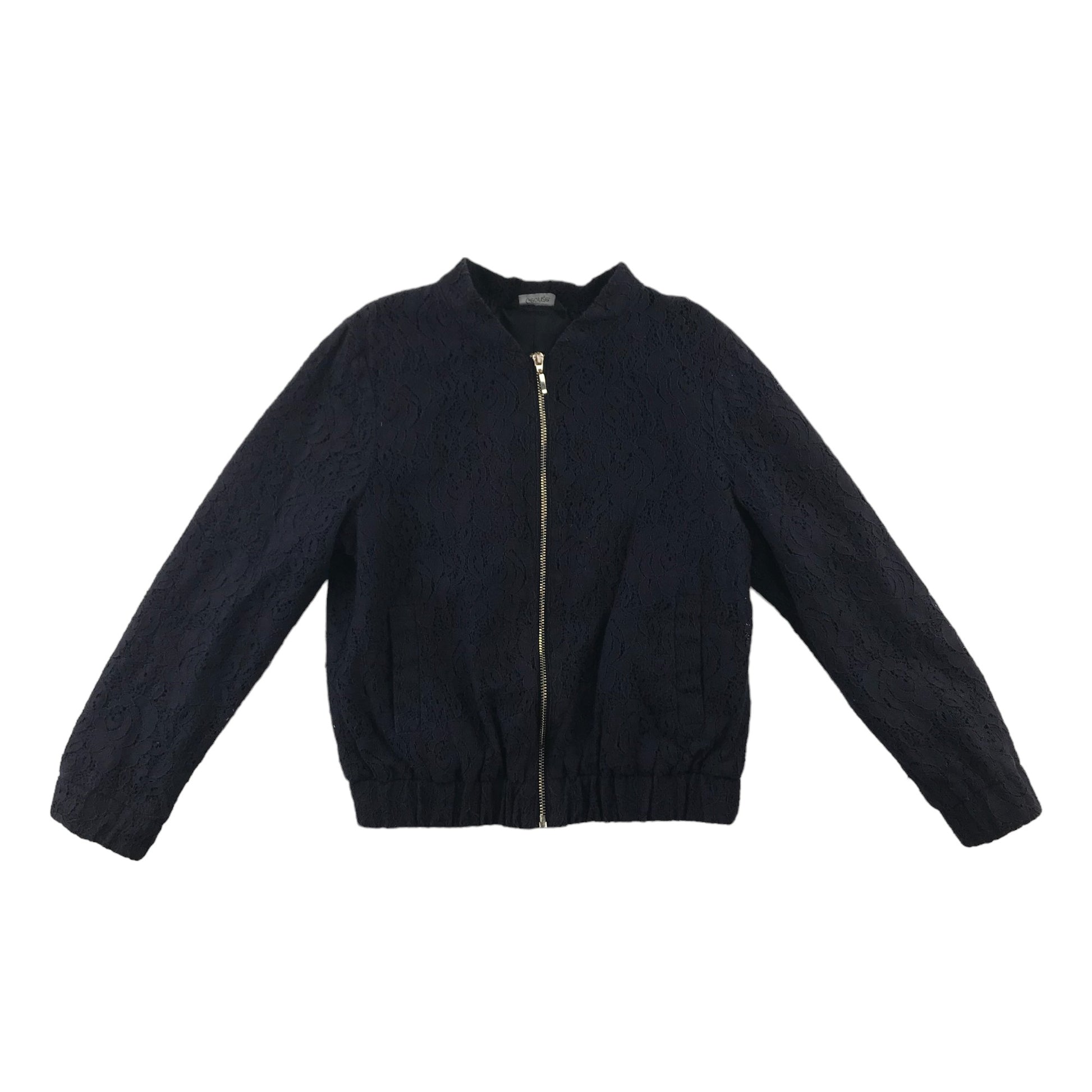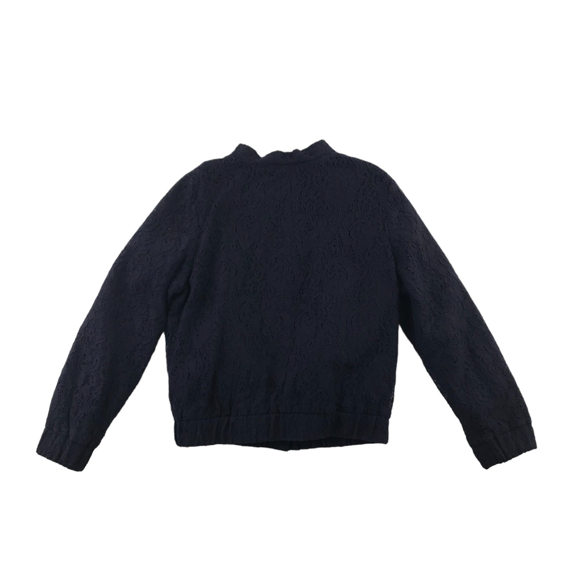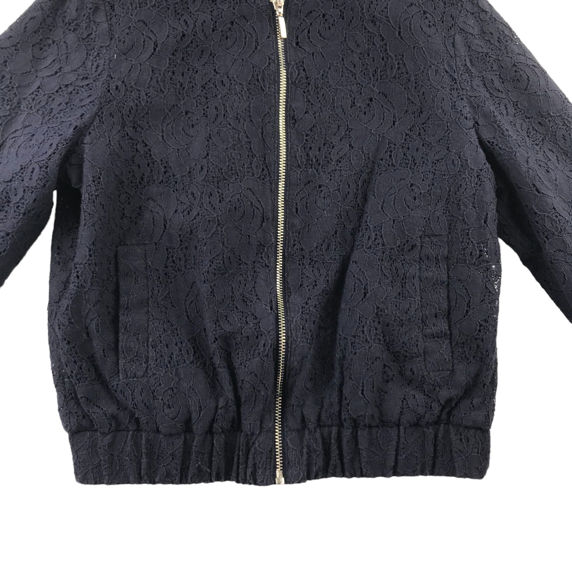 Preloved second hand George Sweater Age 7 Navy Bomber Style Floral Lace Design Full Zipper