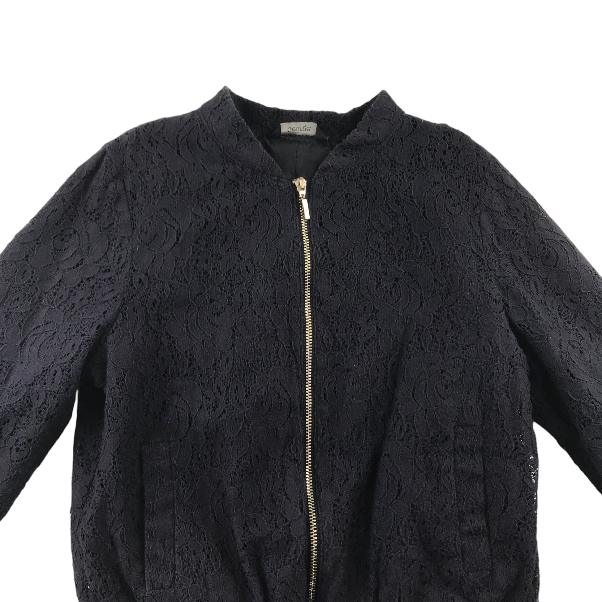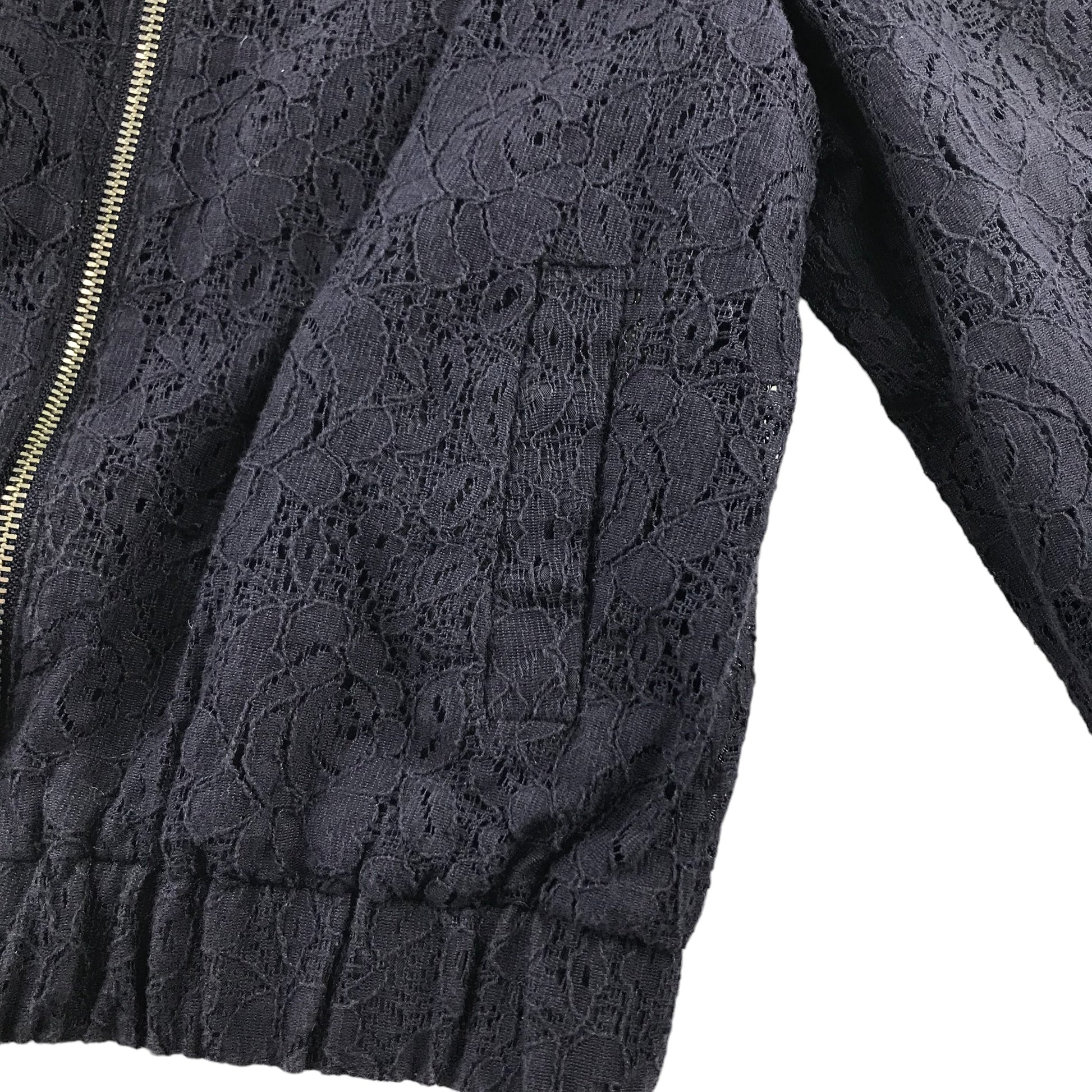 George Sweater Age 7 Navy Bomber Style Floral Lace Design Full Zipper