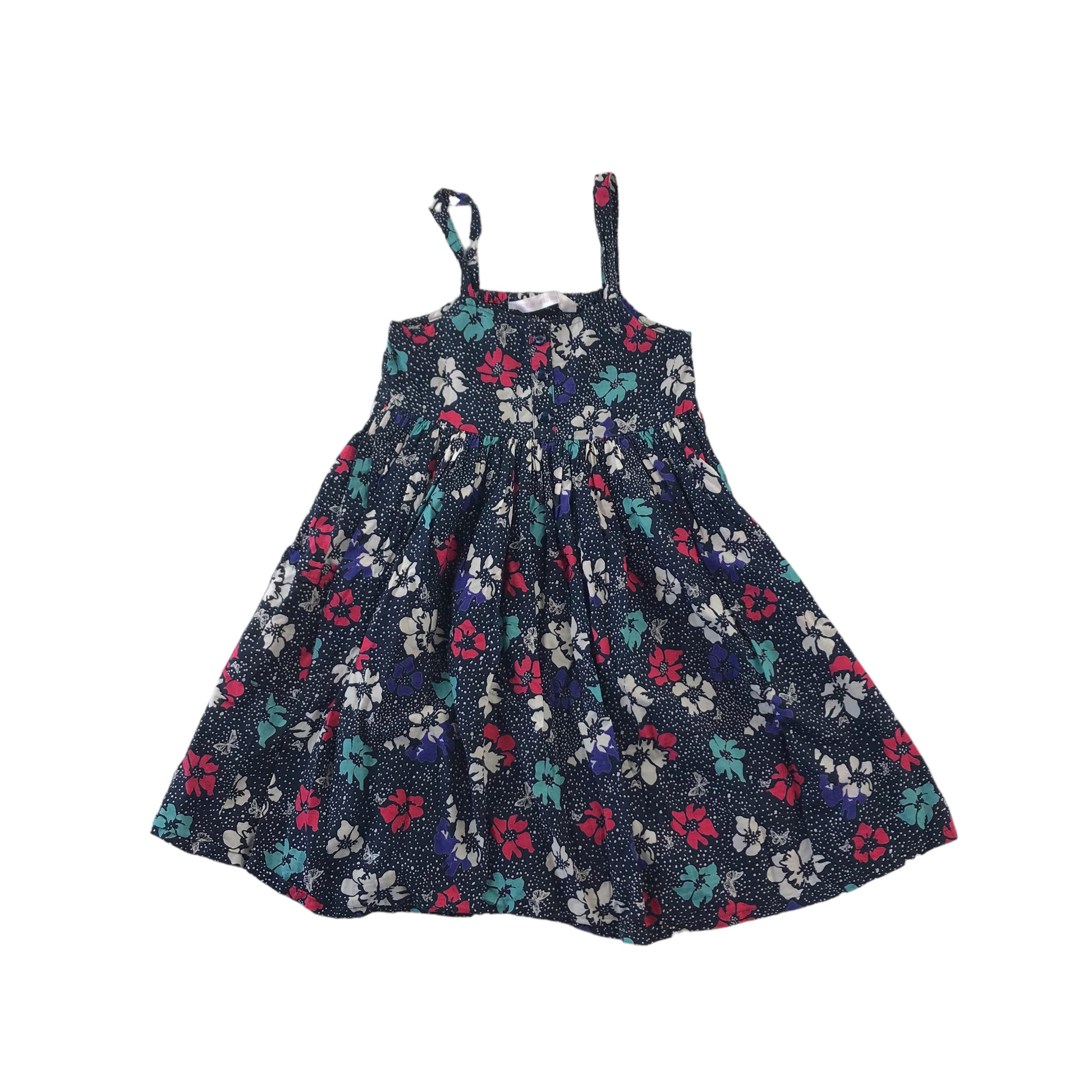 Preloved second hand Matalan Dress Age 4 Navy Blue Floral Print Pattern Cotton