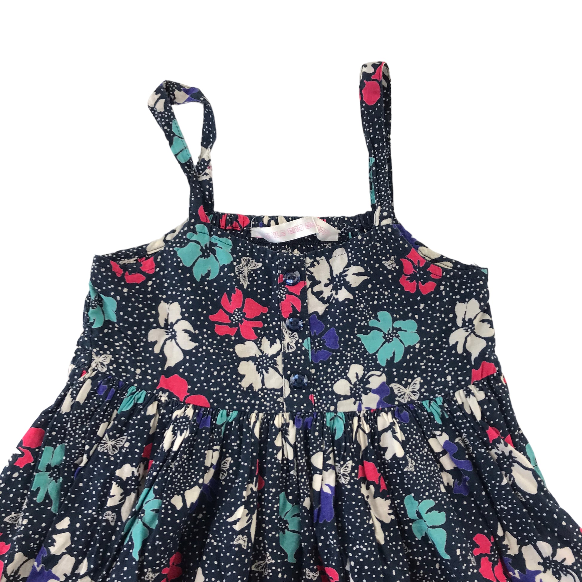Matalan Dress Age 4 Navy Blue Floral Print Pattern Cotton