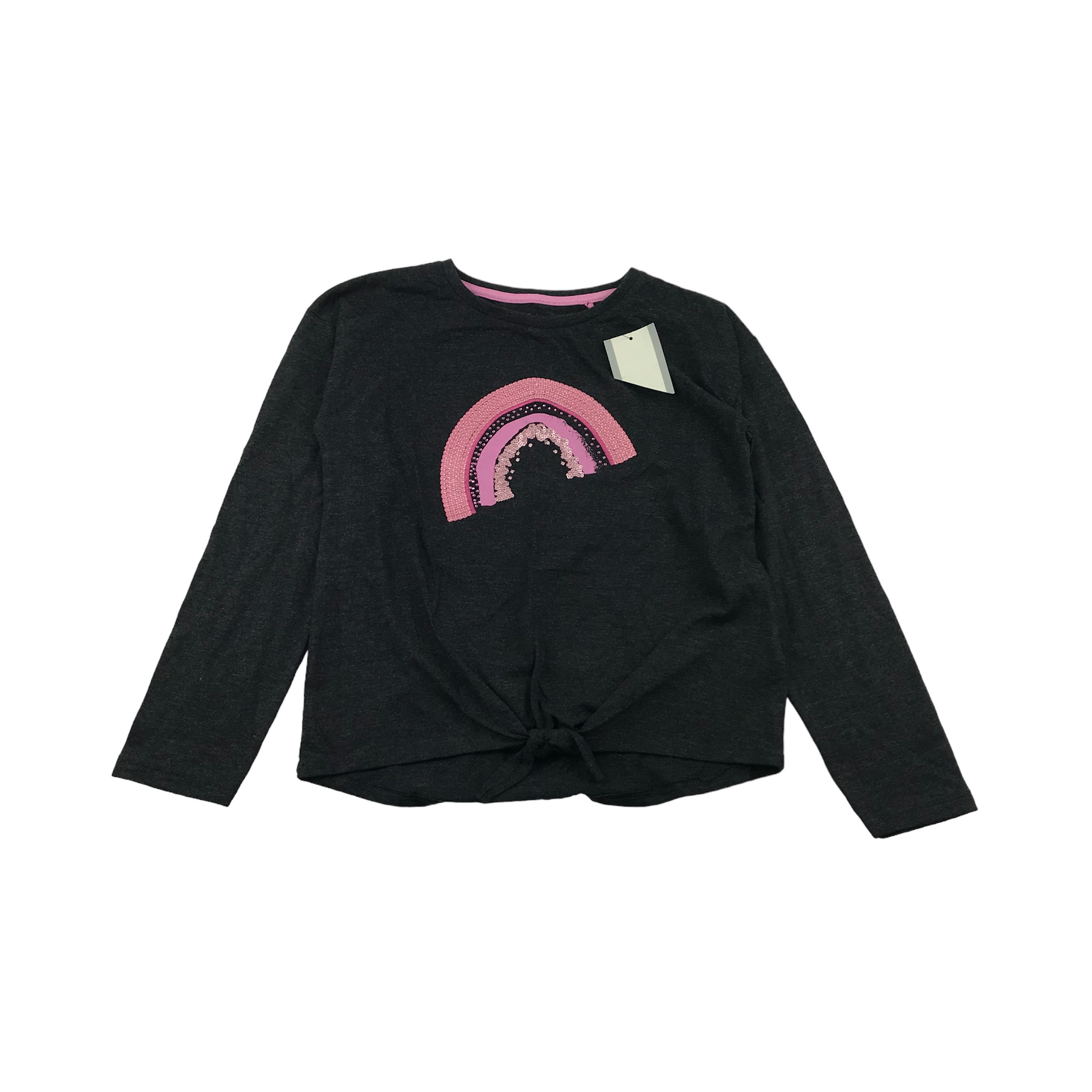 Tu dark Grey Long Sleeve Pink Rainbow T-shirt Age 10