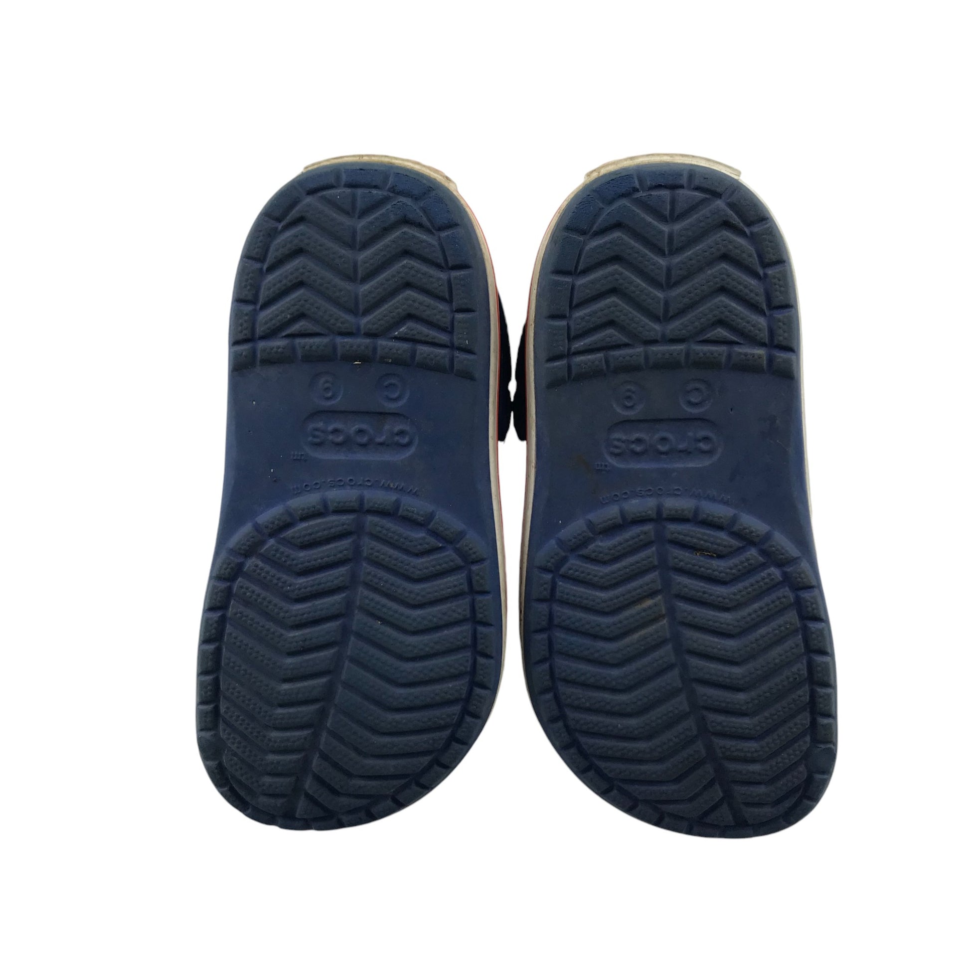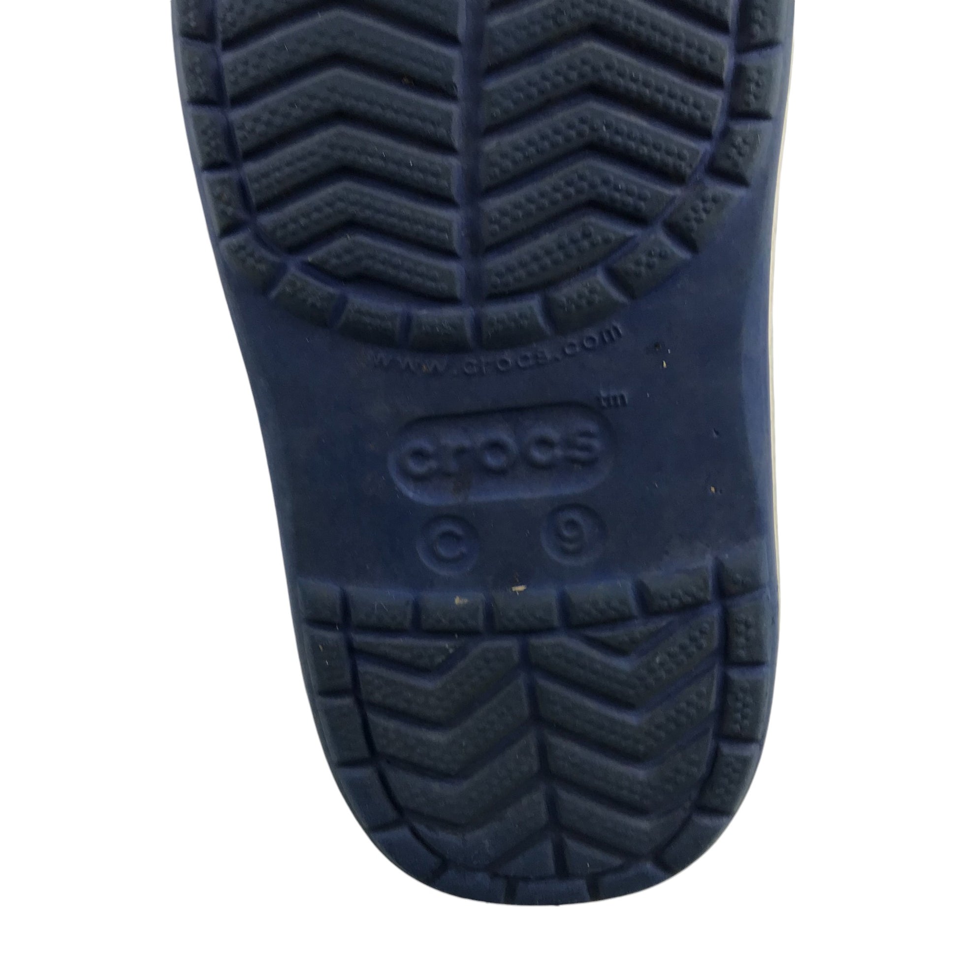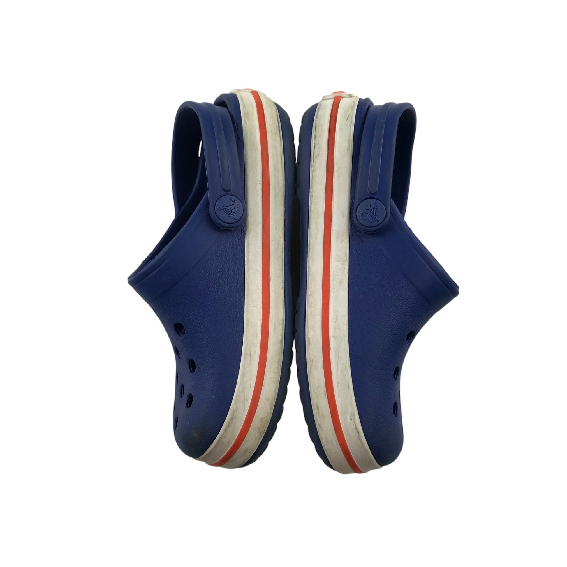 Crocs Shoe Size 9 Junior Blue with Logo and White and Red Trim Detailing