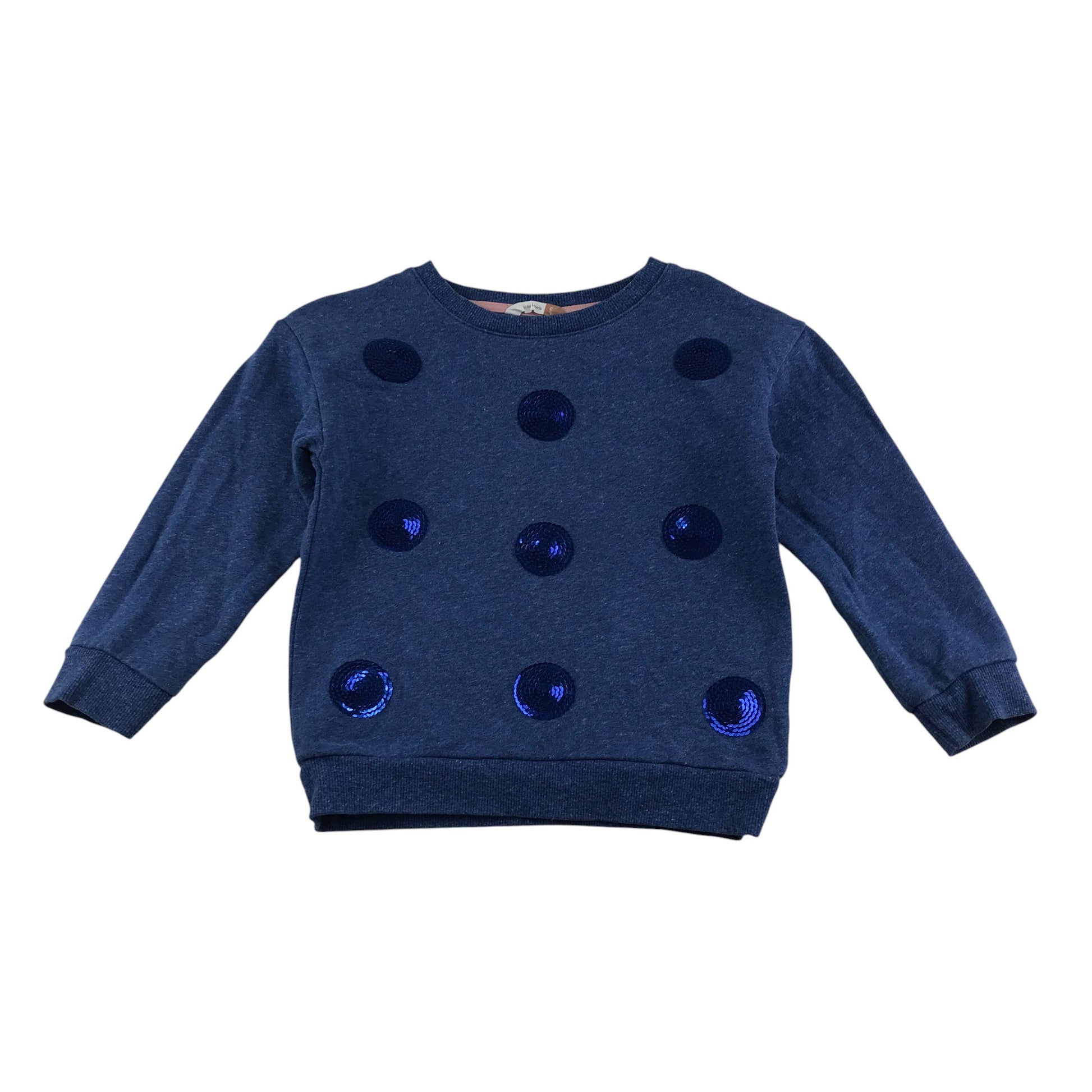 John Lewis sweater 4-5 years navy sequin circle design crewneck cotton