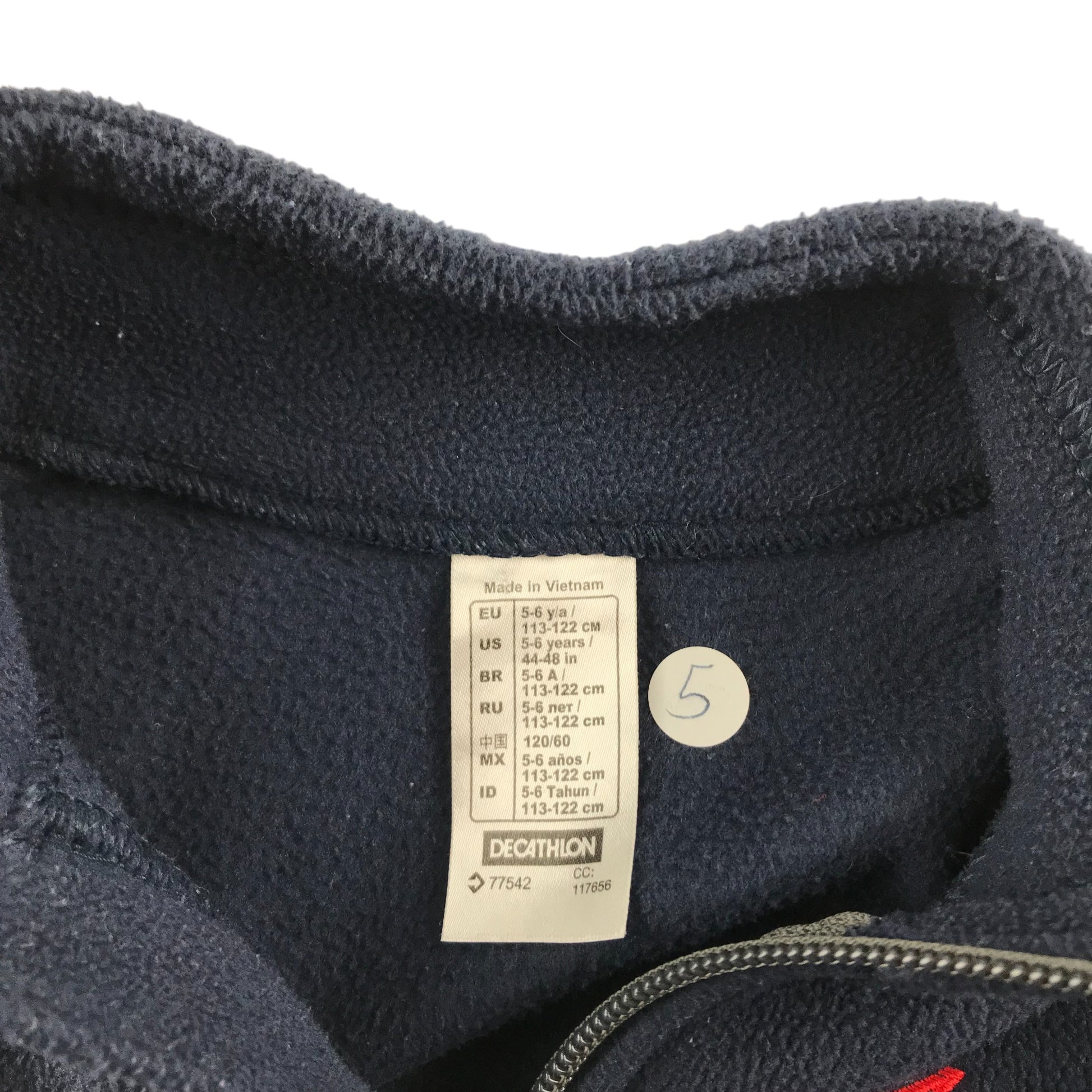 Preloved second-hand Decathlon Fleece Age 5-6 Navy Blue Plain Full Zipper
