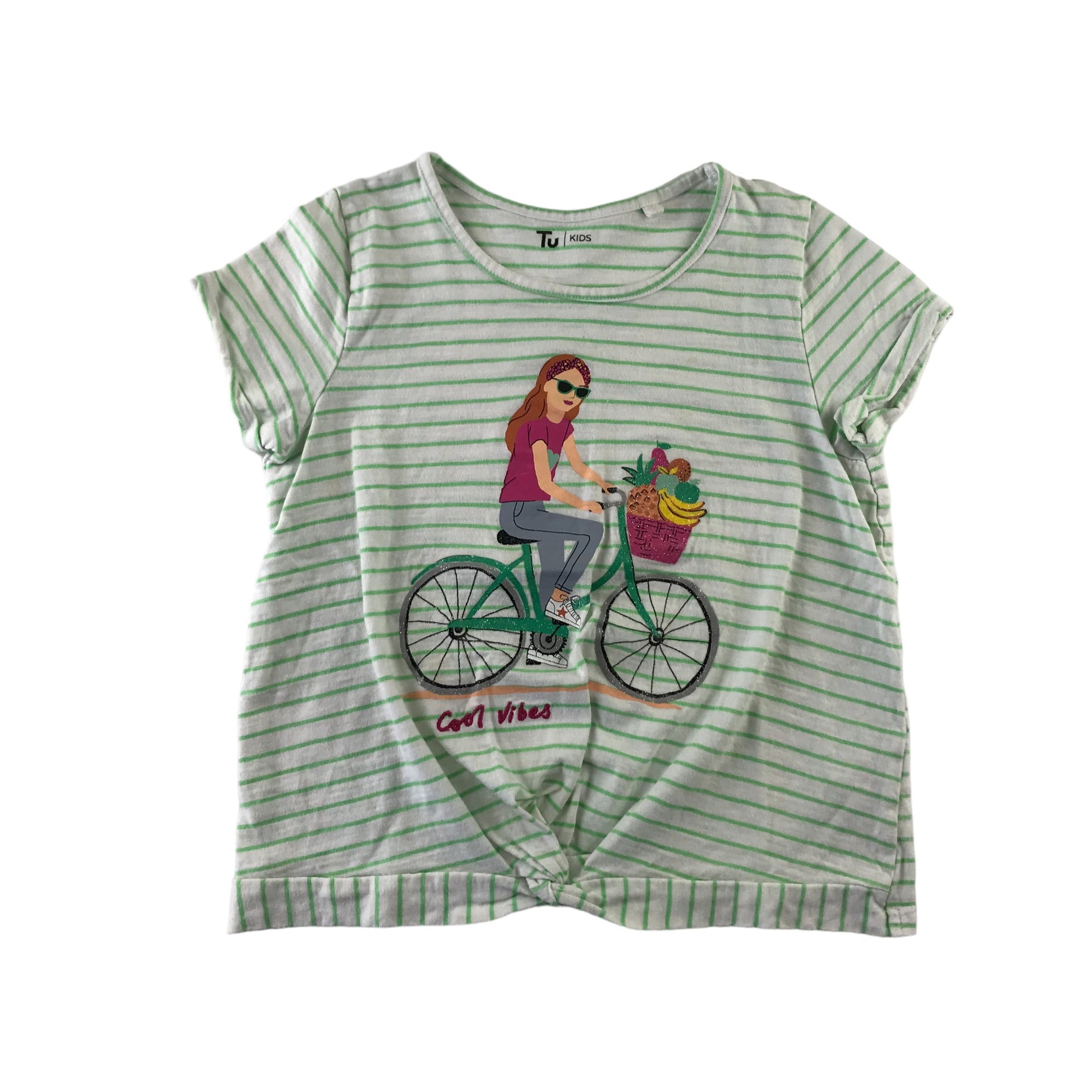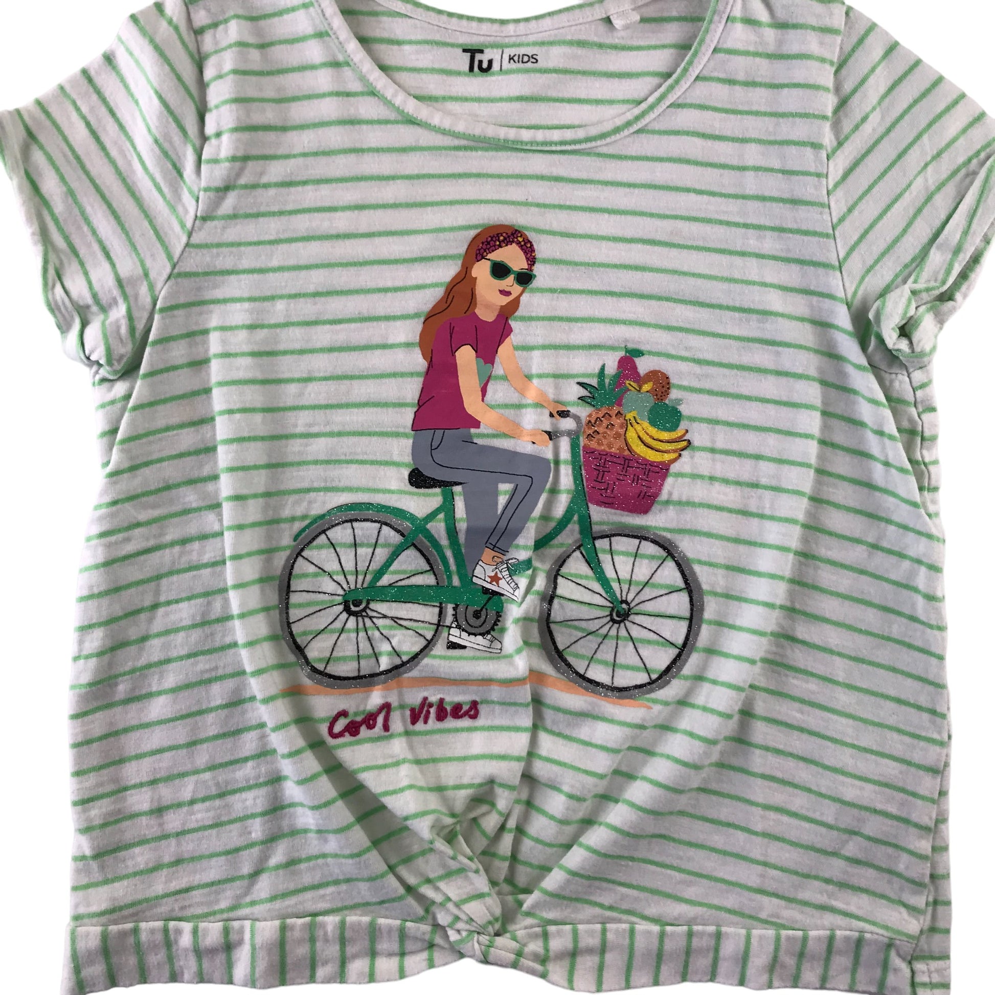 Tu t-shirt 7-8 years white and green stripy Cool Vibes cycling girl