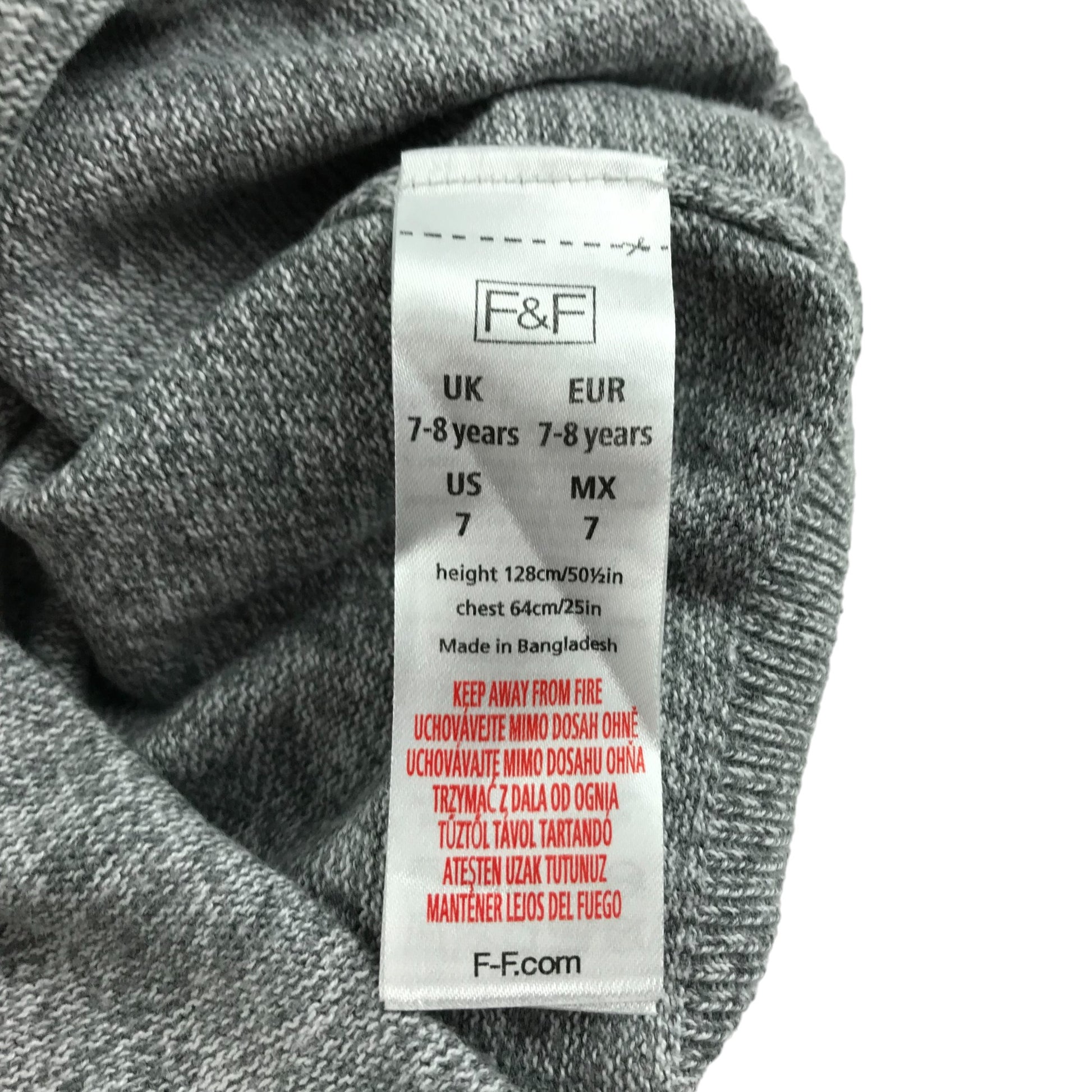Preloved second-hand F&F Jumper Age 7 Grey Tone Plain Long Sleeve Knit