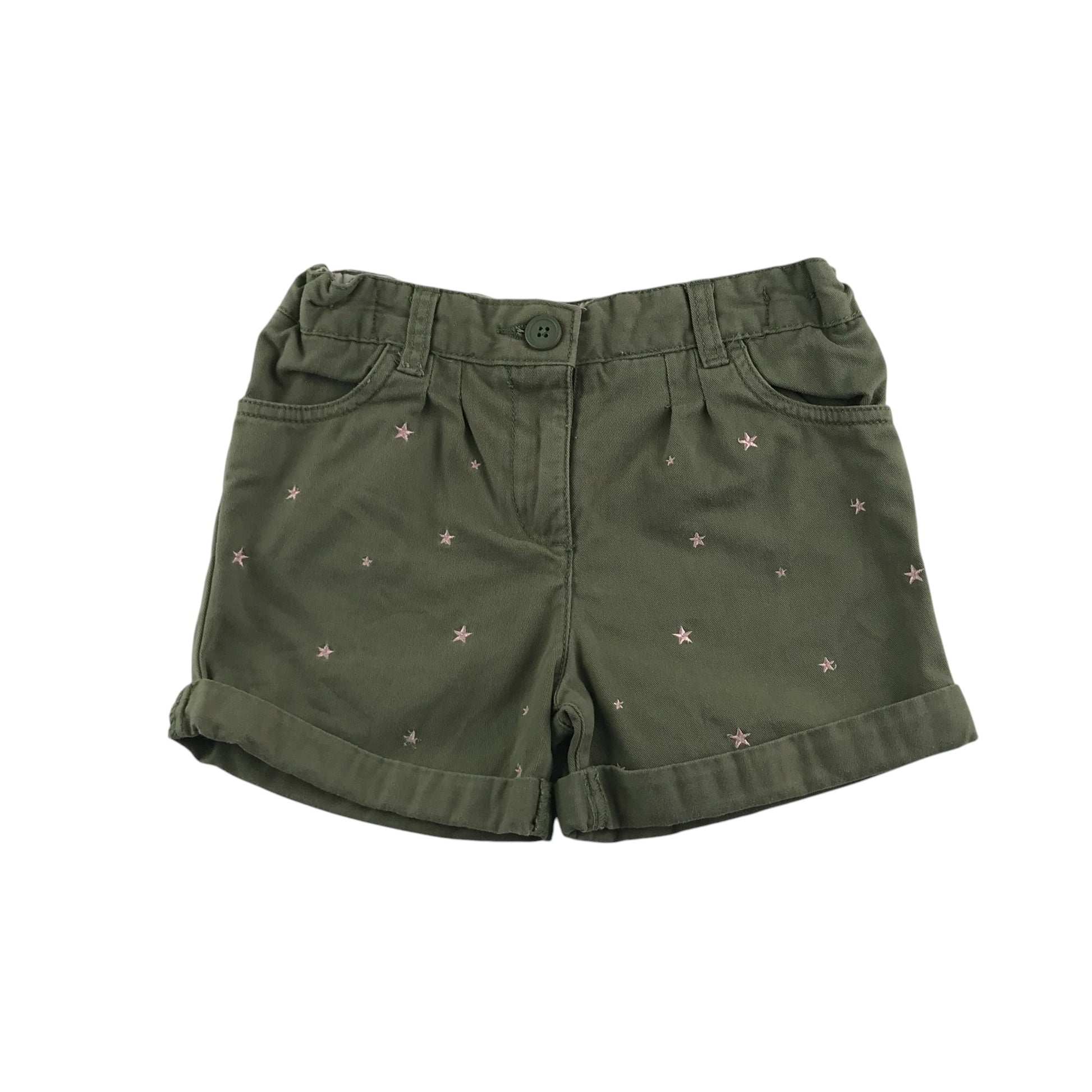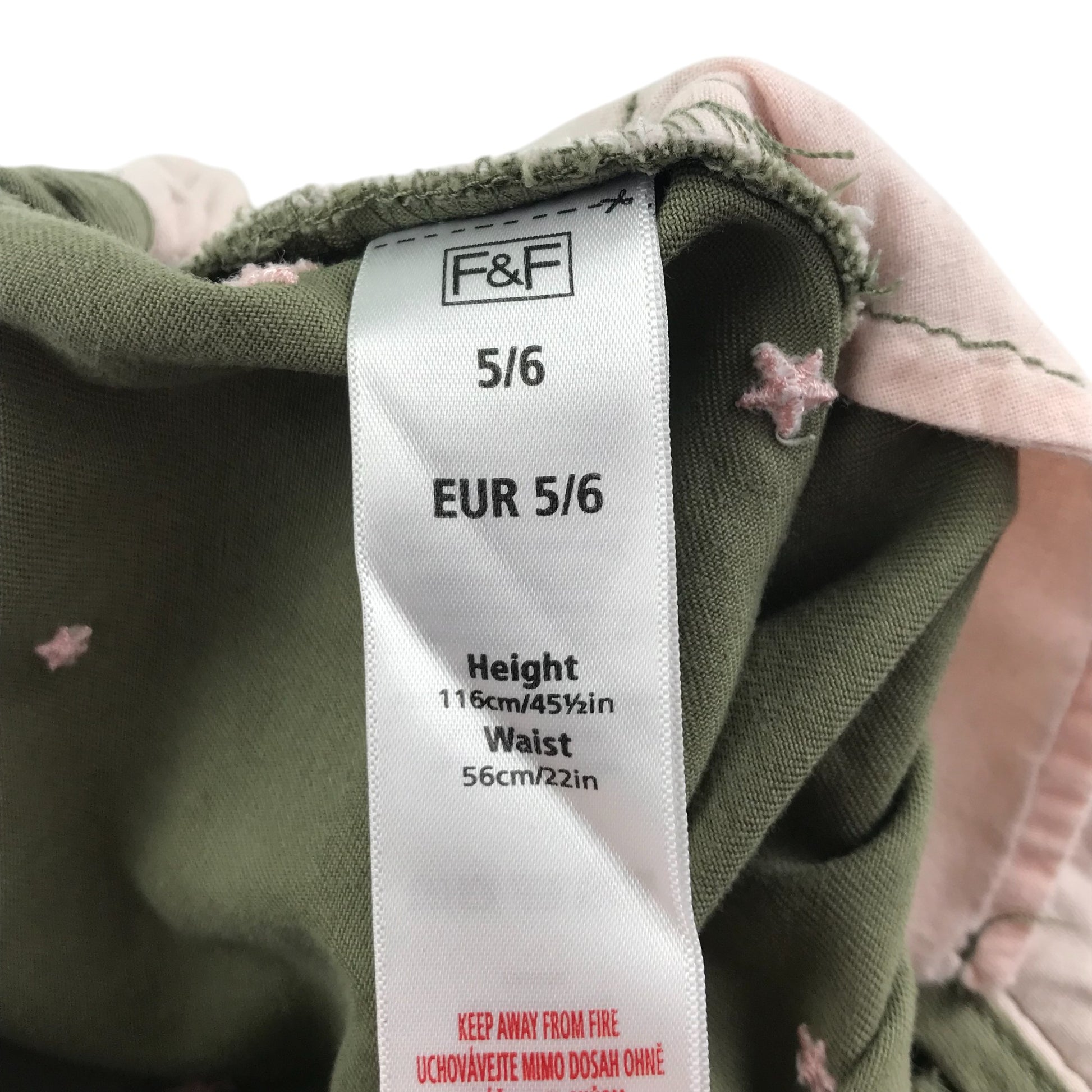 F&F shorts 5-6 years khaki green star embroidery cotton
