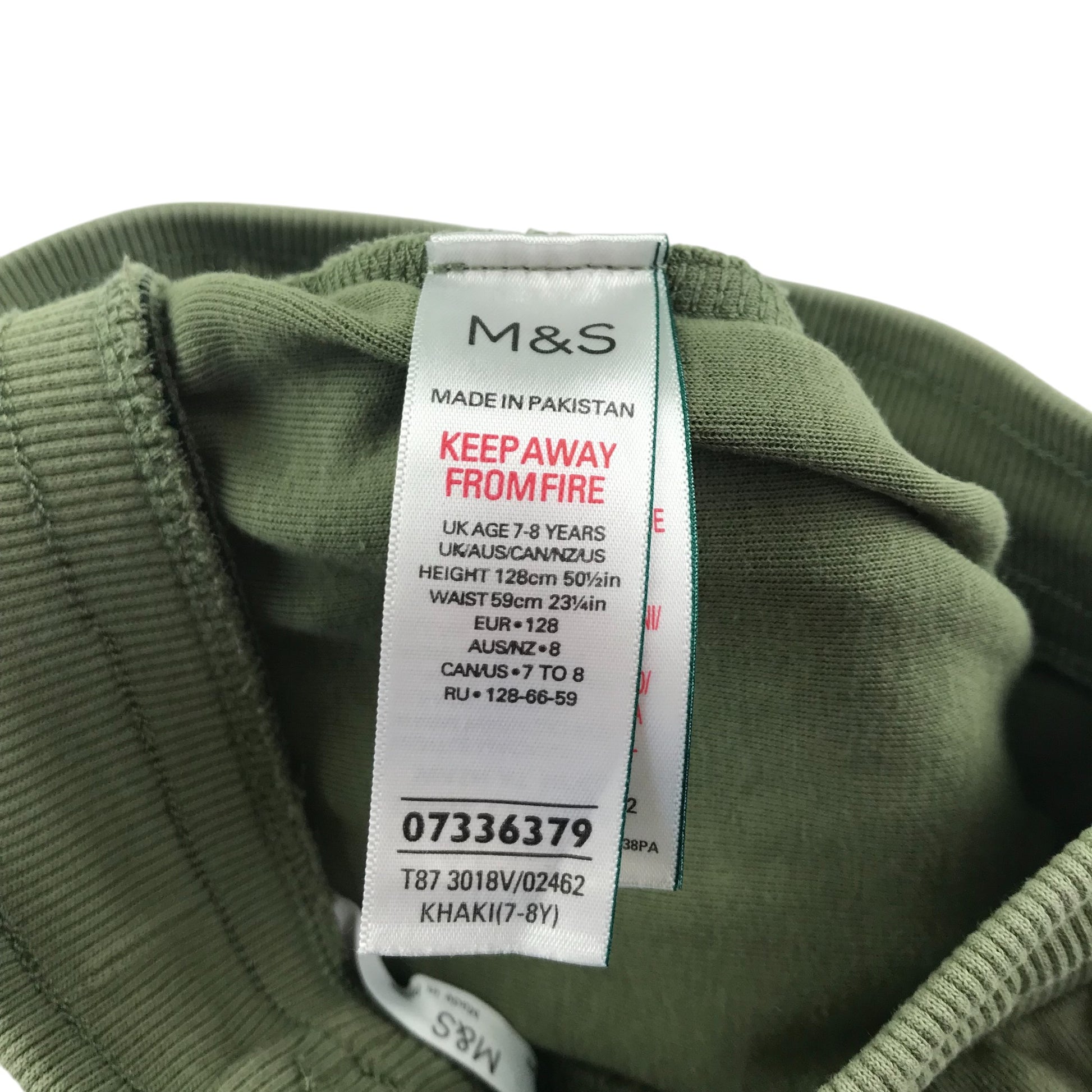 Preloved second hand M&S shorts 7-8 years khaki with black strip both sides jersey material