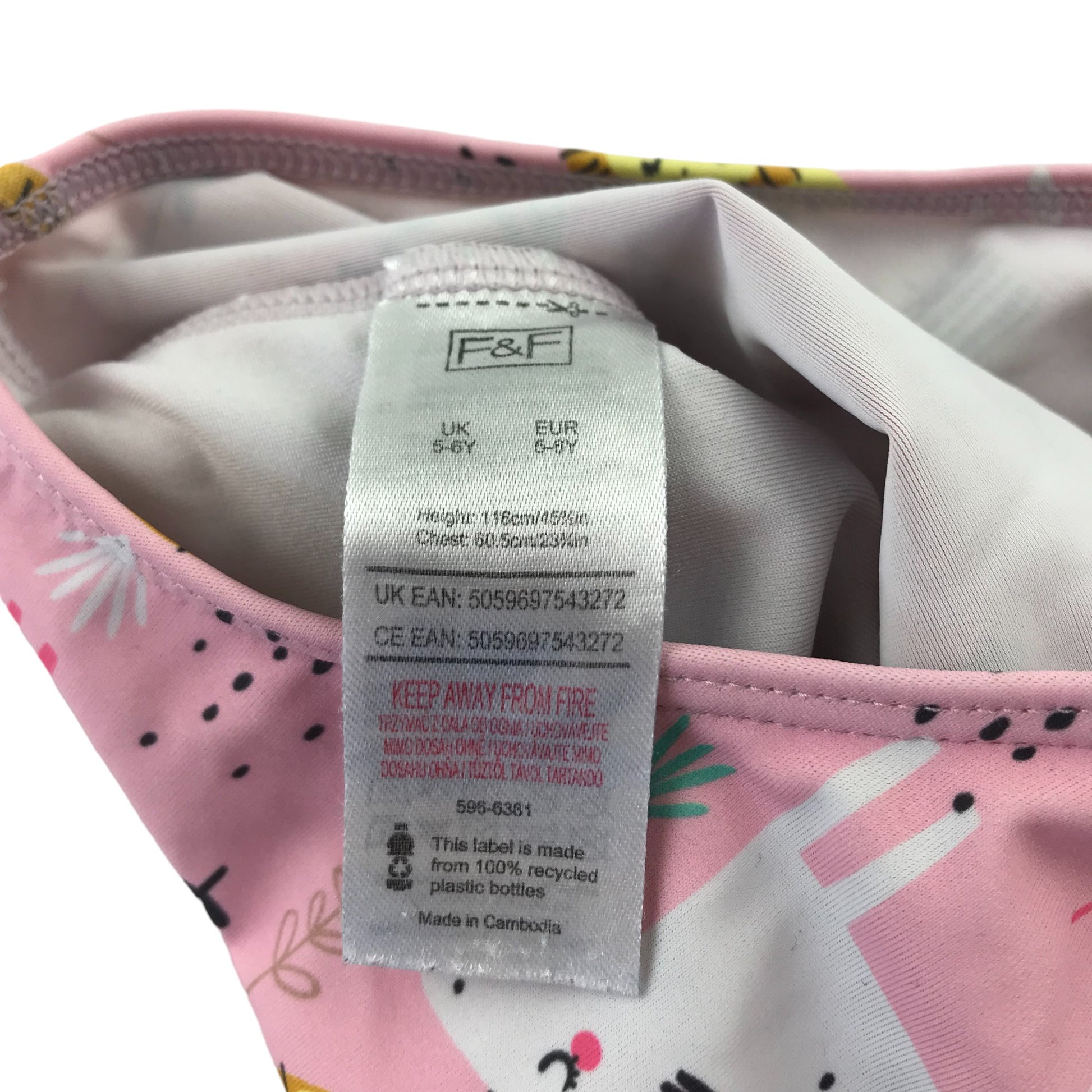 preloved second hand F&F swimsuit 5-6 years pink animals print pattern one piece cossie