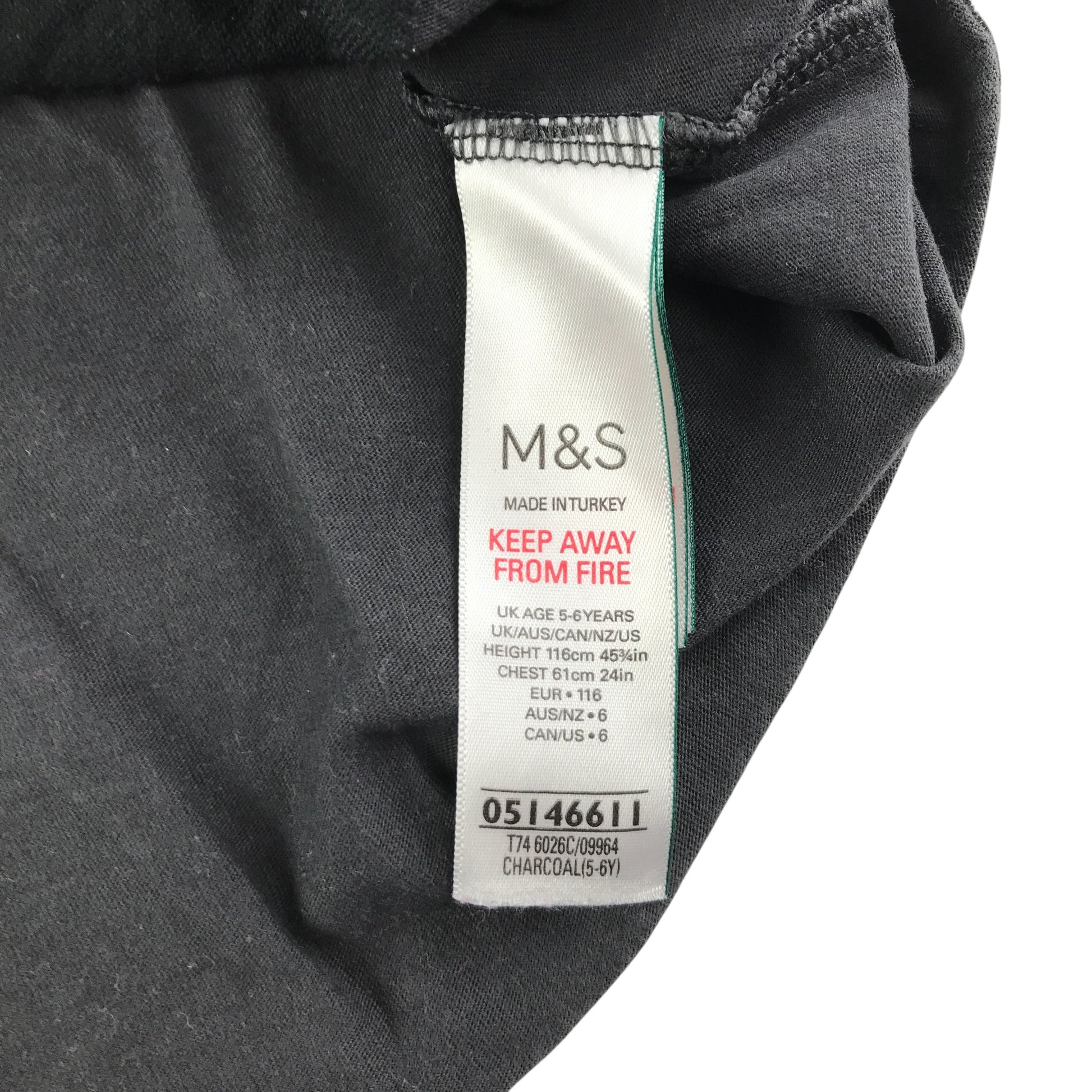 M&S T-Shirt 5-6 Years Grey Charcoal Sequin Text Design