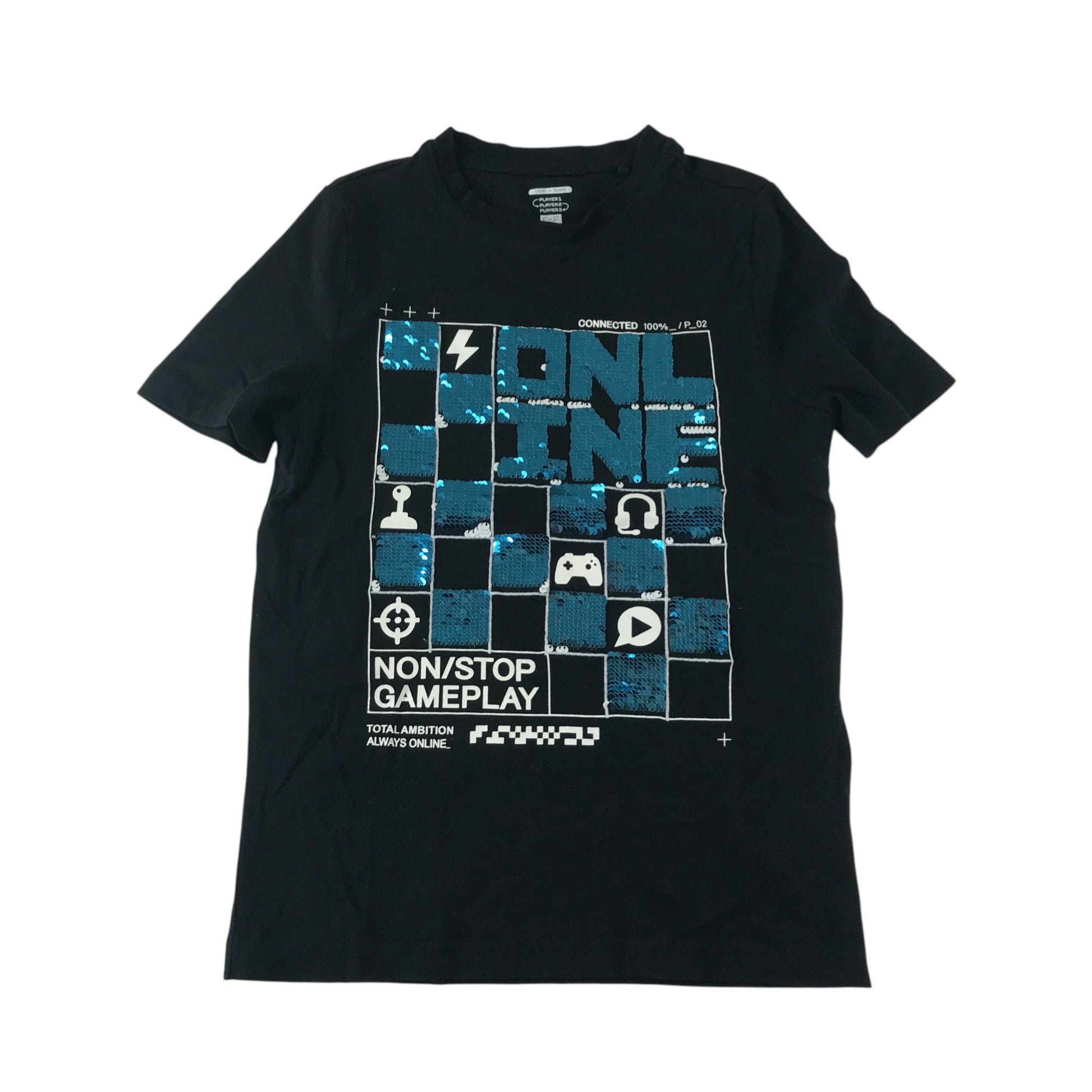F&F T-Shirt 7-8 years black short sleeve with gamer flip sequin cotton