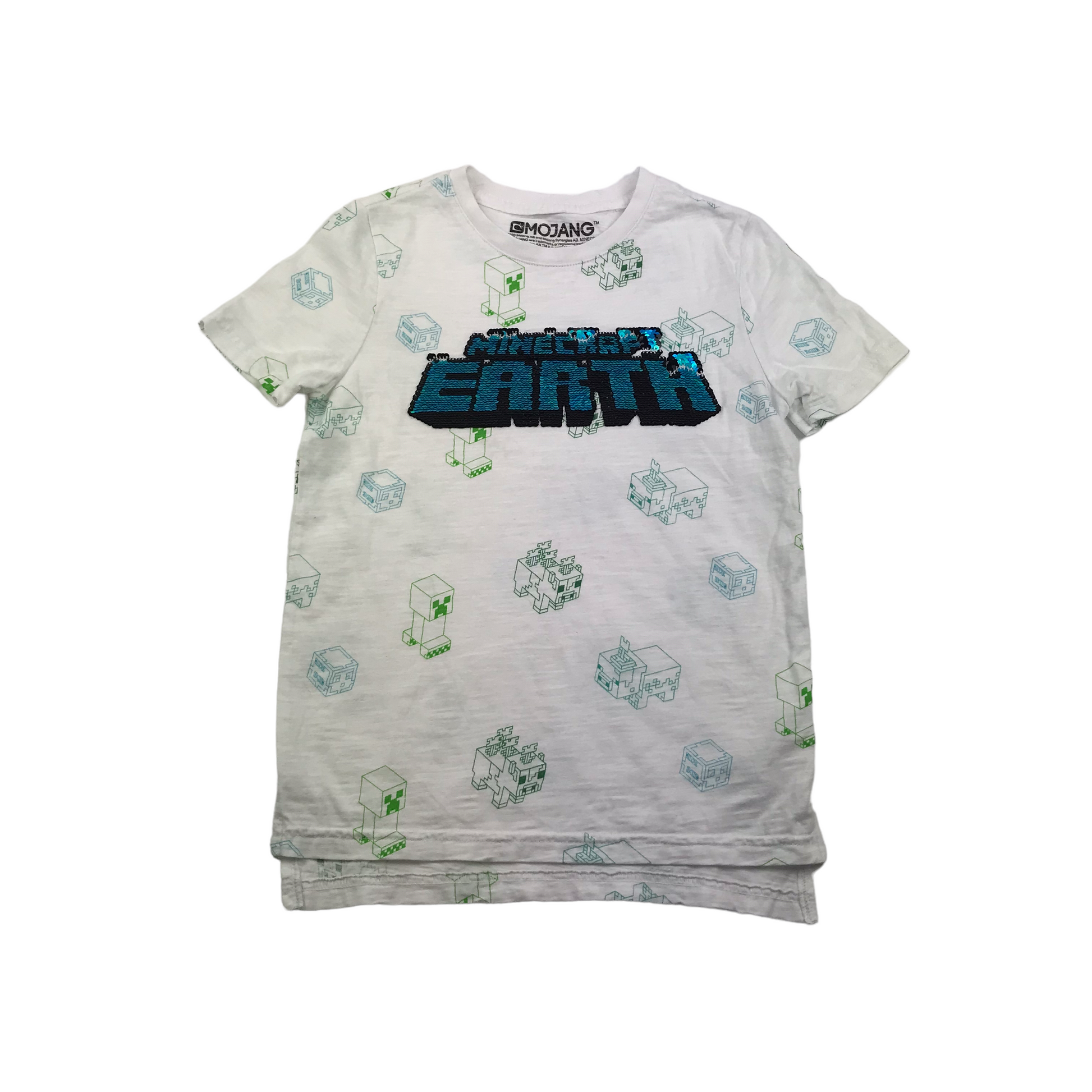 Preloved second hand F&F White Sequin Minecraft T-shirt Age 5