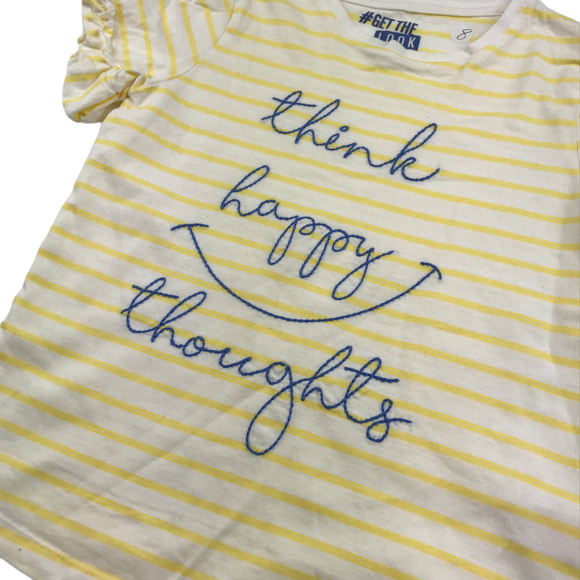 Preloved second hand F&F White Yellow Stripes T-shirt Age 8