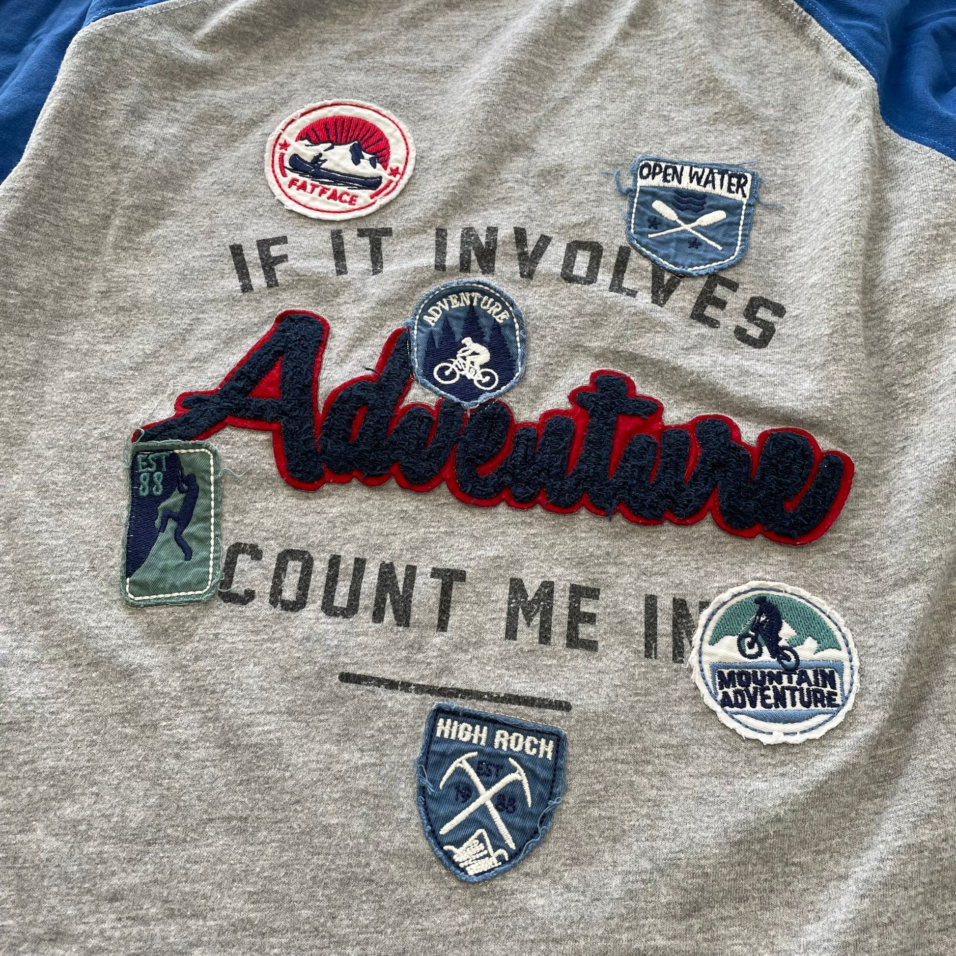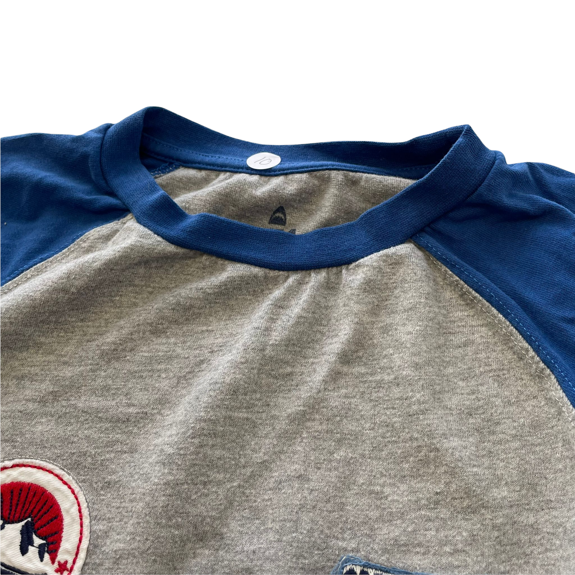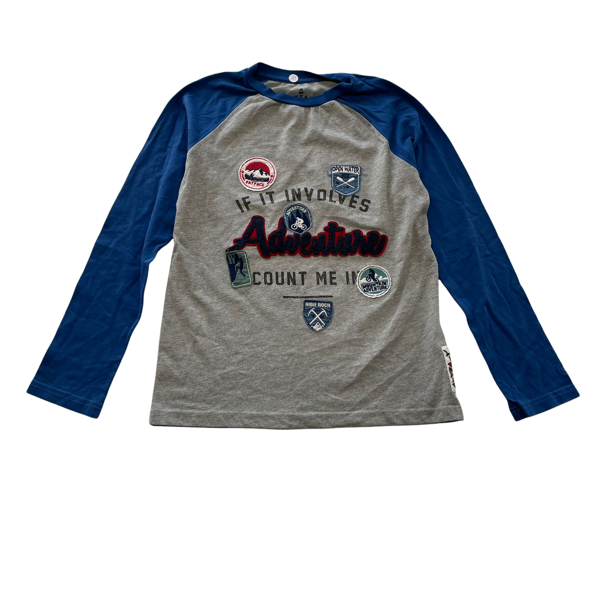 Preloved second hand Fatface Grey and Blue Patch Print T-Shirt Age 10