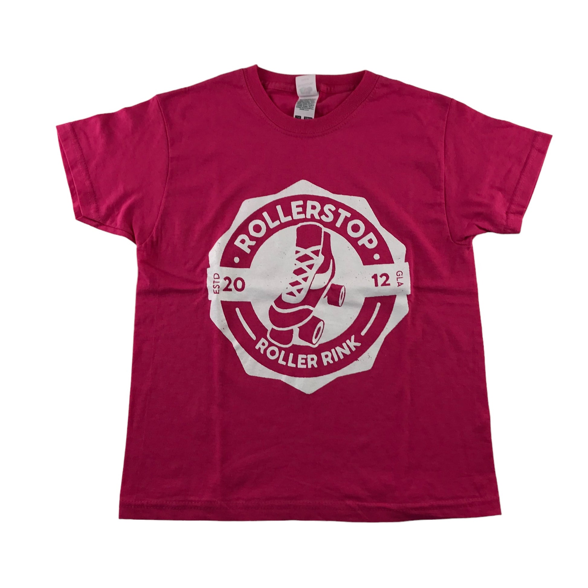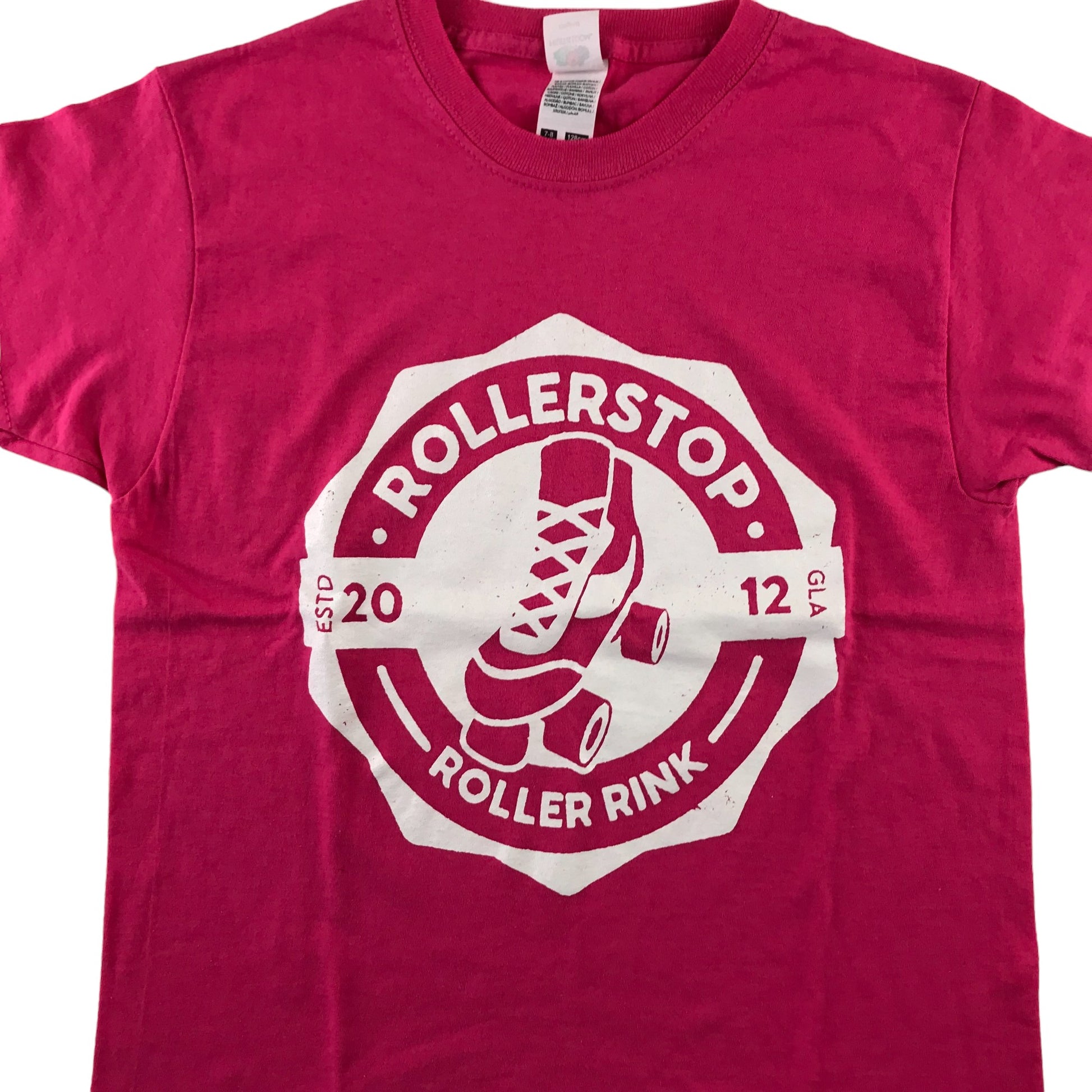 Fruit of The Loom t-shirt 7-8 years fuchsia pink roller skates short sleeve cotton