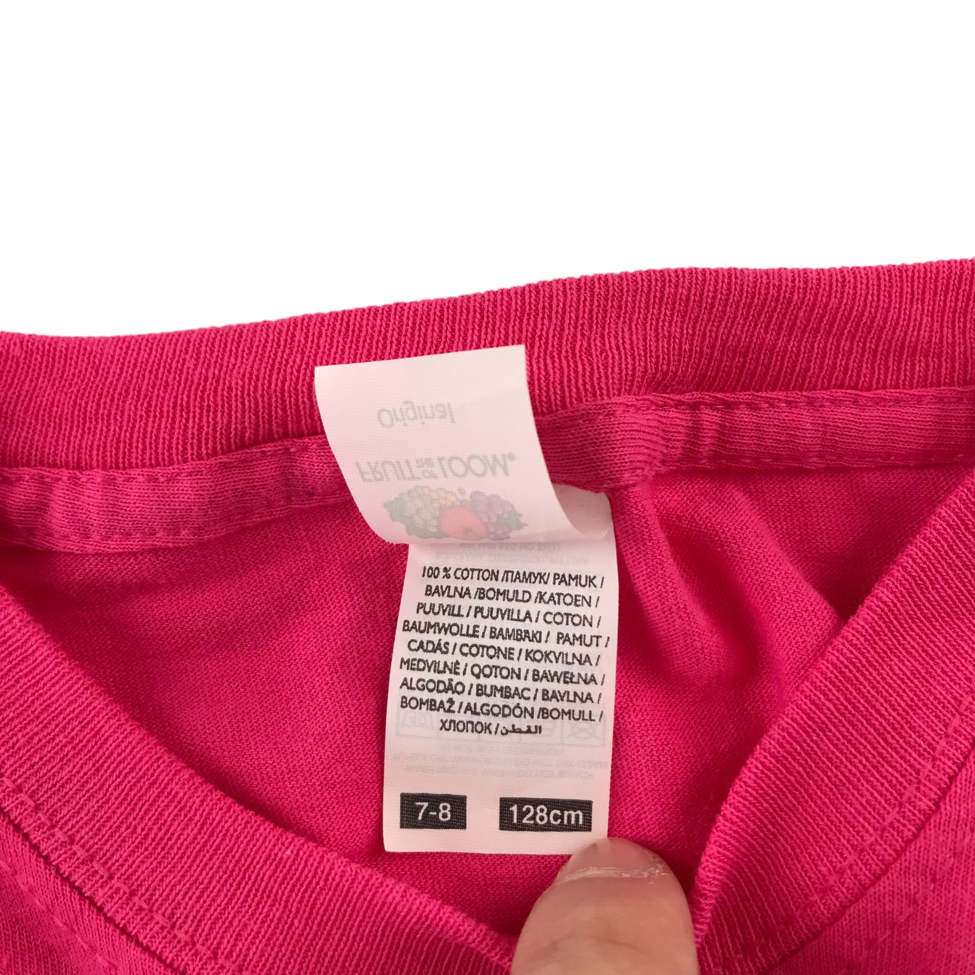 Preloved second hand Fruit of The Loom t-shirt 7-8 years fuchsia pink roller skates short sleeve cotton
