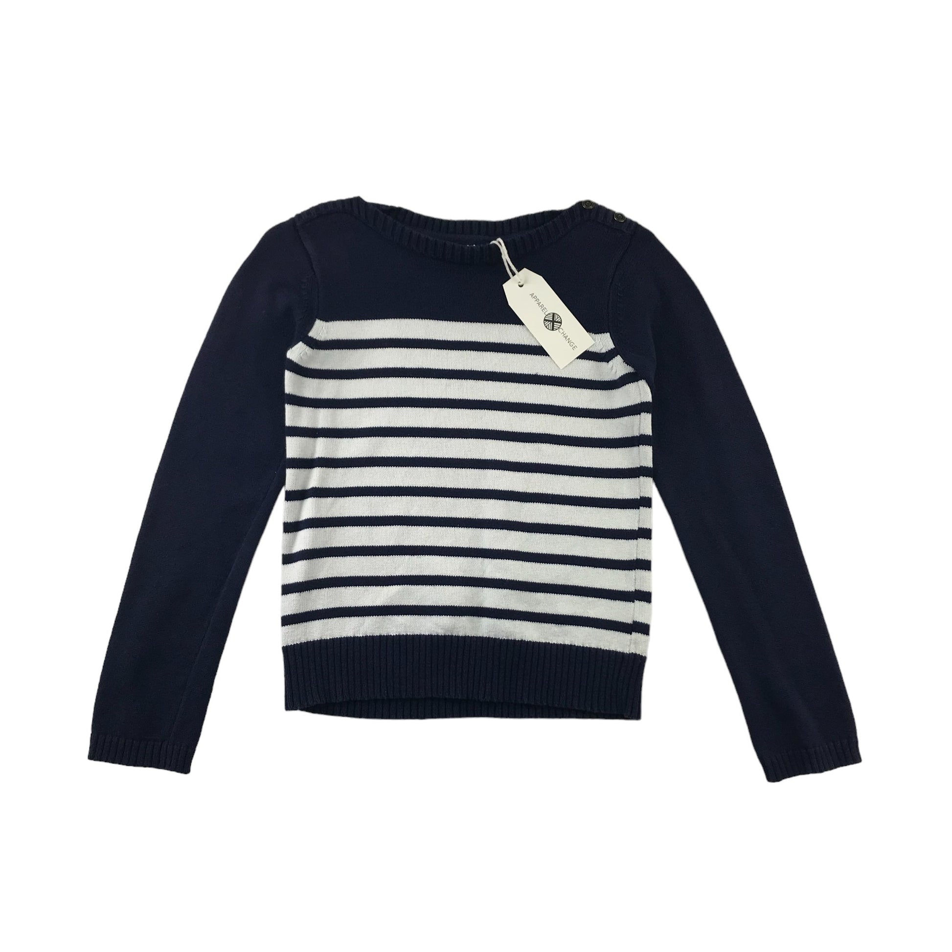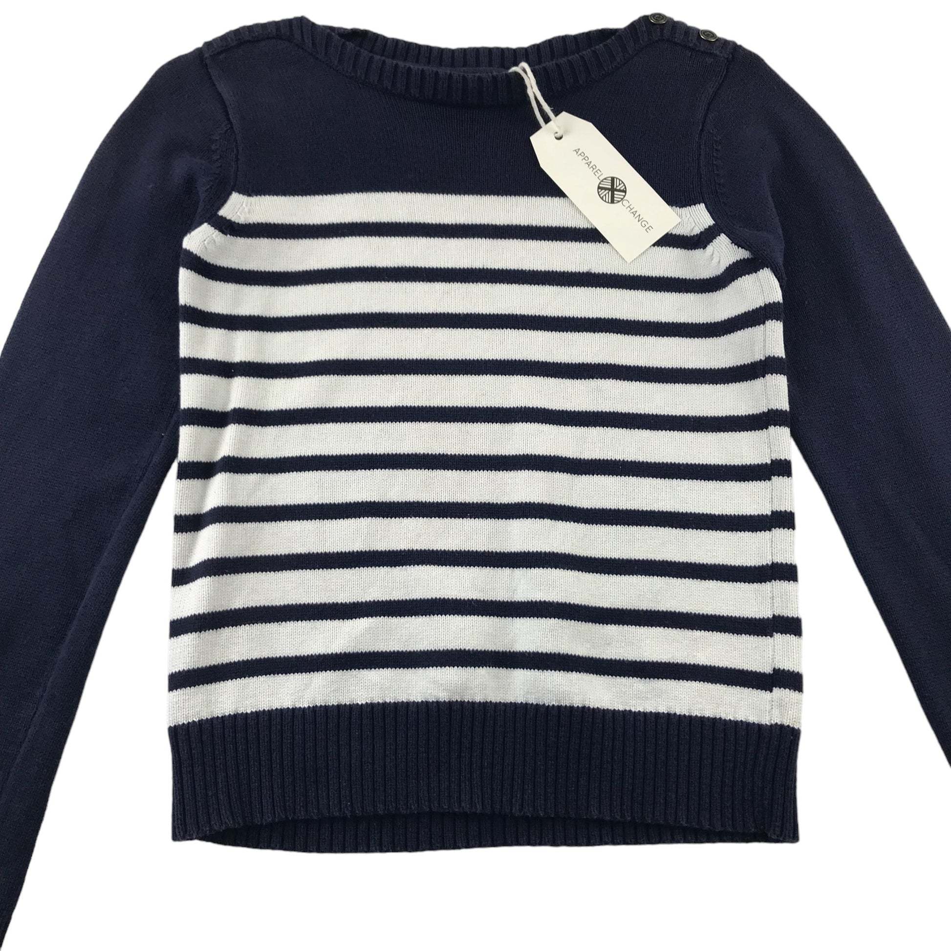 GAP Jumper Age 11-12 Navy Blue White Stripy Knit Cotton