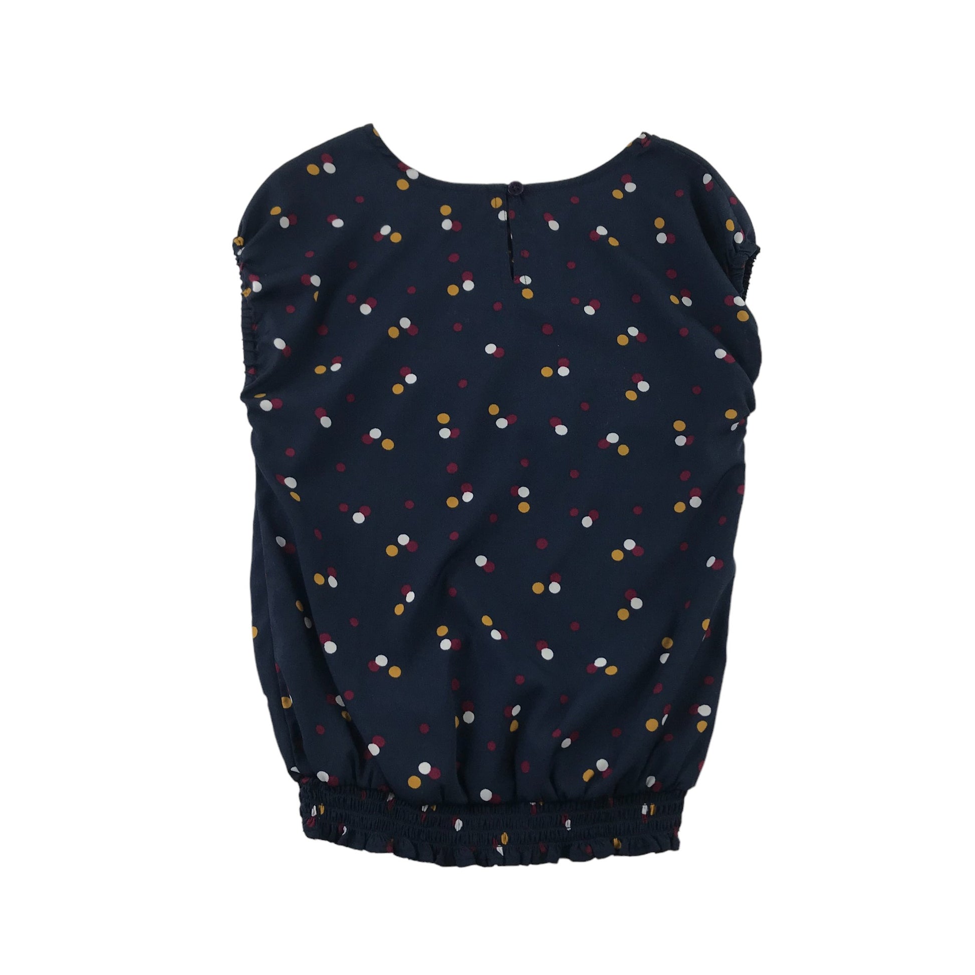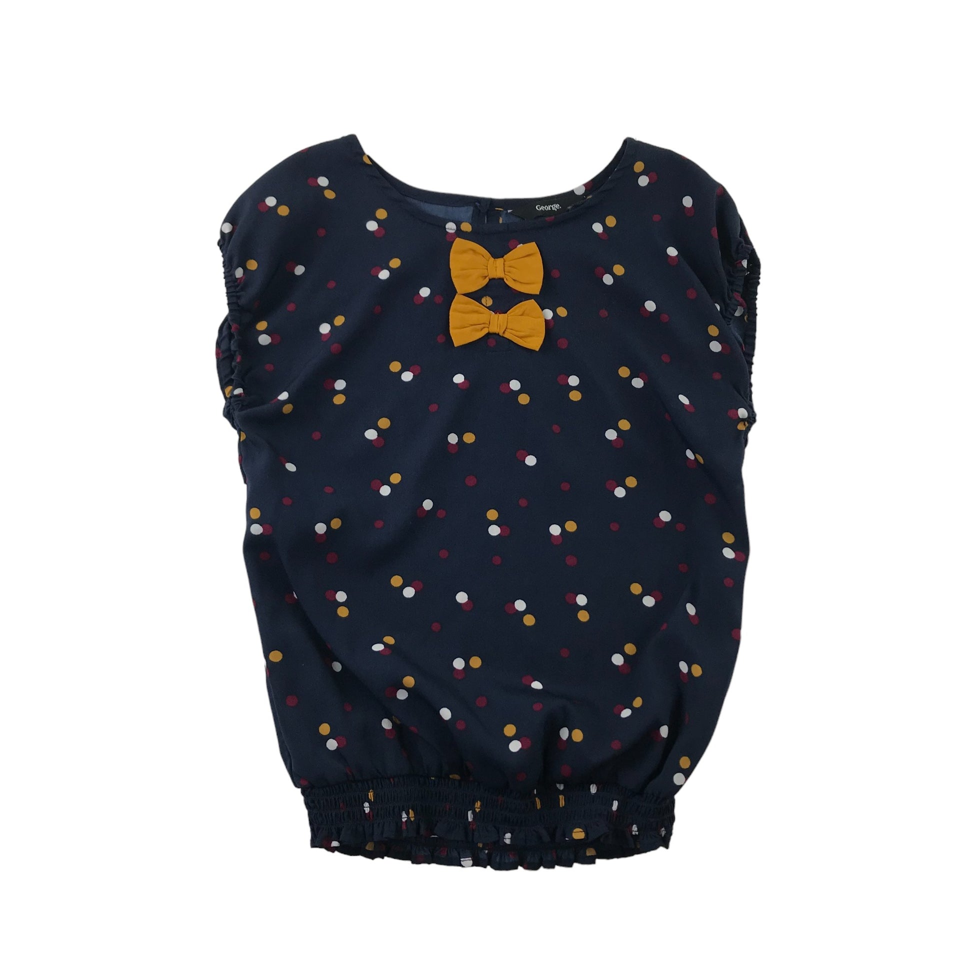 Preloved second-hand George Blouse Age 8 Navy Blue Multicoloured Polka Dot Bow Tie Detail Shirred Hem