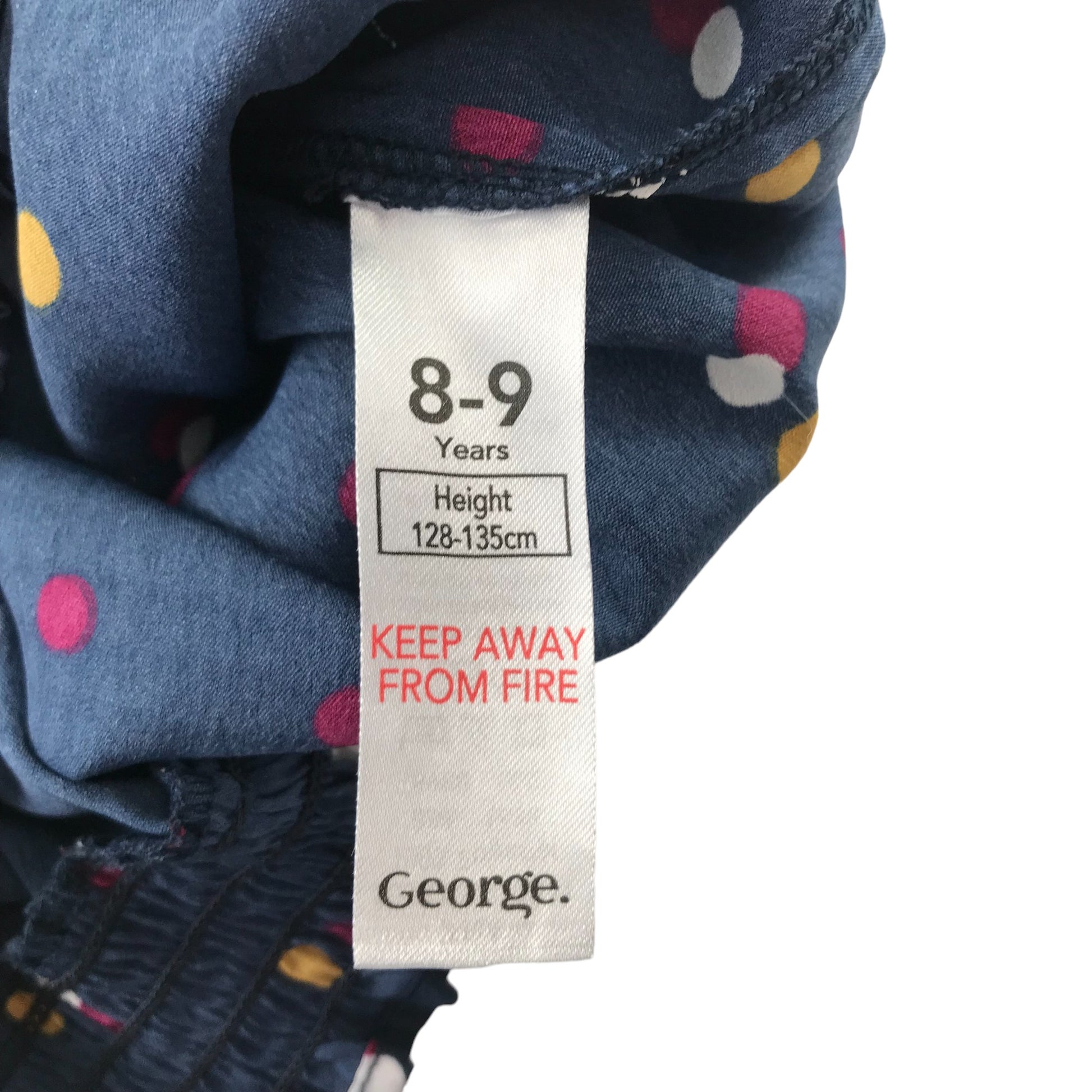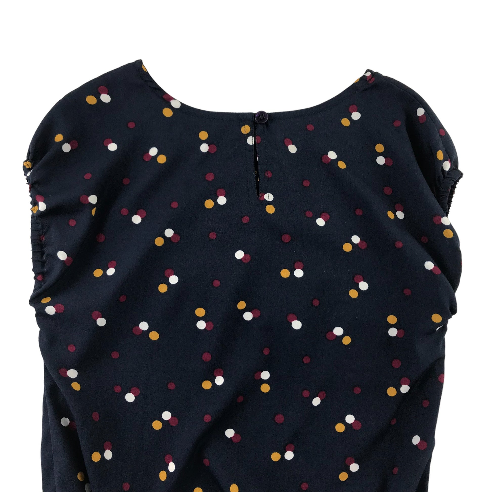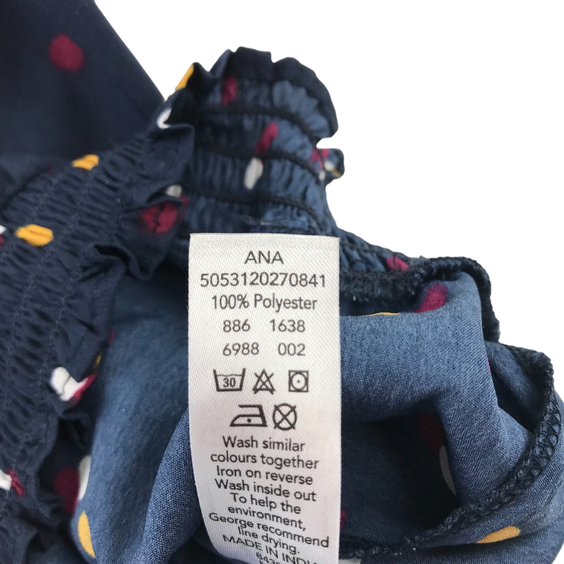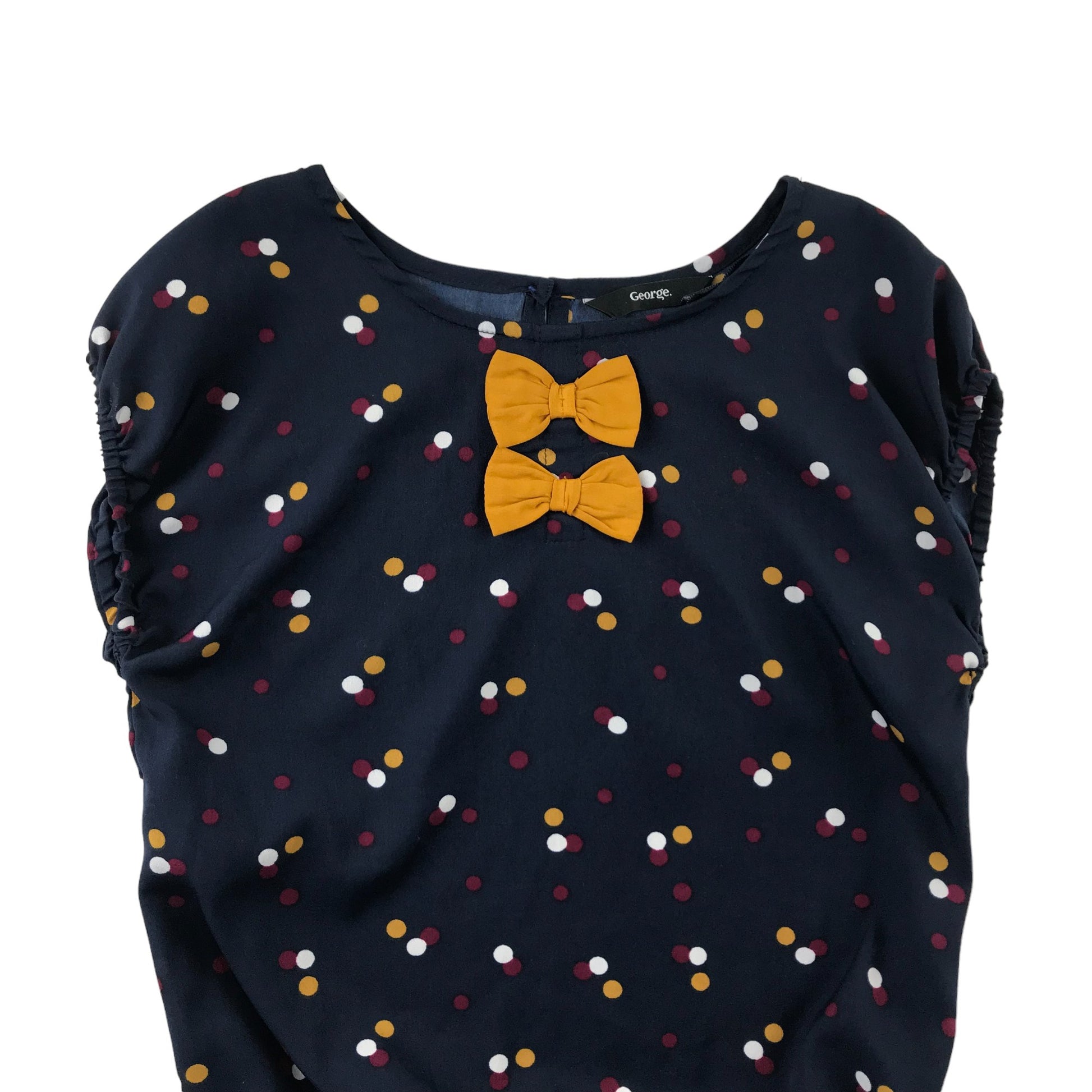 George Blouse Age 8 Navy Blue Multicoloured Polka Dot Bow Tie Detail Shirred Hem