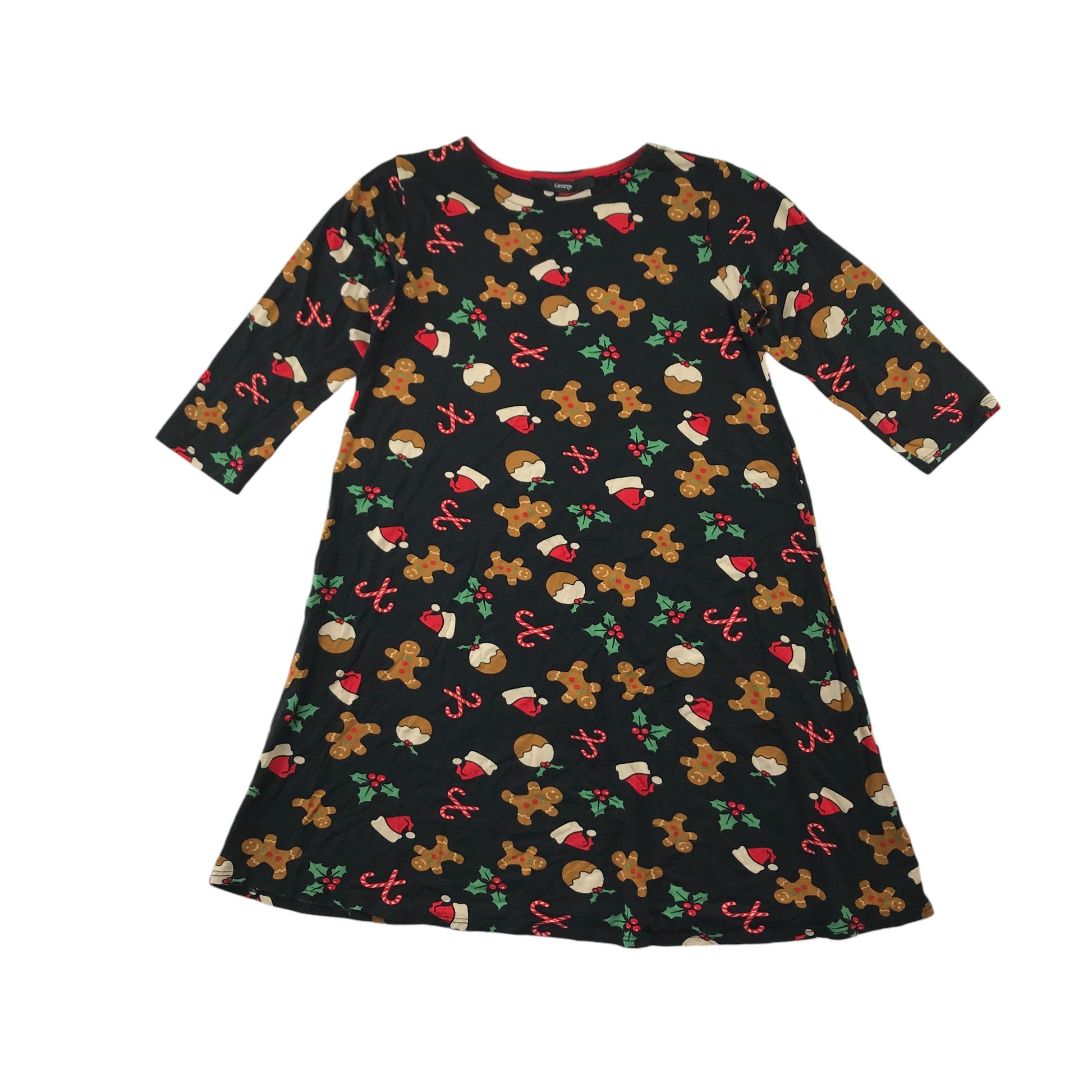 Preloved second hand George festive dress 9-10 years black long sleeve A-line stretchy gingerbread print pattern