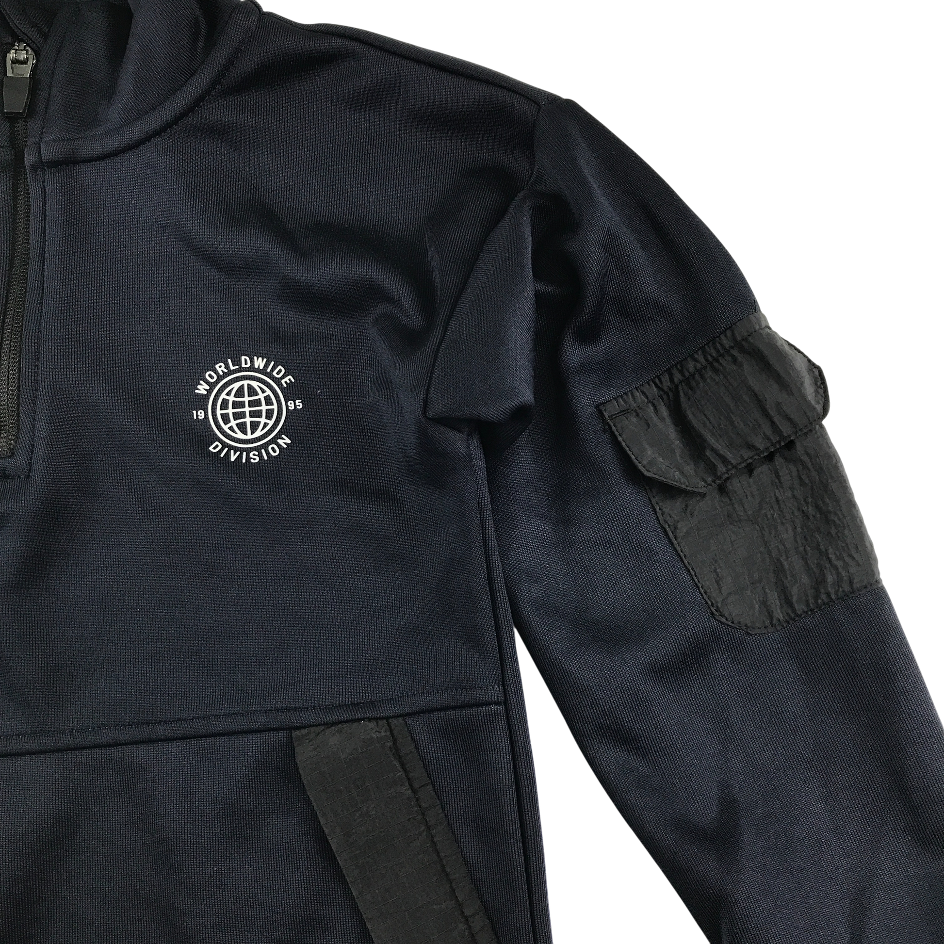 - Clothing features: zip up sports jacket