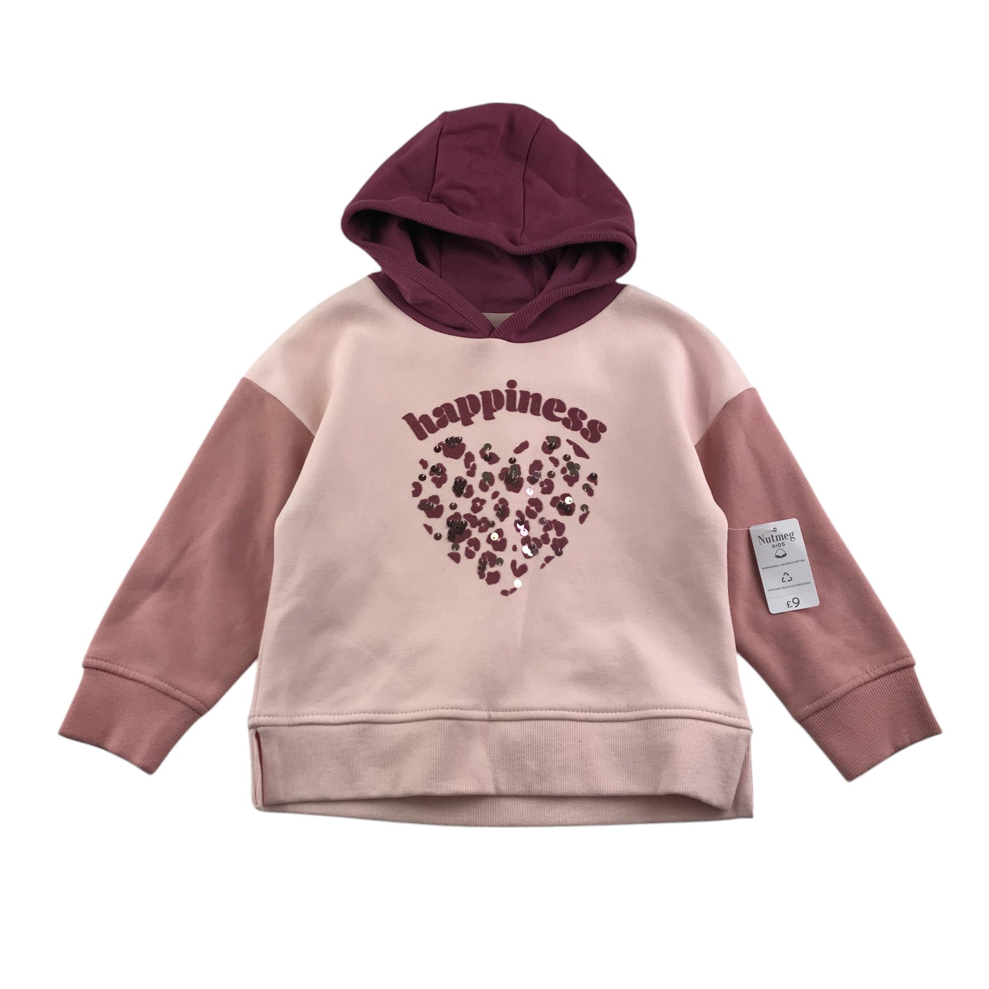 Preloved second hand Nutmeg hoodie 5-6 years pink block colors design with sequin love