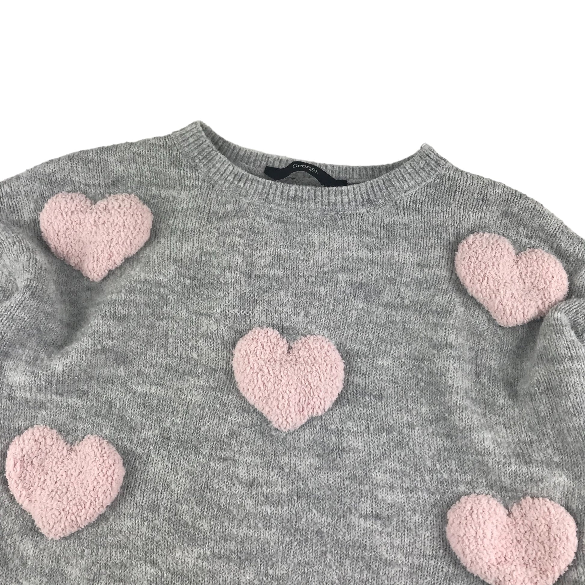 George Jumper Age 9 Grey Light Pink Love Hearts