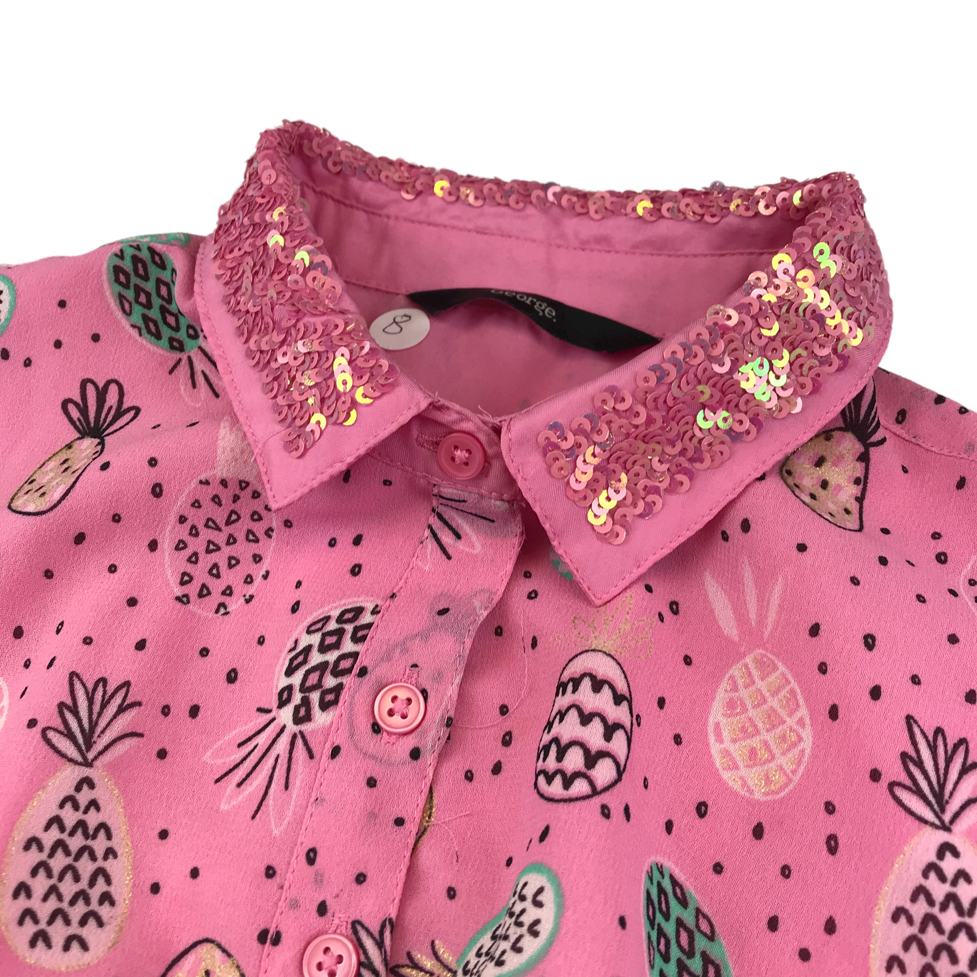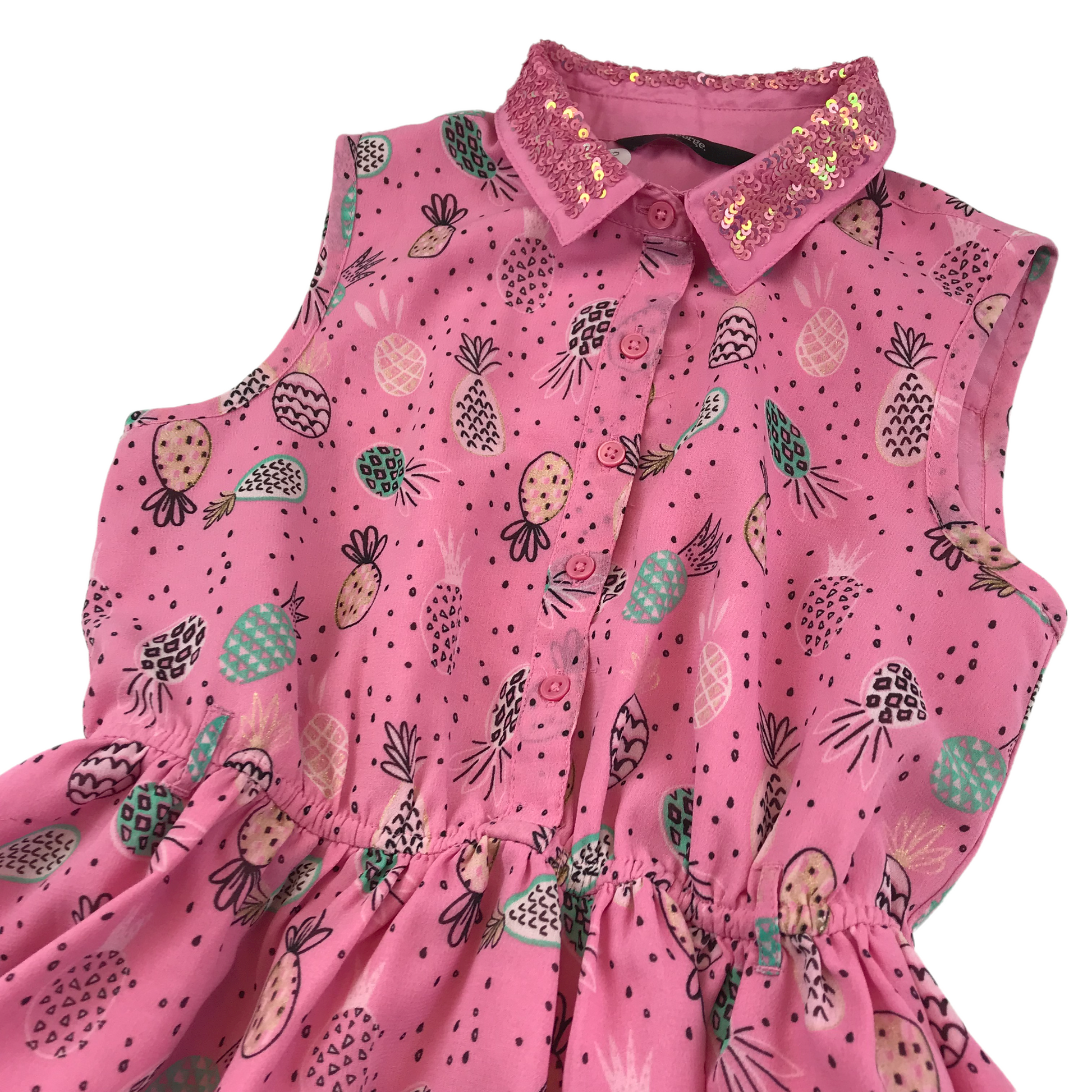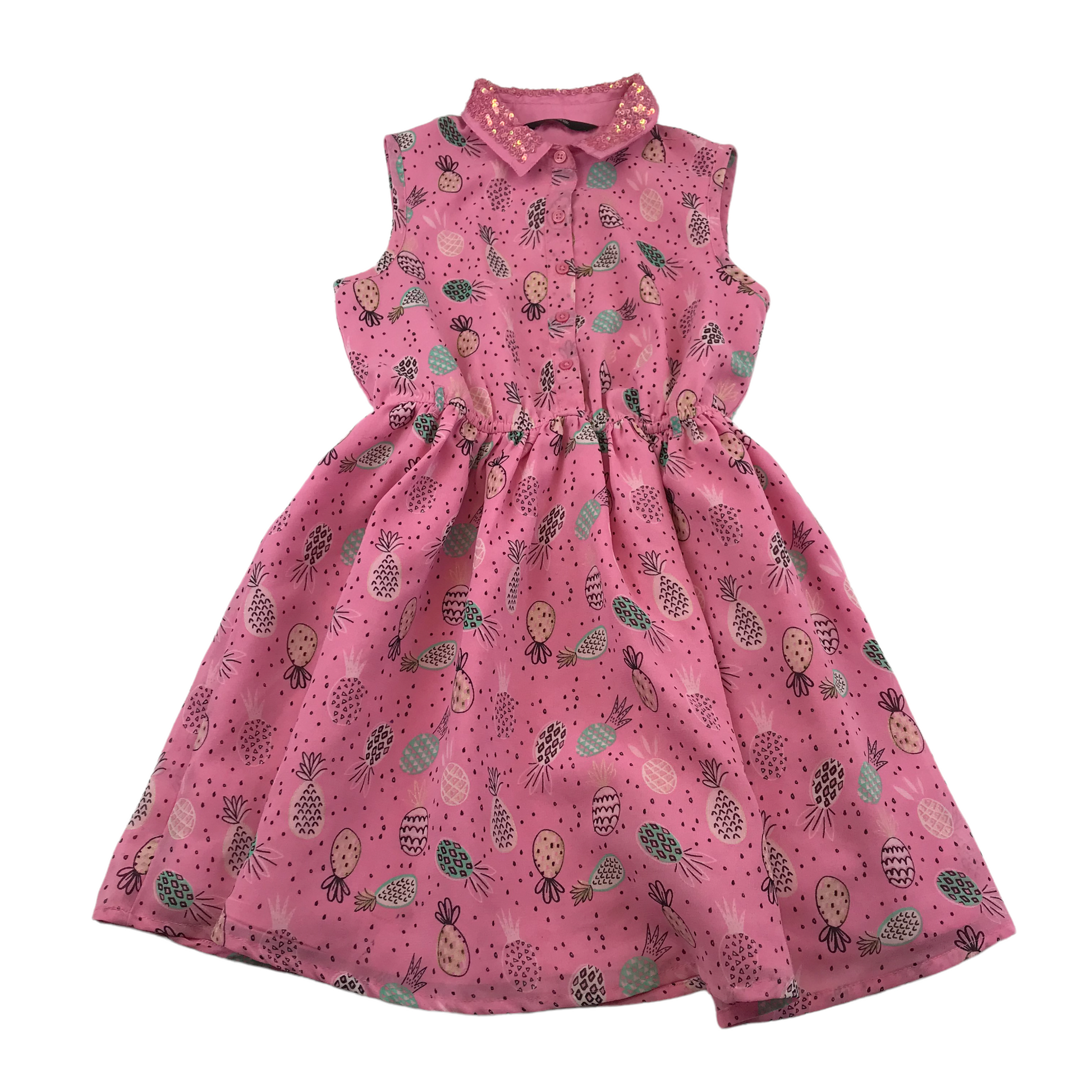 Preloved second hand George Pink Pineapple Sequin Collar Dress Age 8