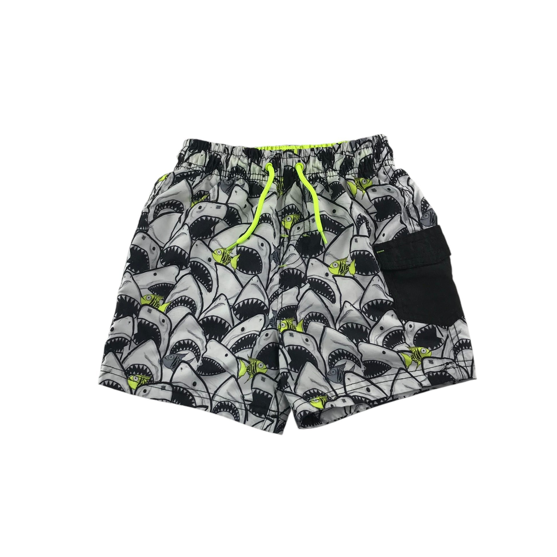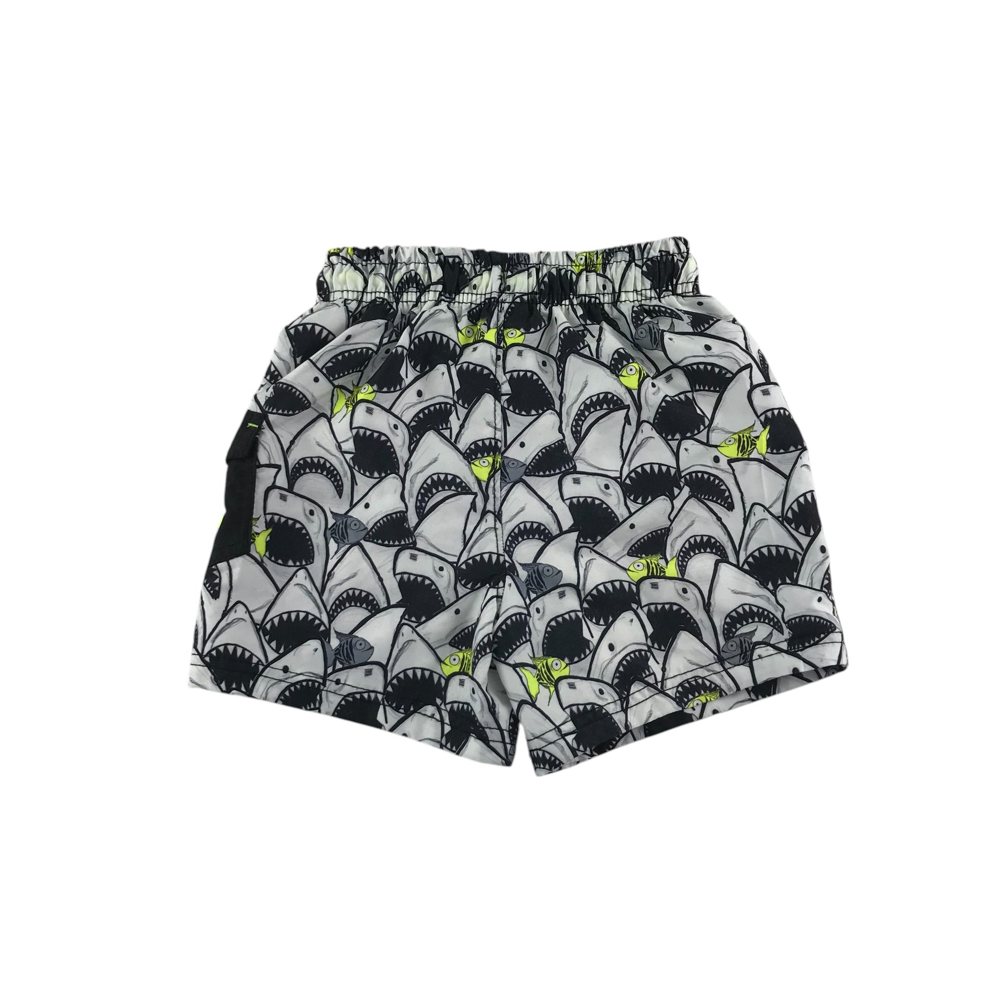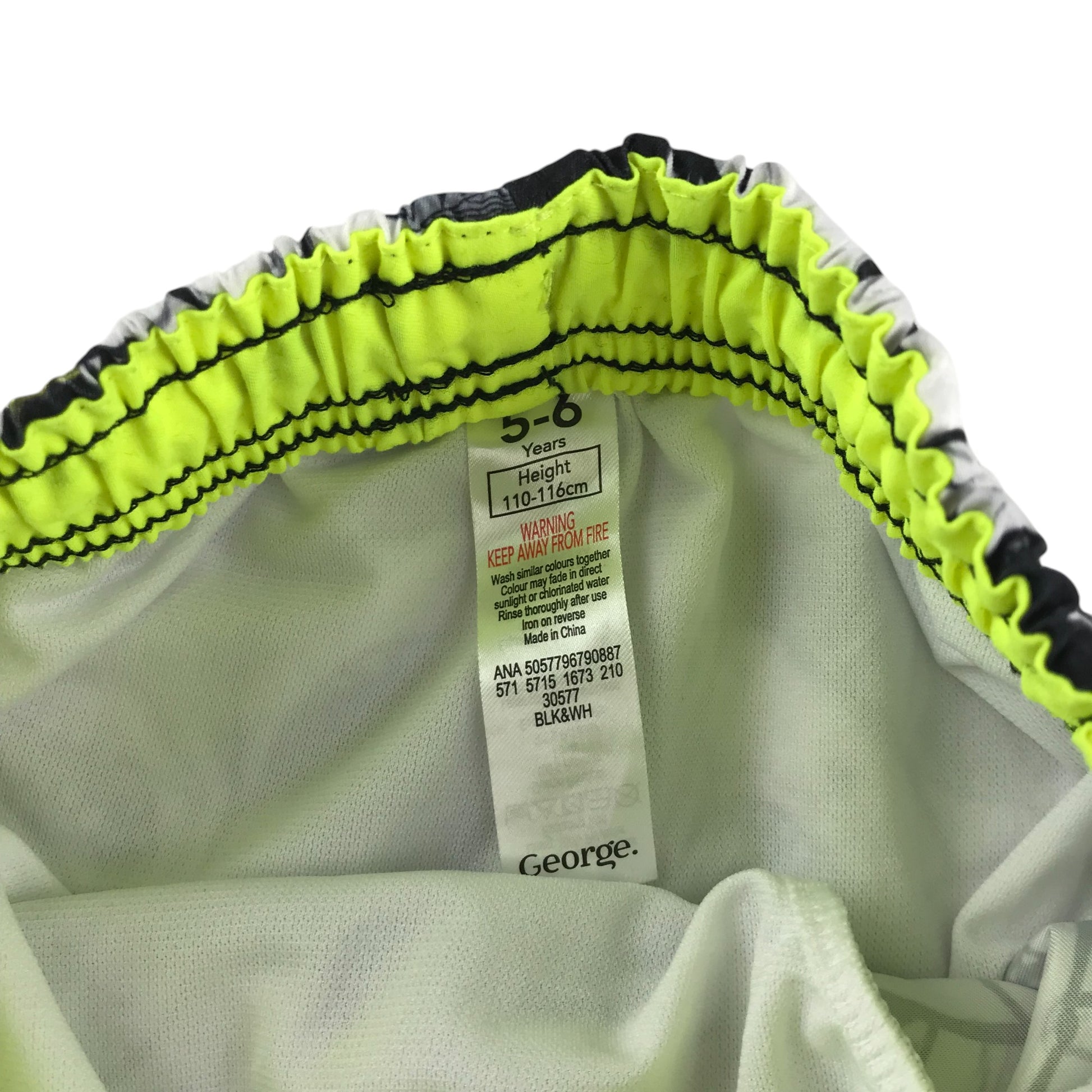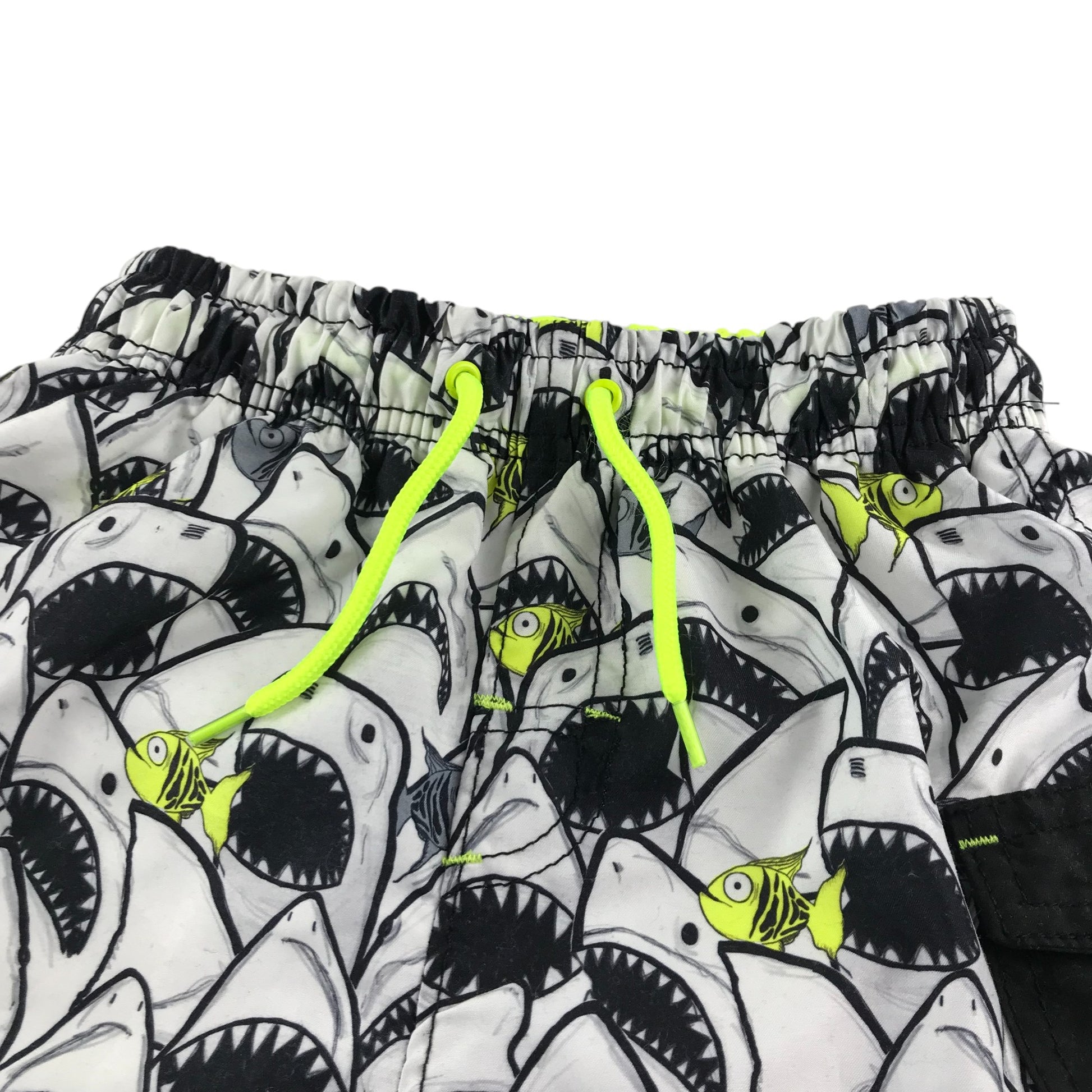 Preloved second hand George swim trunks 5-6 years black and white sharks print