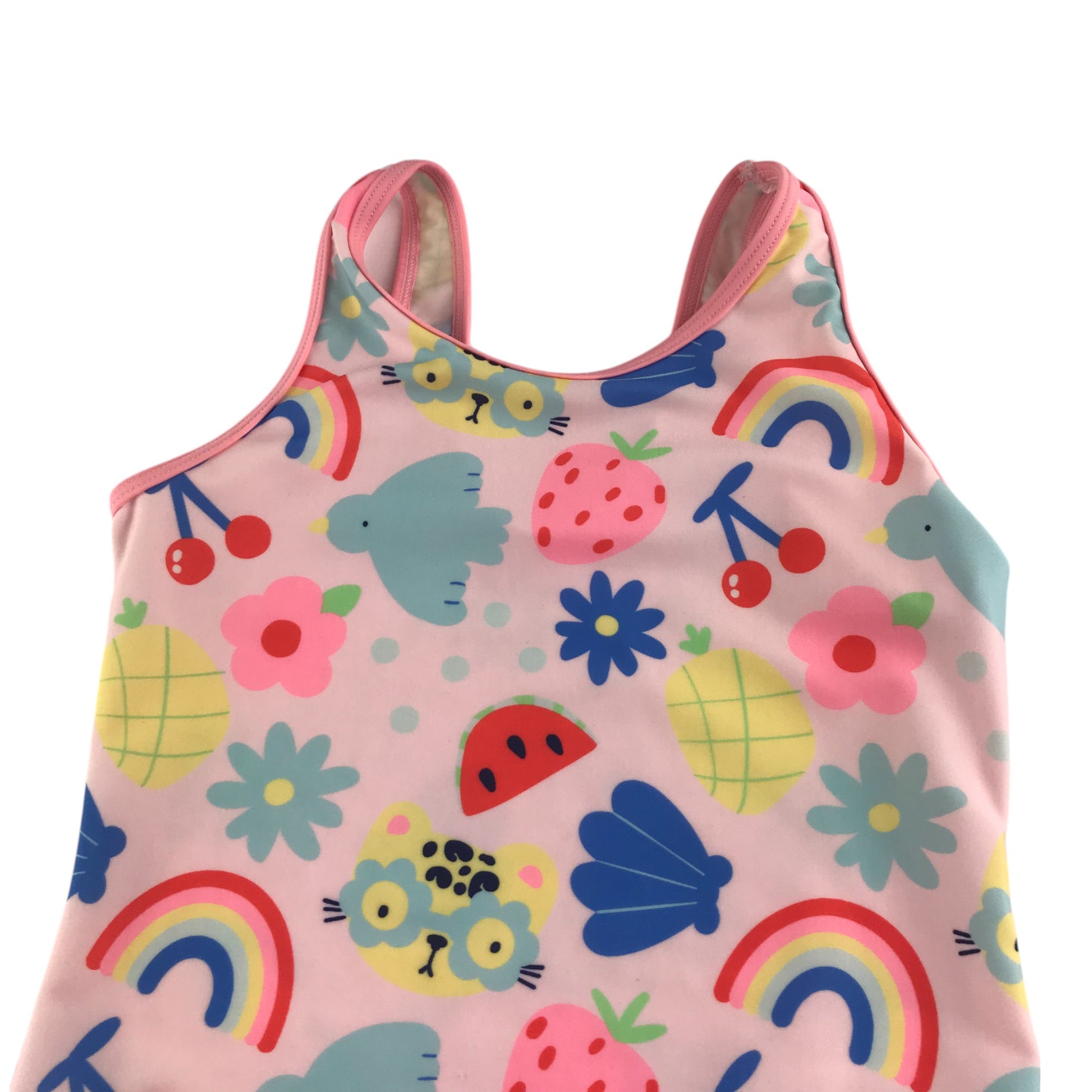 Preloved second hand George swimsuit 5-6 years pink multiprint one piece cossie