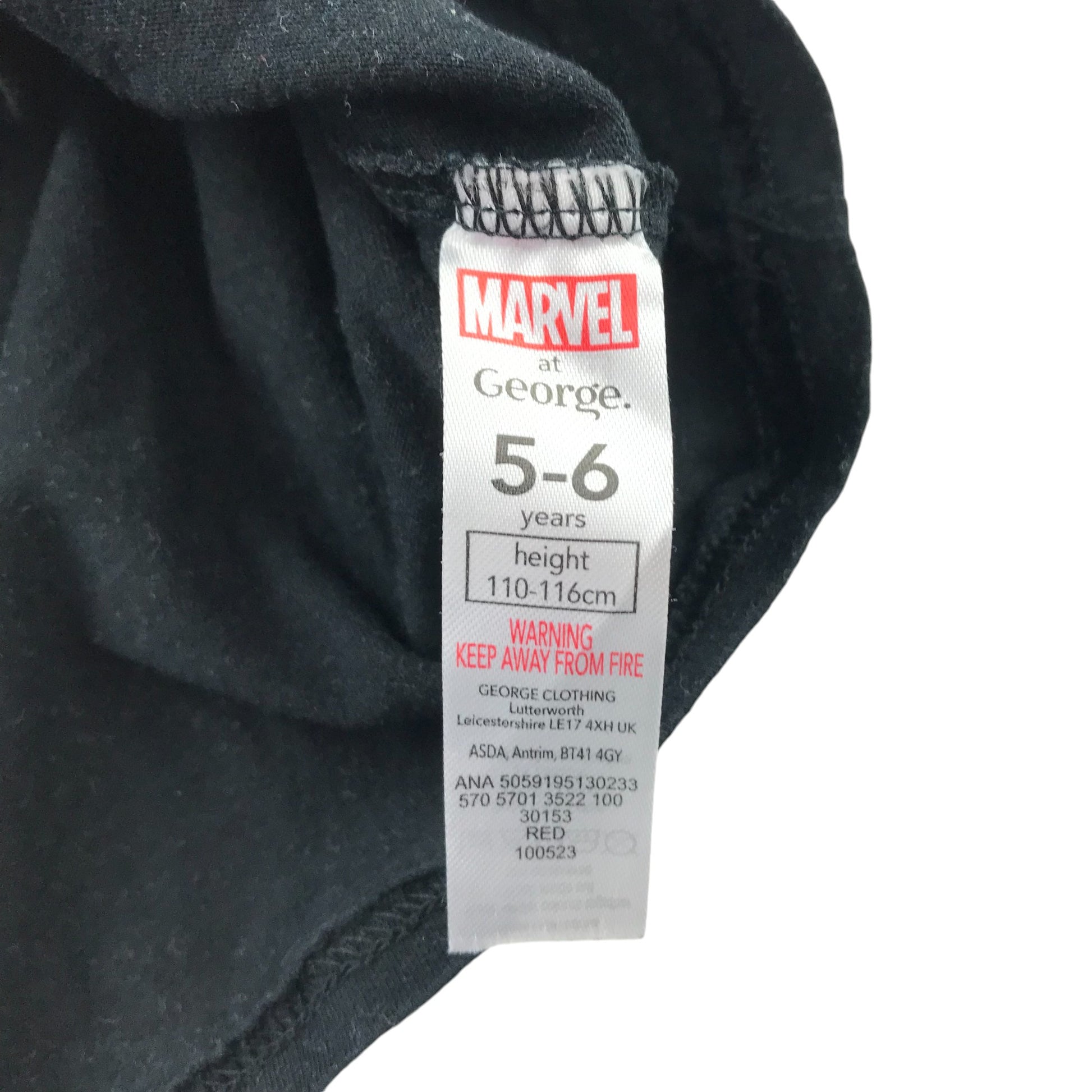 Preloved second hand George Festive T-Shirt 5-6 Years Black Ginger Bread Marvel Avengers