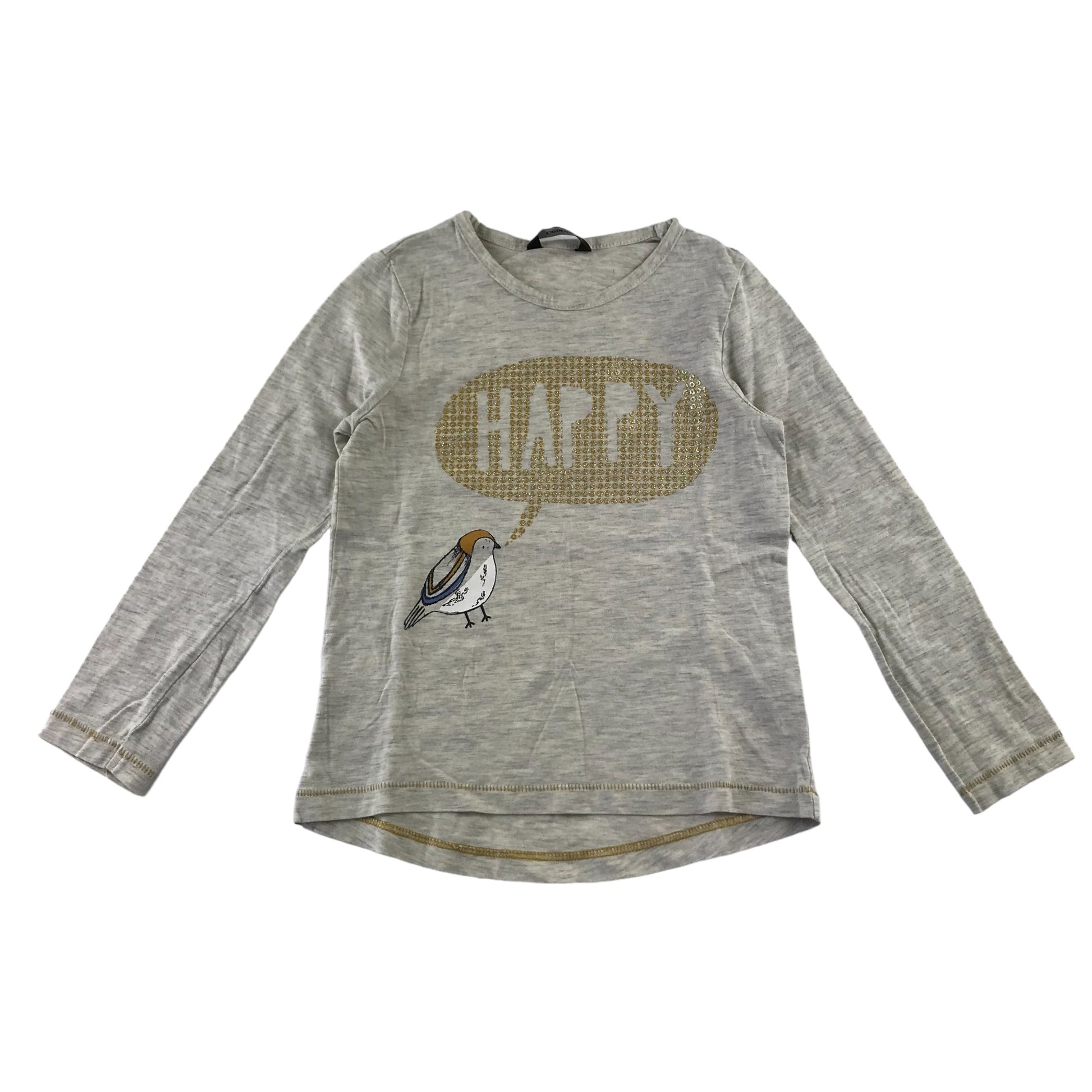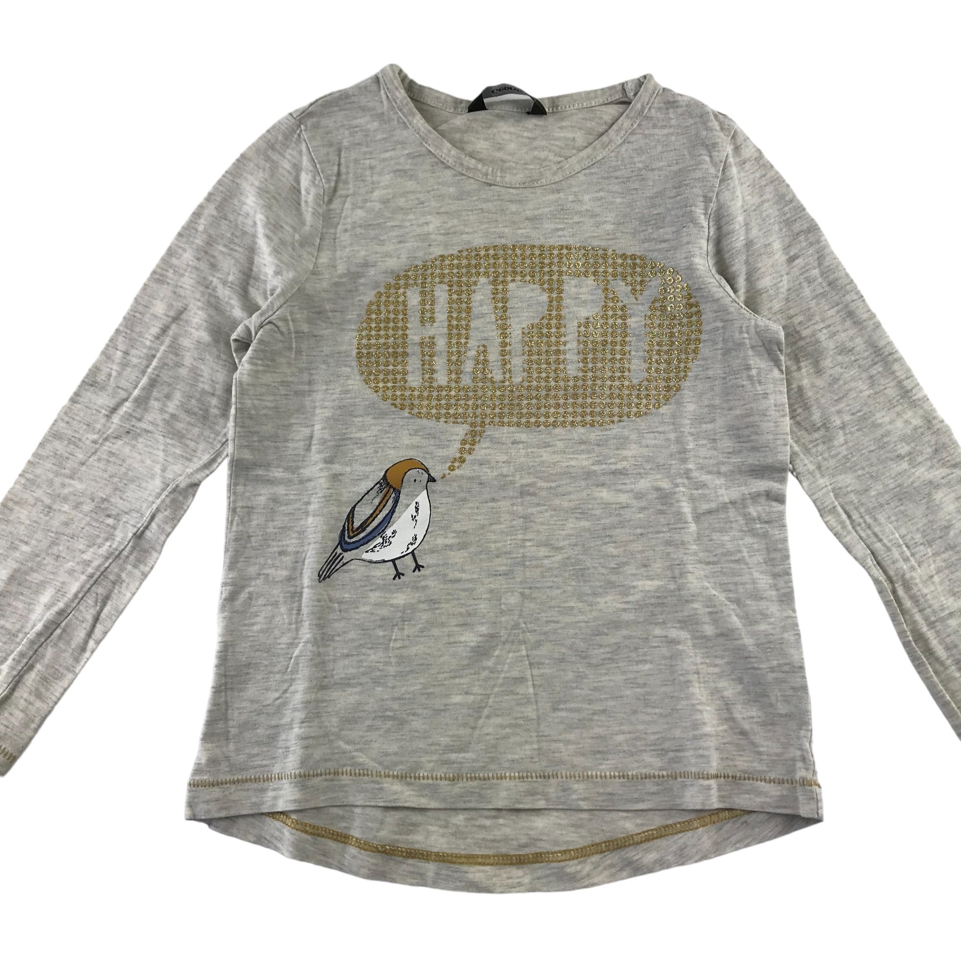 Preloved second hand George t-shirt 6-7 years light grey sequin happy print long sleeve