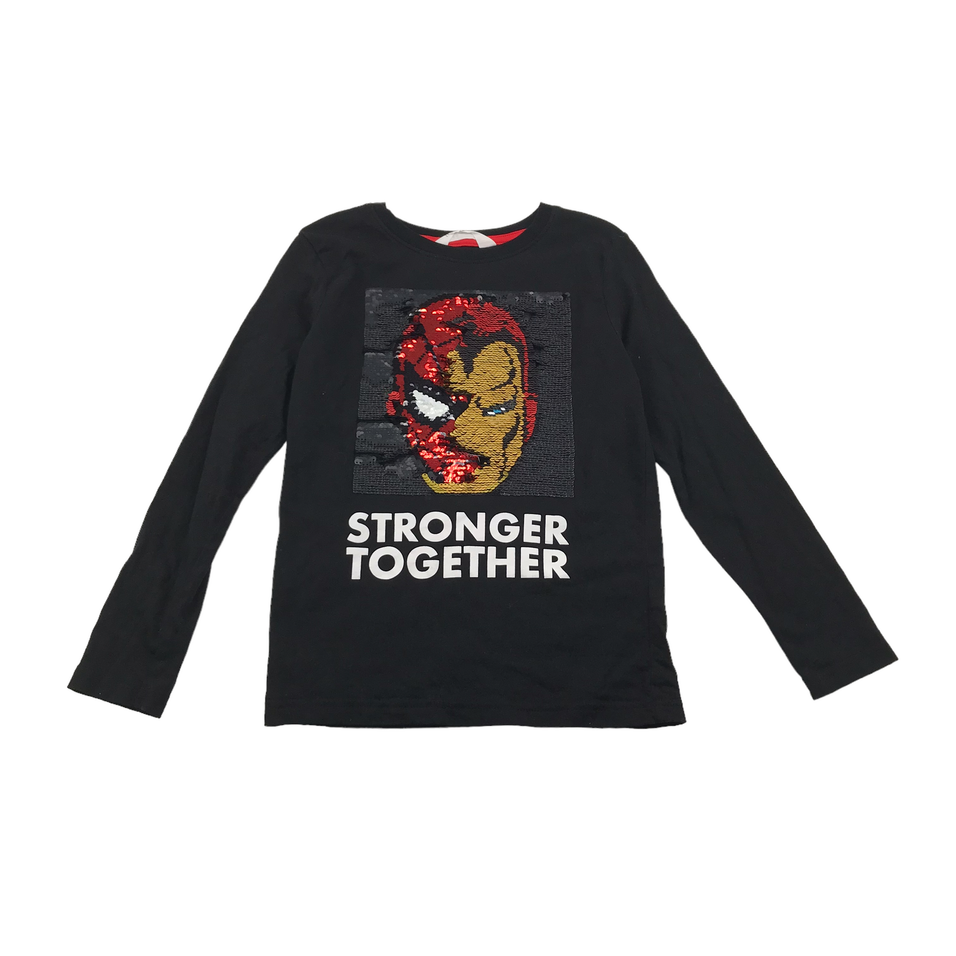 Preloved second hand H&M Black Flip Sequin Spiderman and Ironman T-shirt Age 7