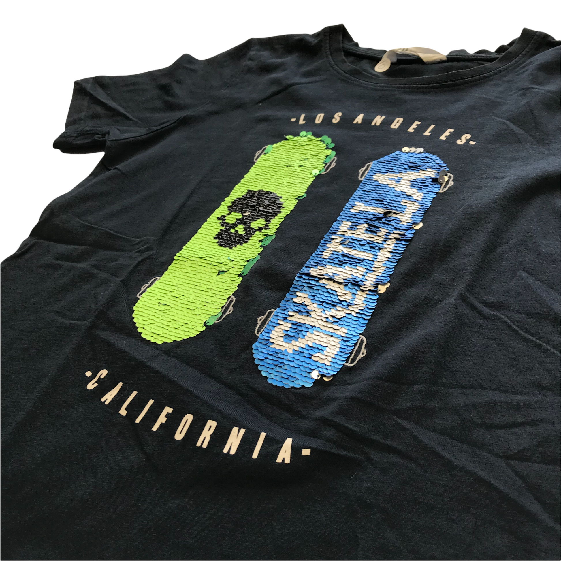 H&M Navy Flip Sequin Skater T-shirt Age 10