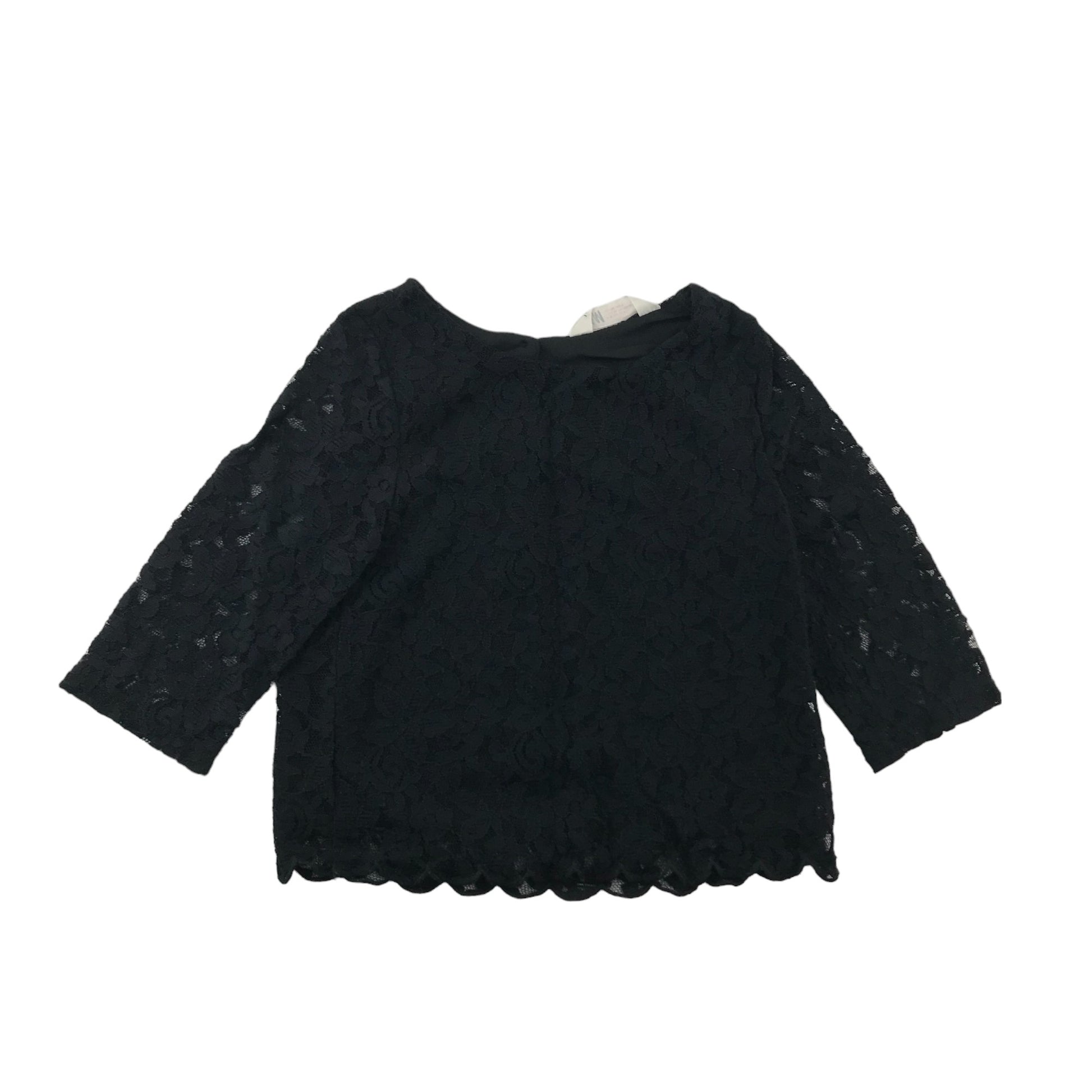 H&M Blouse Age 8-9 Black Slightly Cropped 3/4 Sleeve Lace Layered