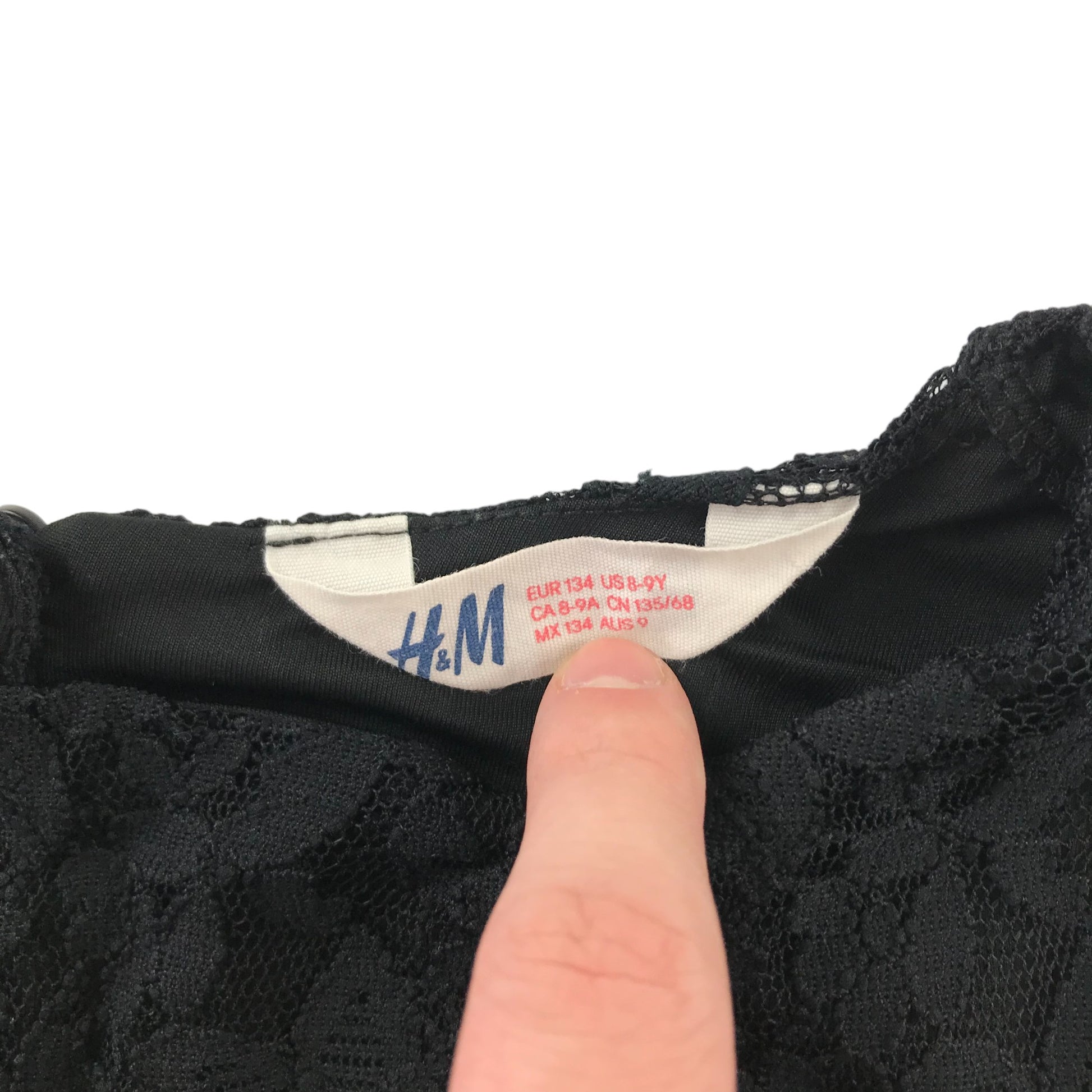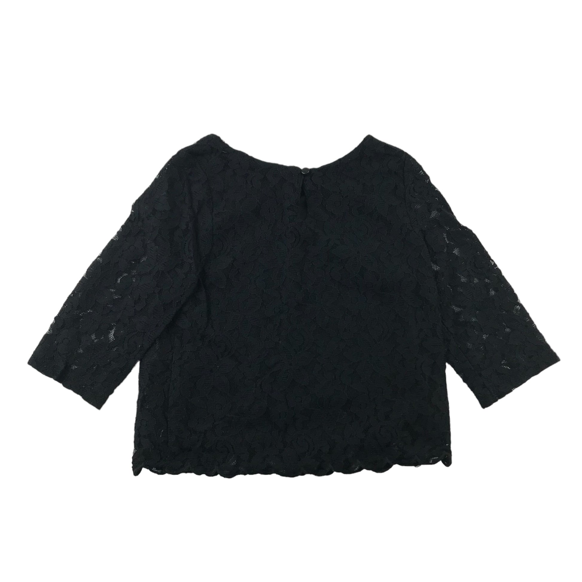 Preloved second-hand H&M Blouse Age 8-9 Black Slightly Cropped 3/4 Sleeve Lace Layered