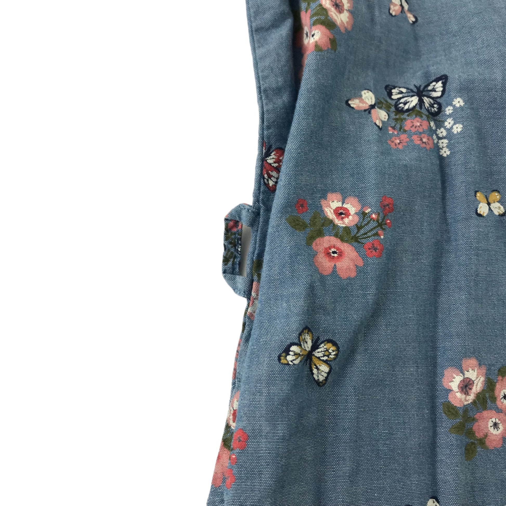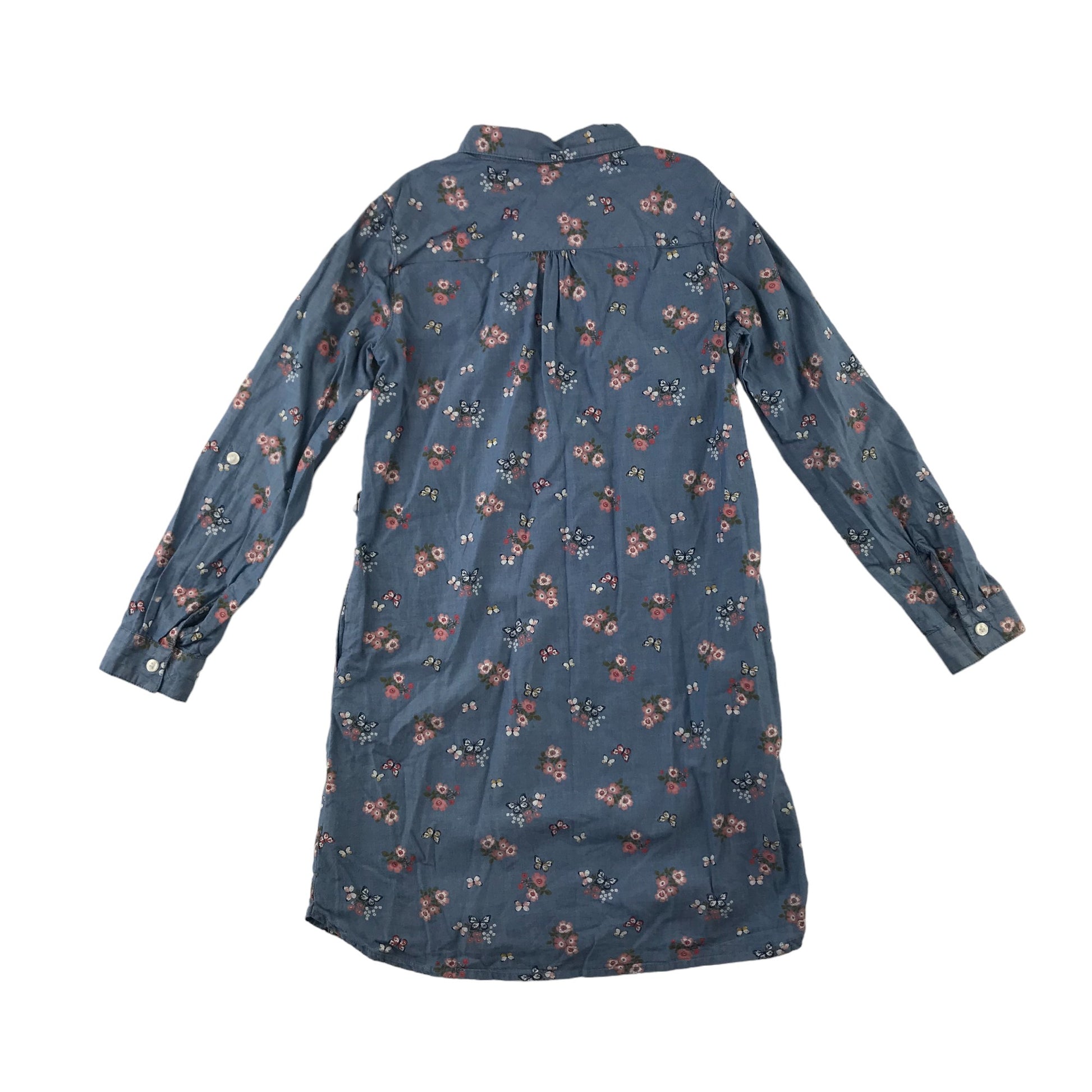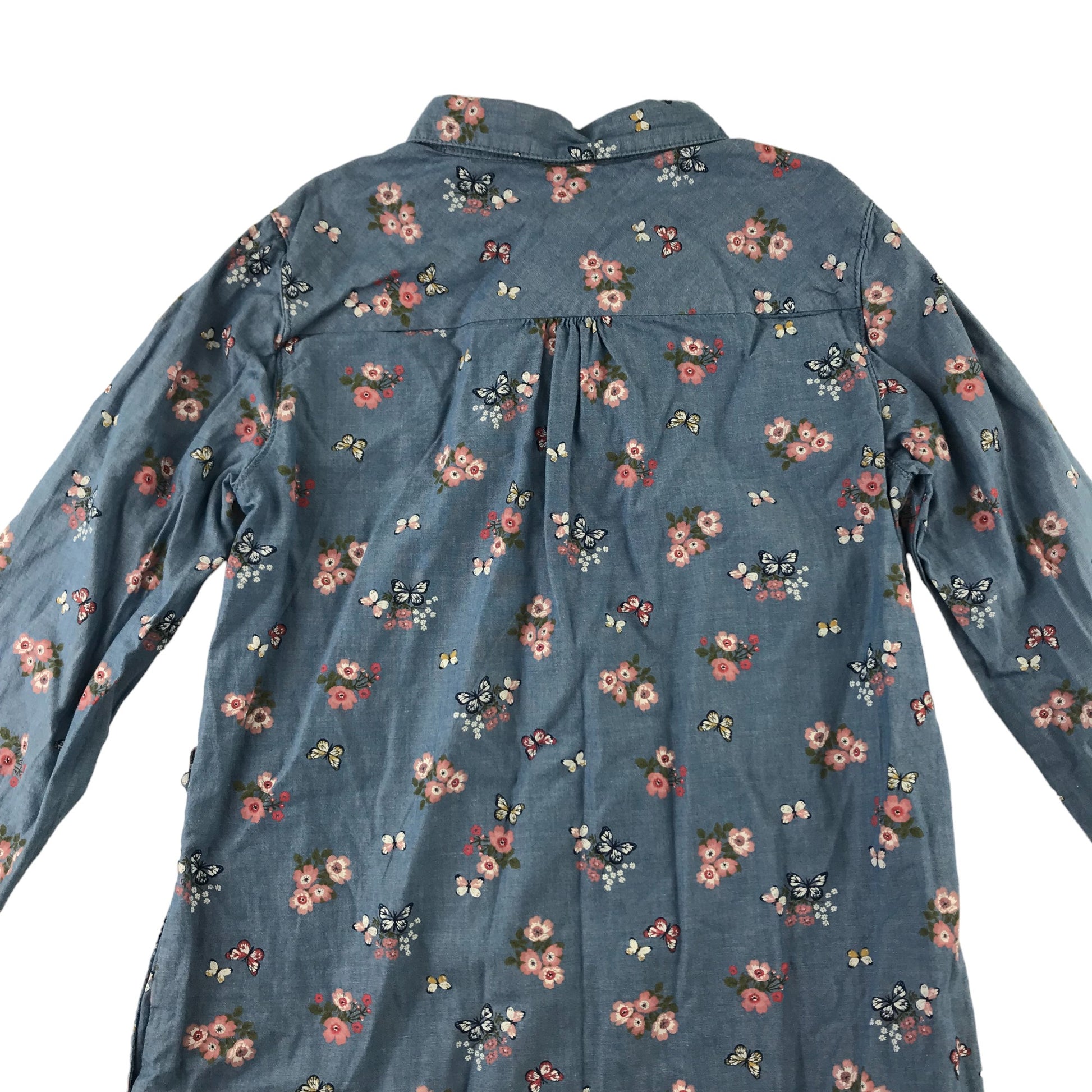 Preloved second hand H&M dress 7-8 years blue floral denim style butterfly long shirt cotton