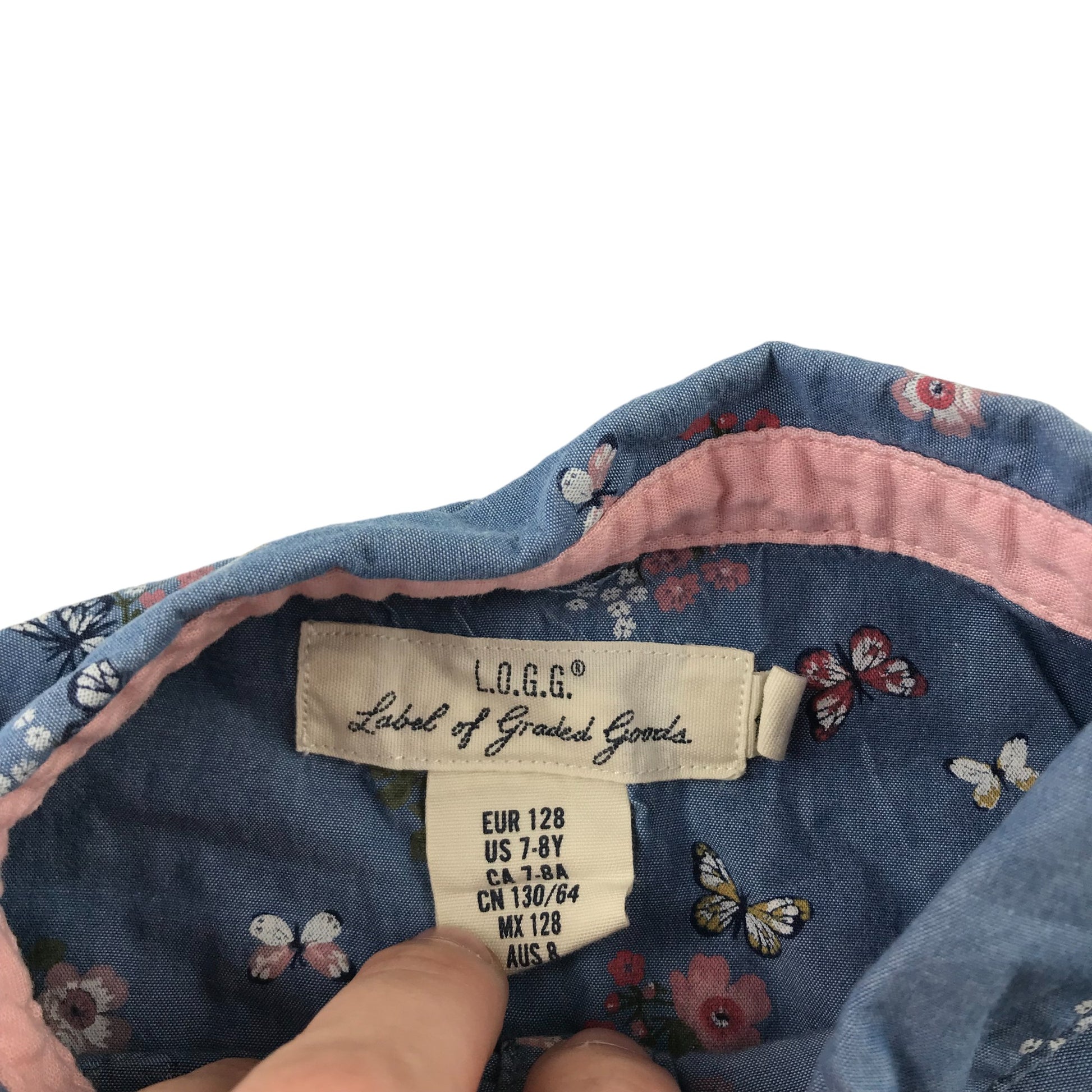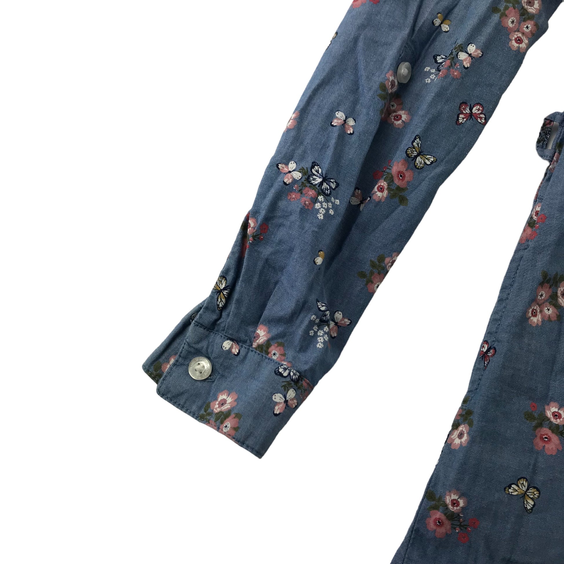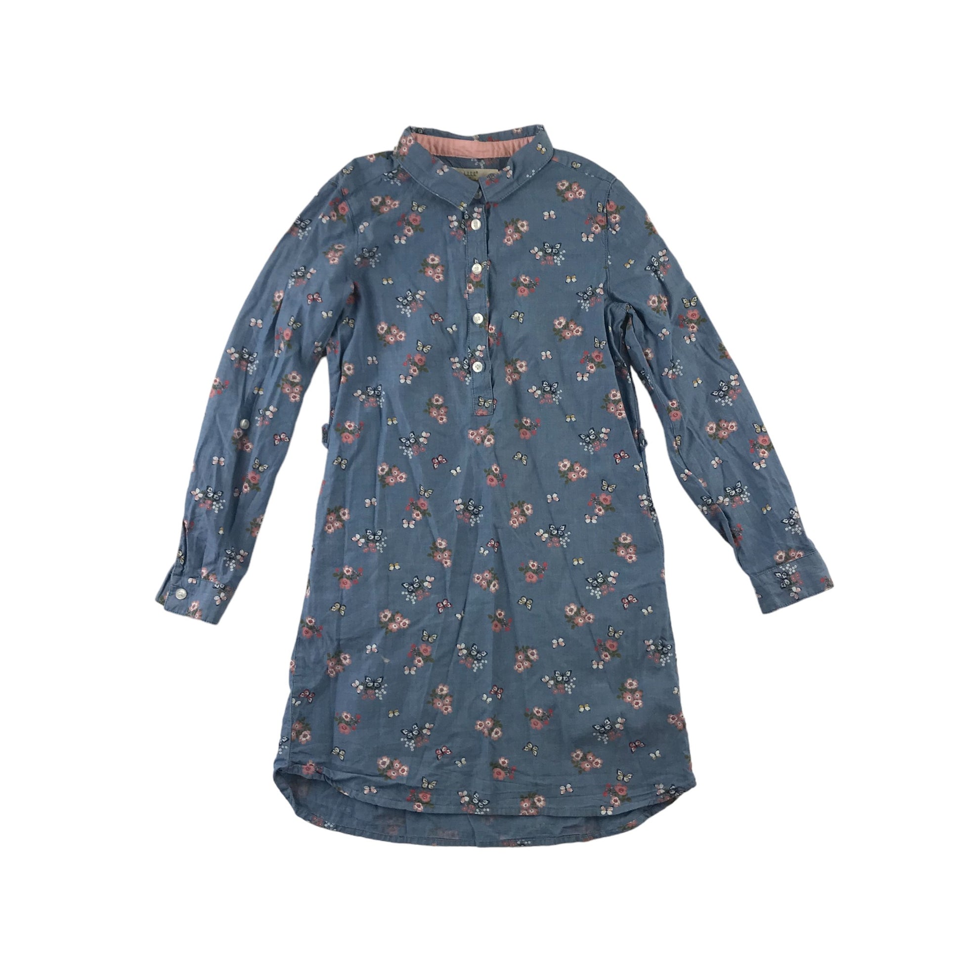 Preloved second hand H&M dress 7-8 years blue floral denim style butterfly long shirt cotton