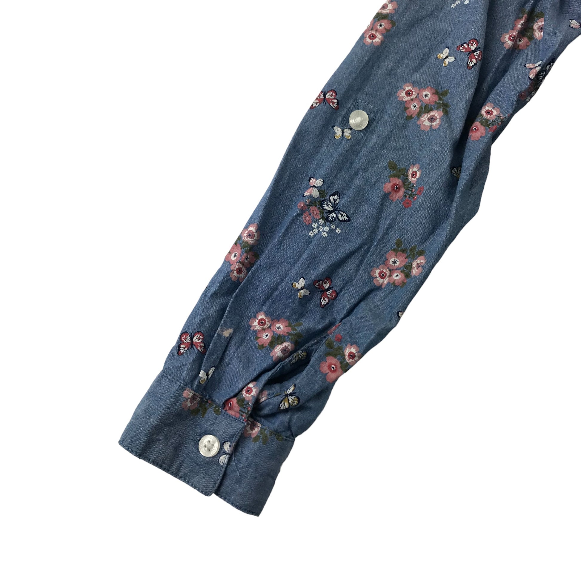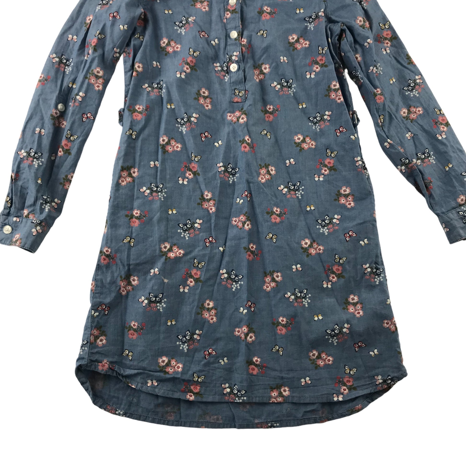 H&M dress 7-8 years blue floral denim style butterfly long shirt cotton