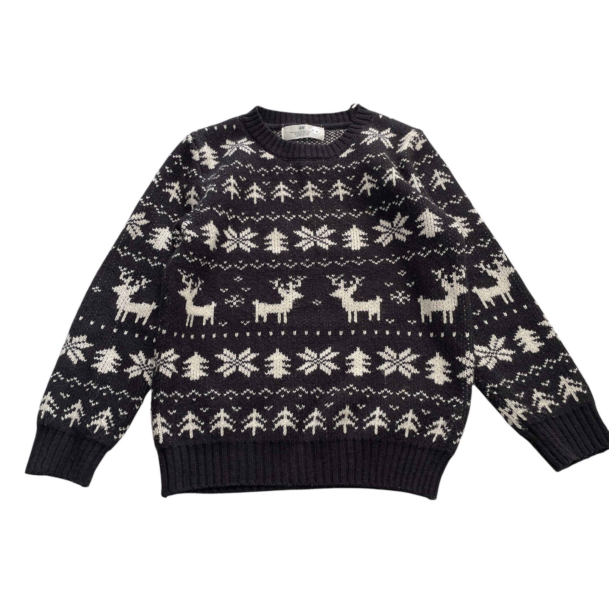 H&M festive jumper 7-8 years charcoal colour with wintery pattern