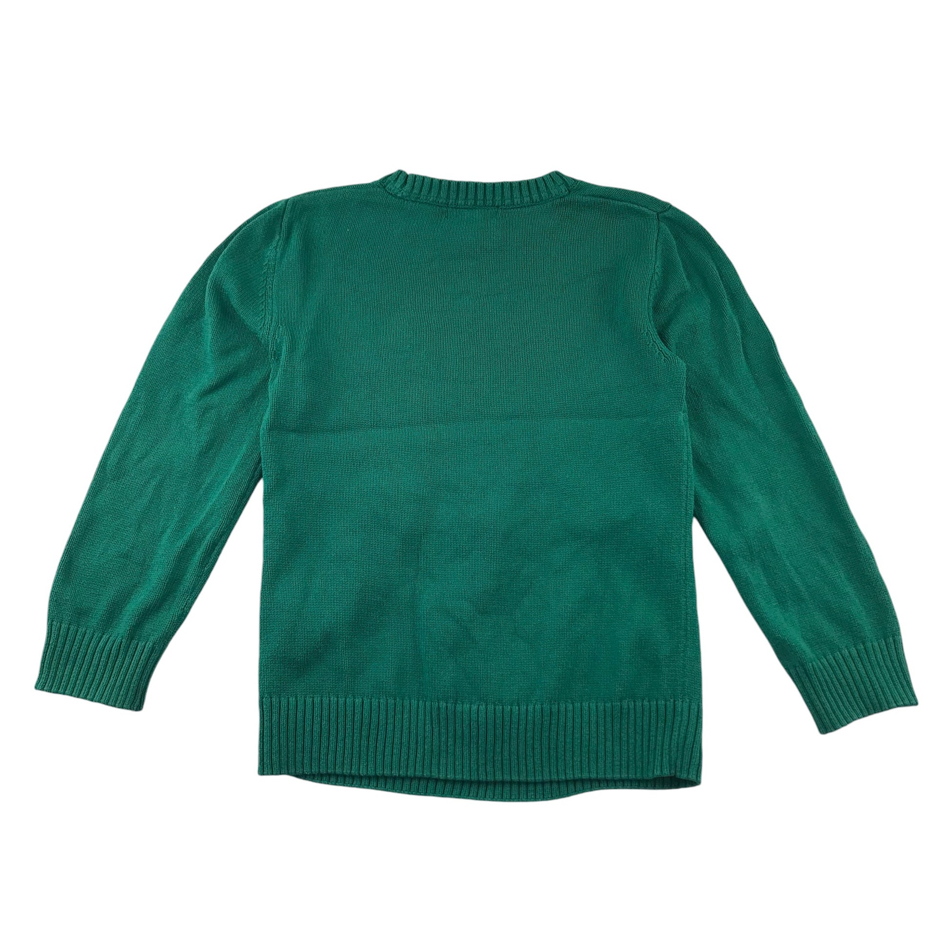 Preloved second hand H&M Festive Jumper 7-8 Years Green Snowman Reindeer and Santa Graphic Cotton