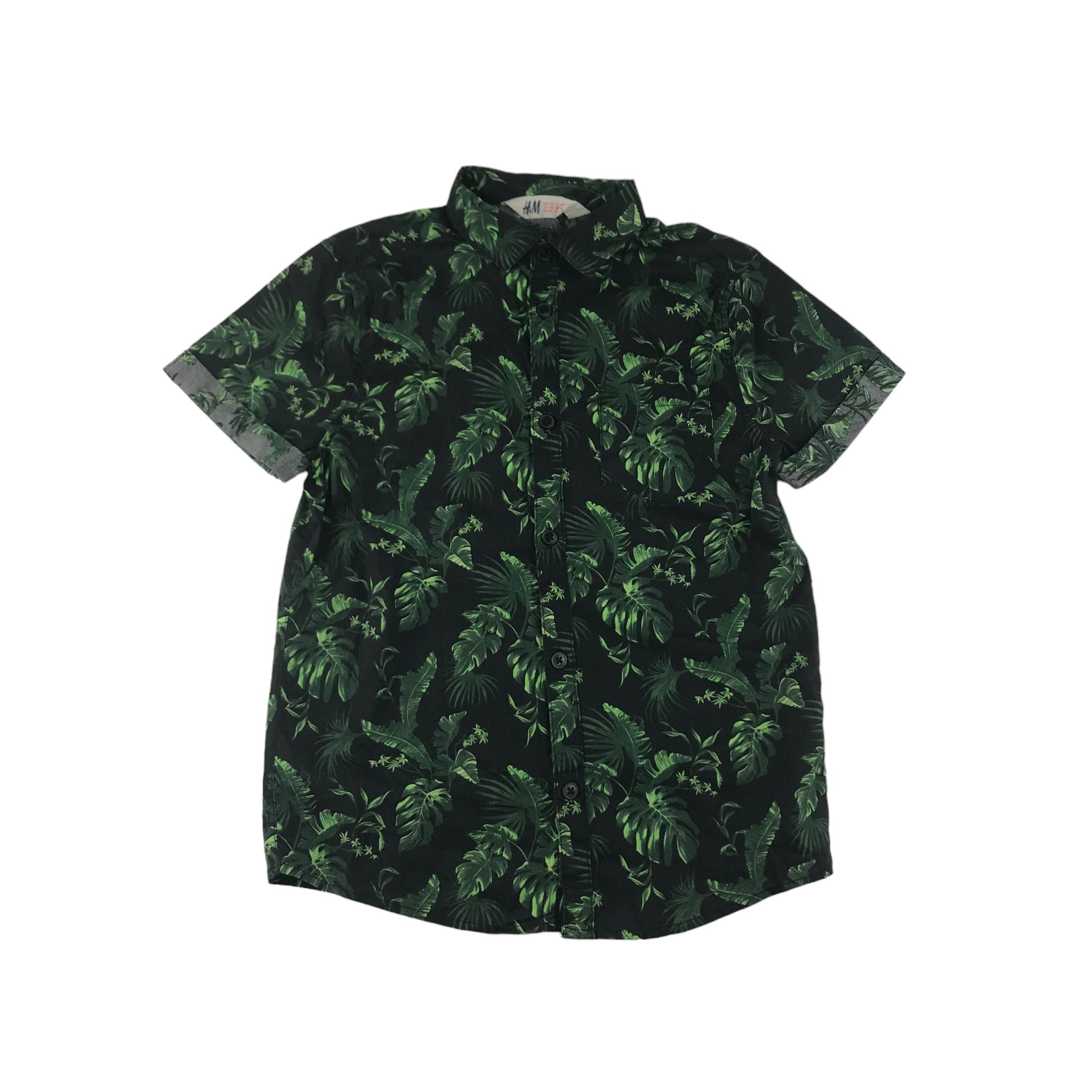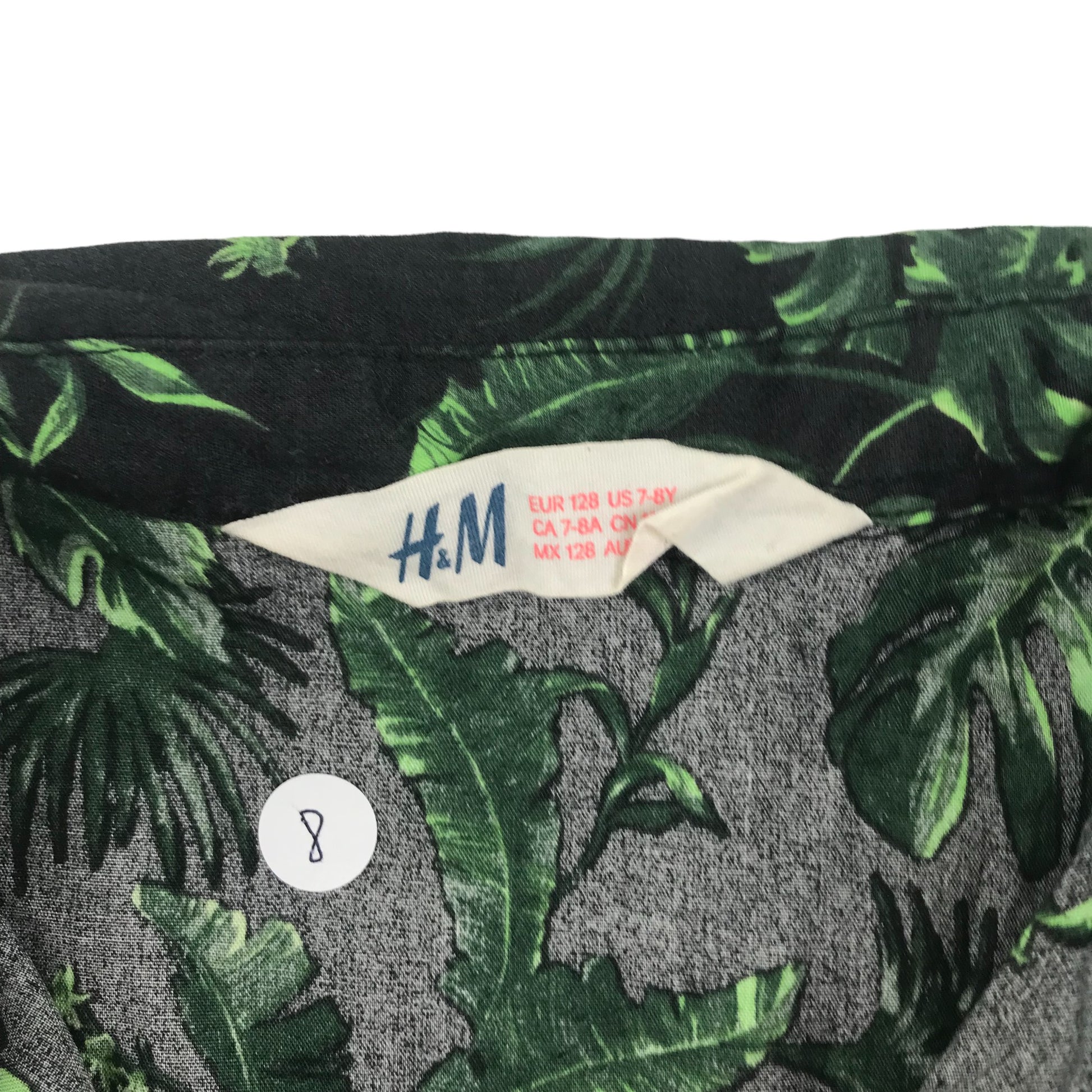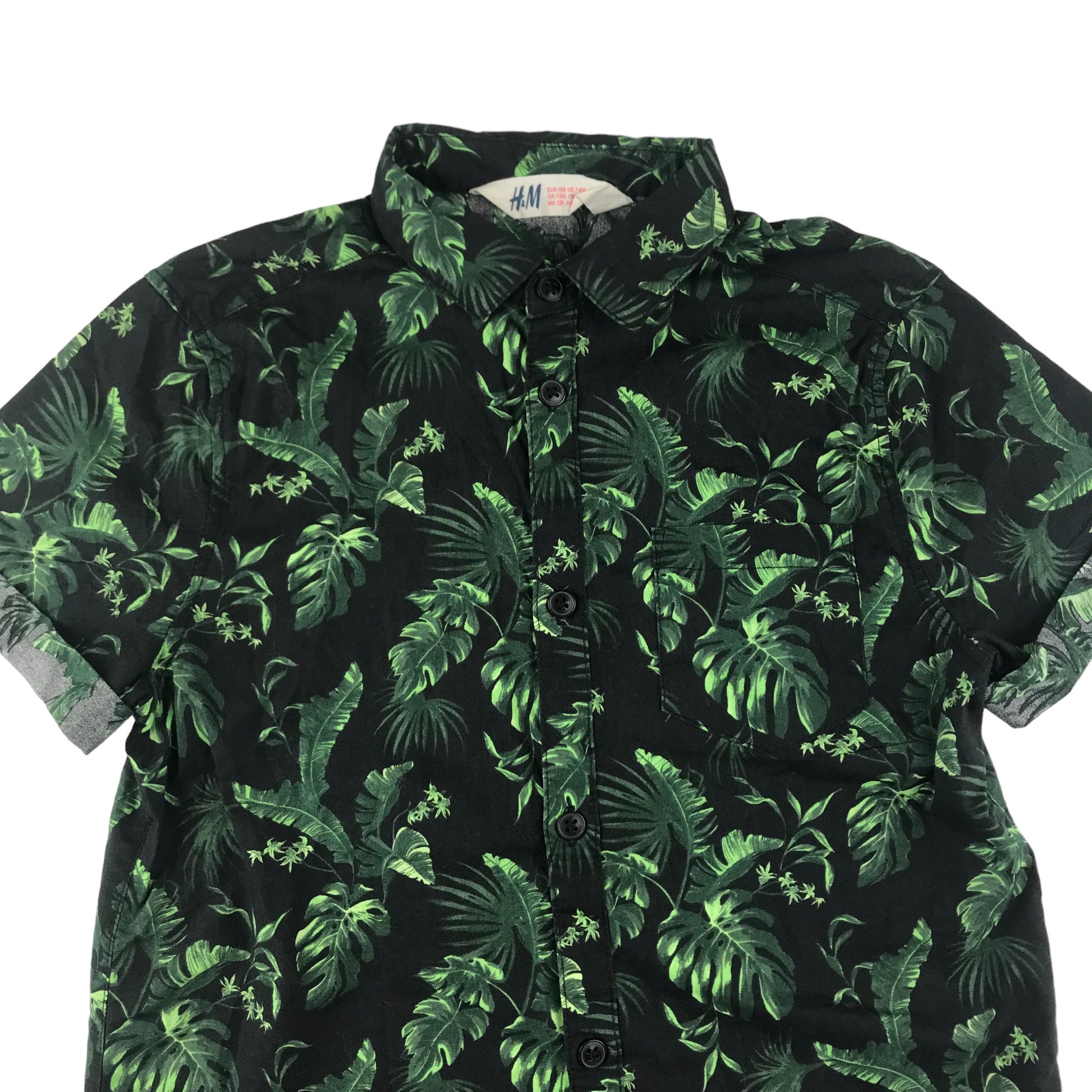 H&M Shirt Age 7-8 Green Leafy Print Pattern Cotton