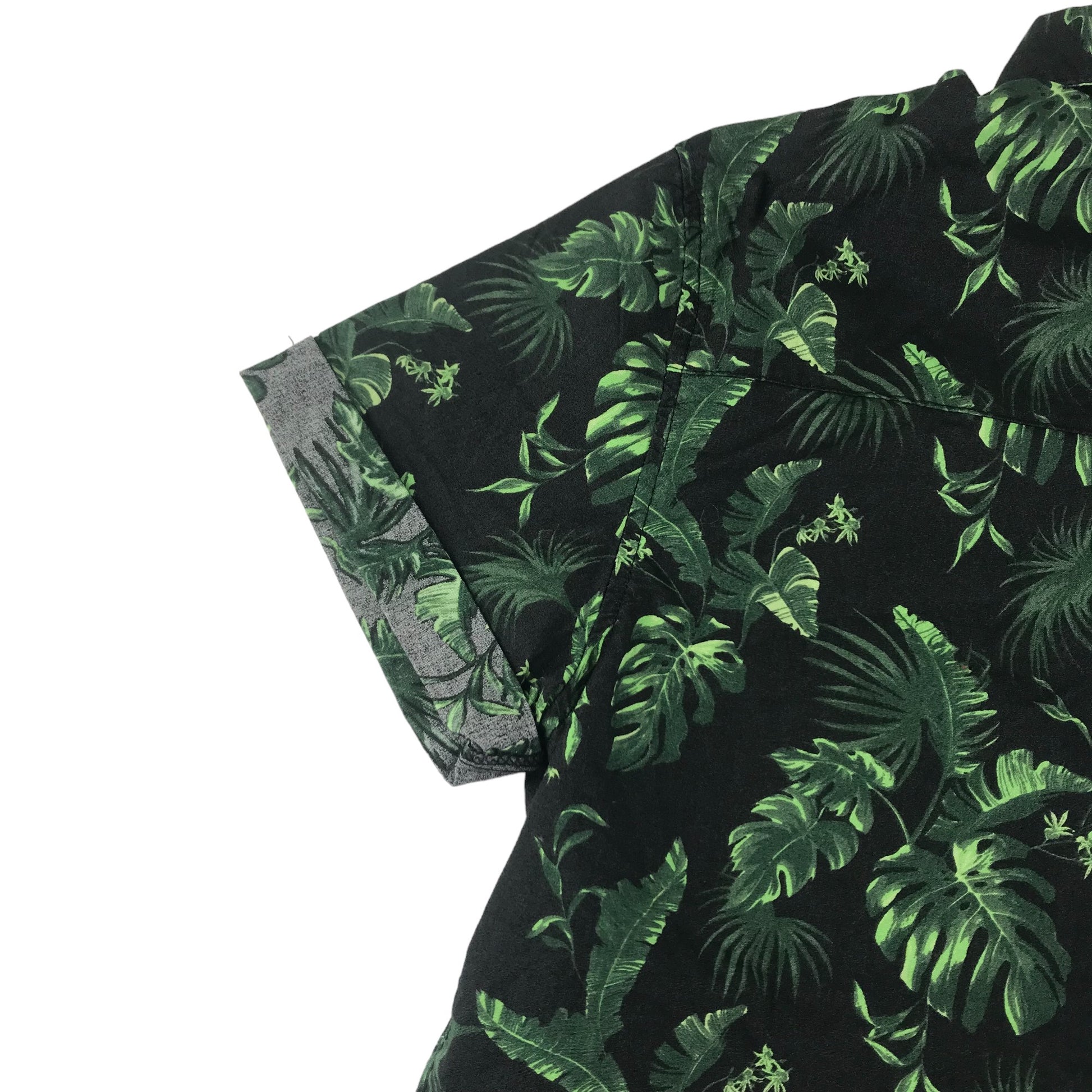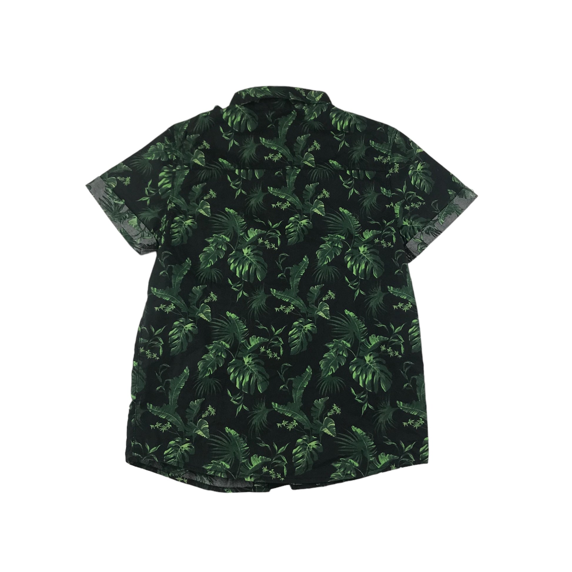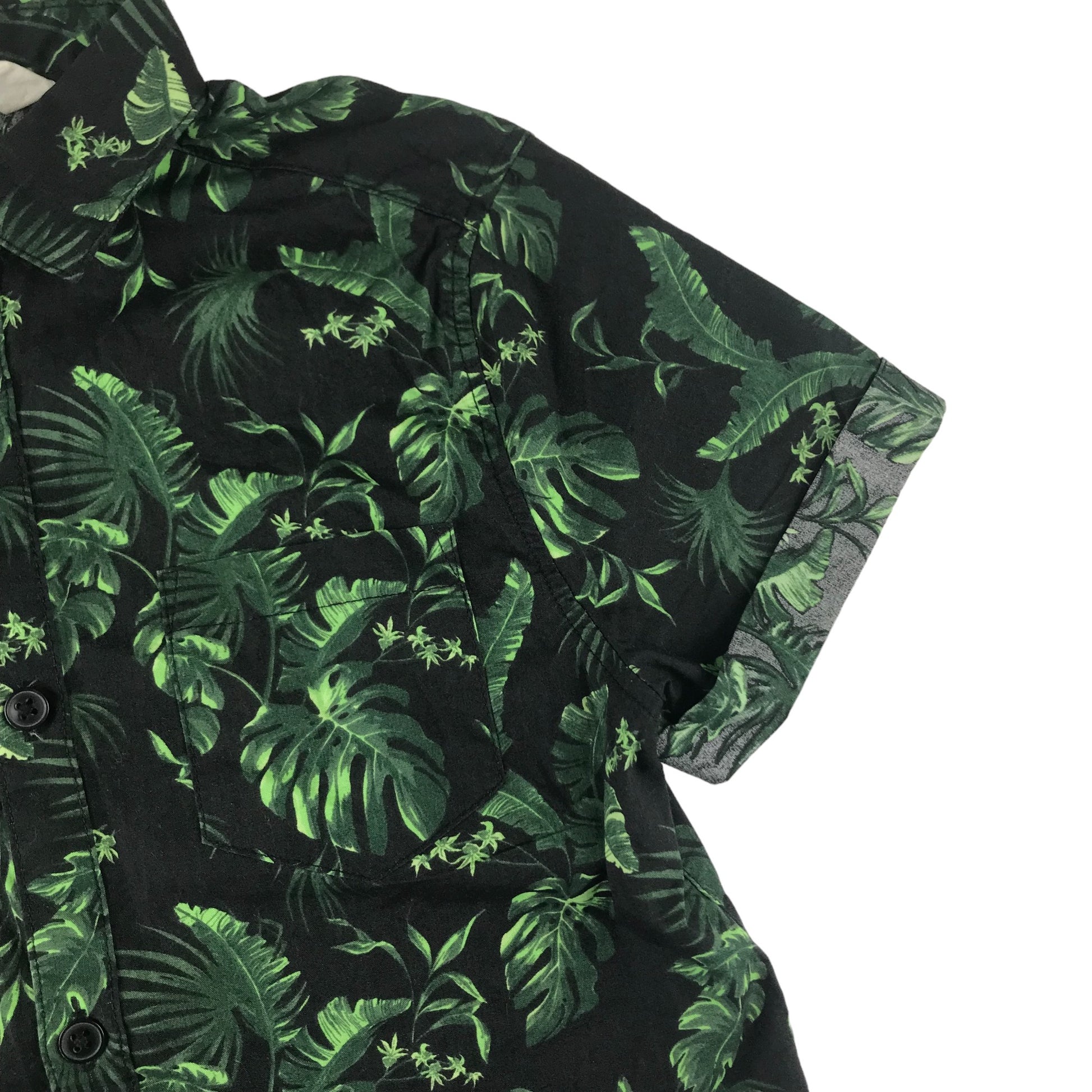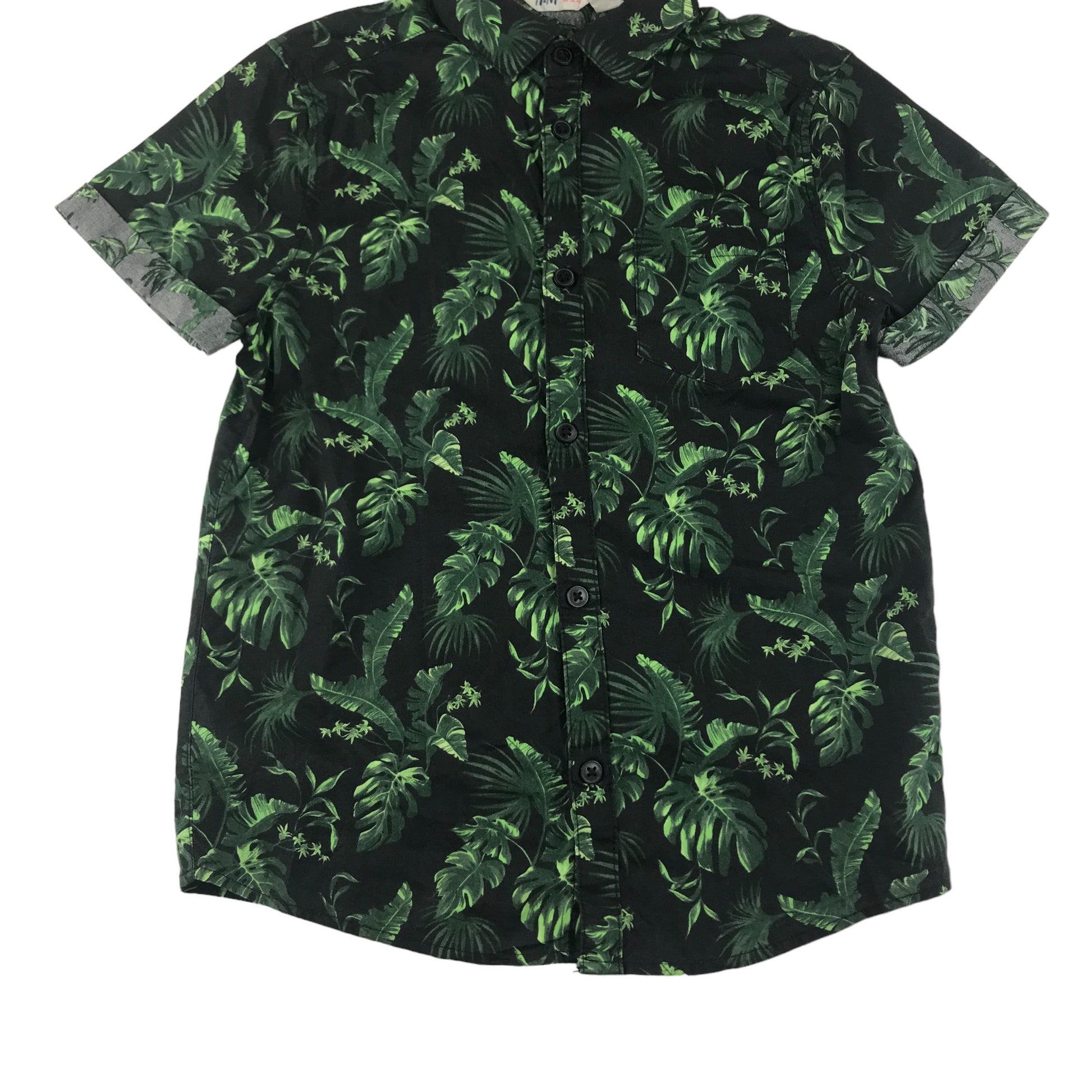 H&M Shirt Age 7-8 Green Leafy Print Pattern Cotton