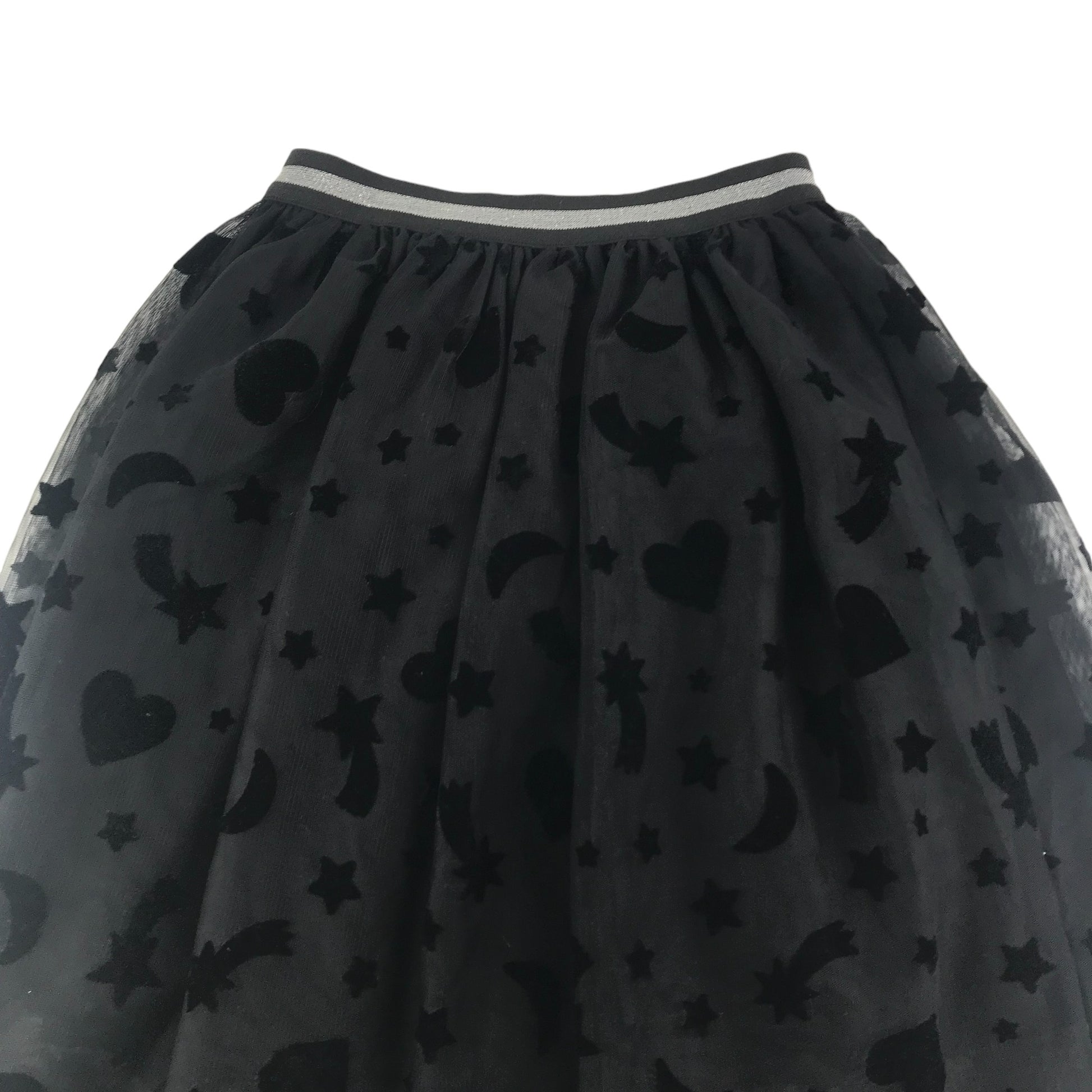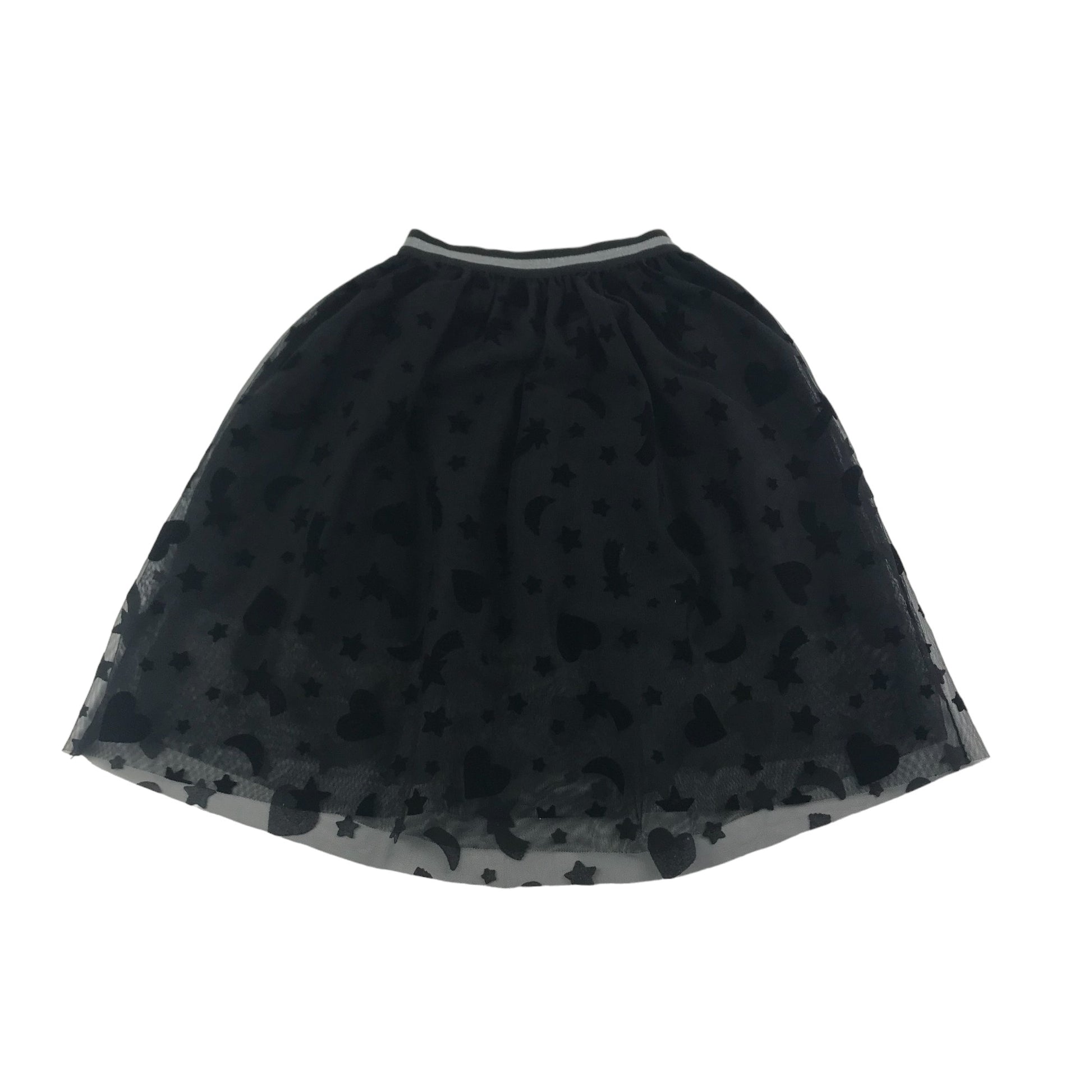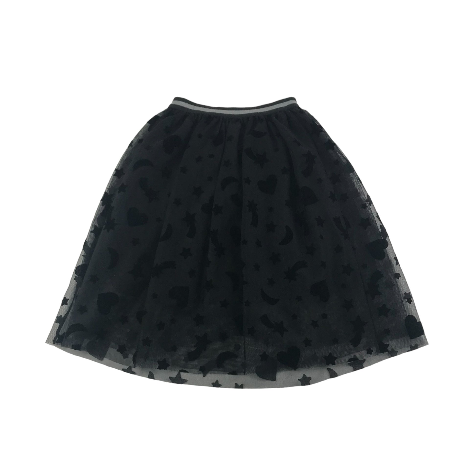 H&M Skirt Age 7 Black Celestial Love Hearts Pattern Mesh Layer