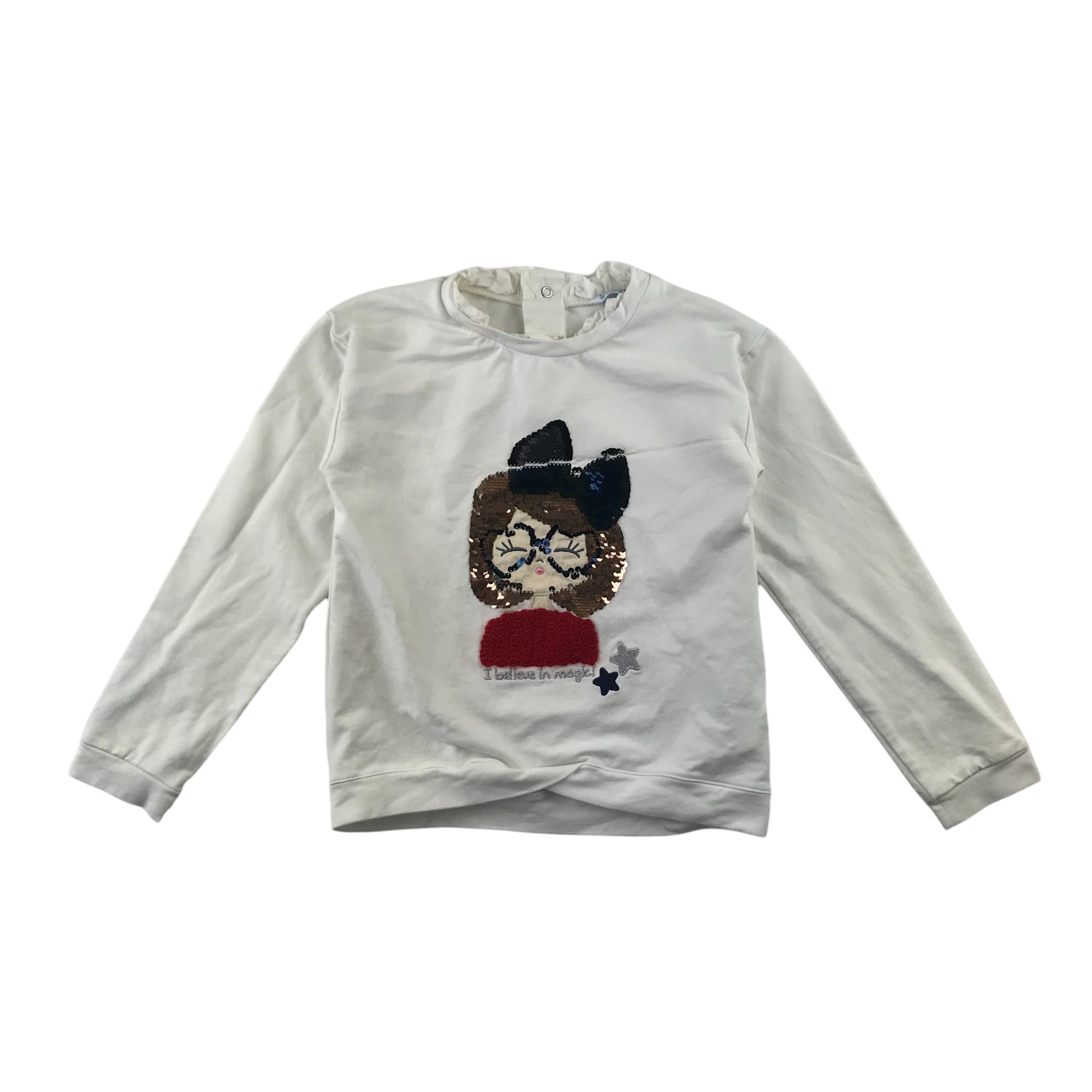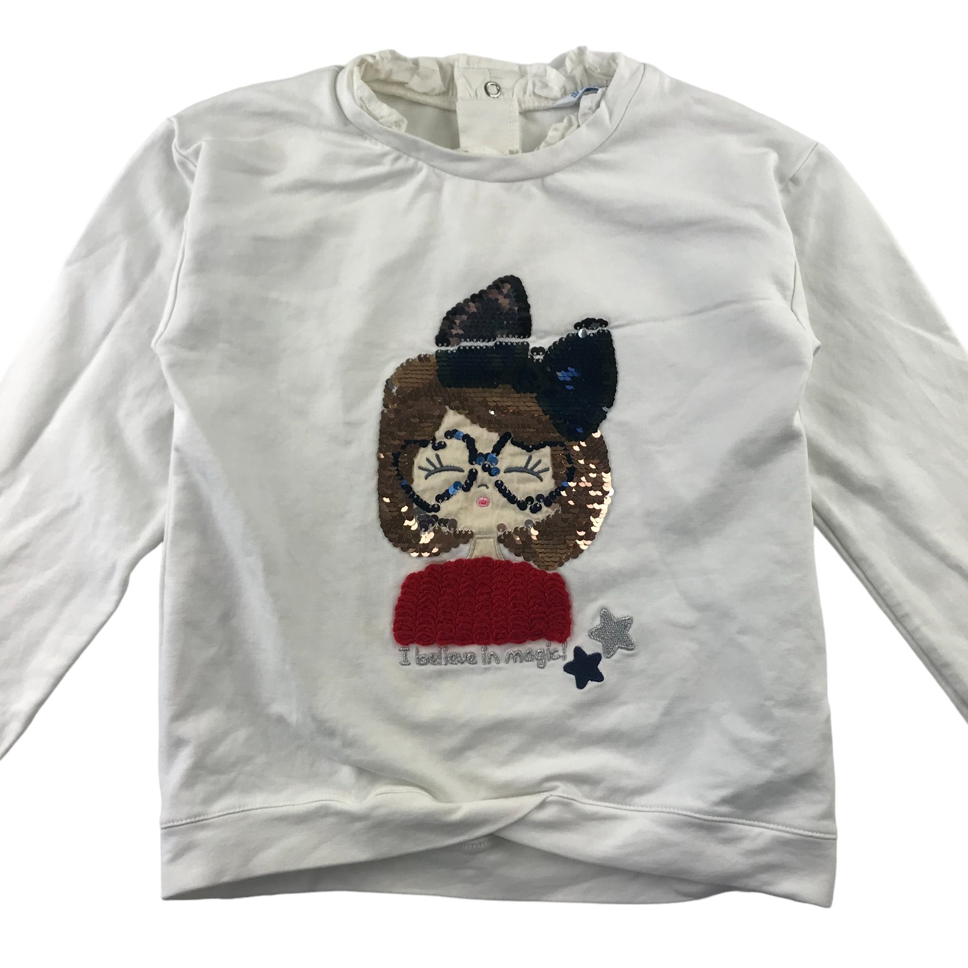 Preloved second hand Mayoral sweater 9 years white girl sequin graphic