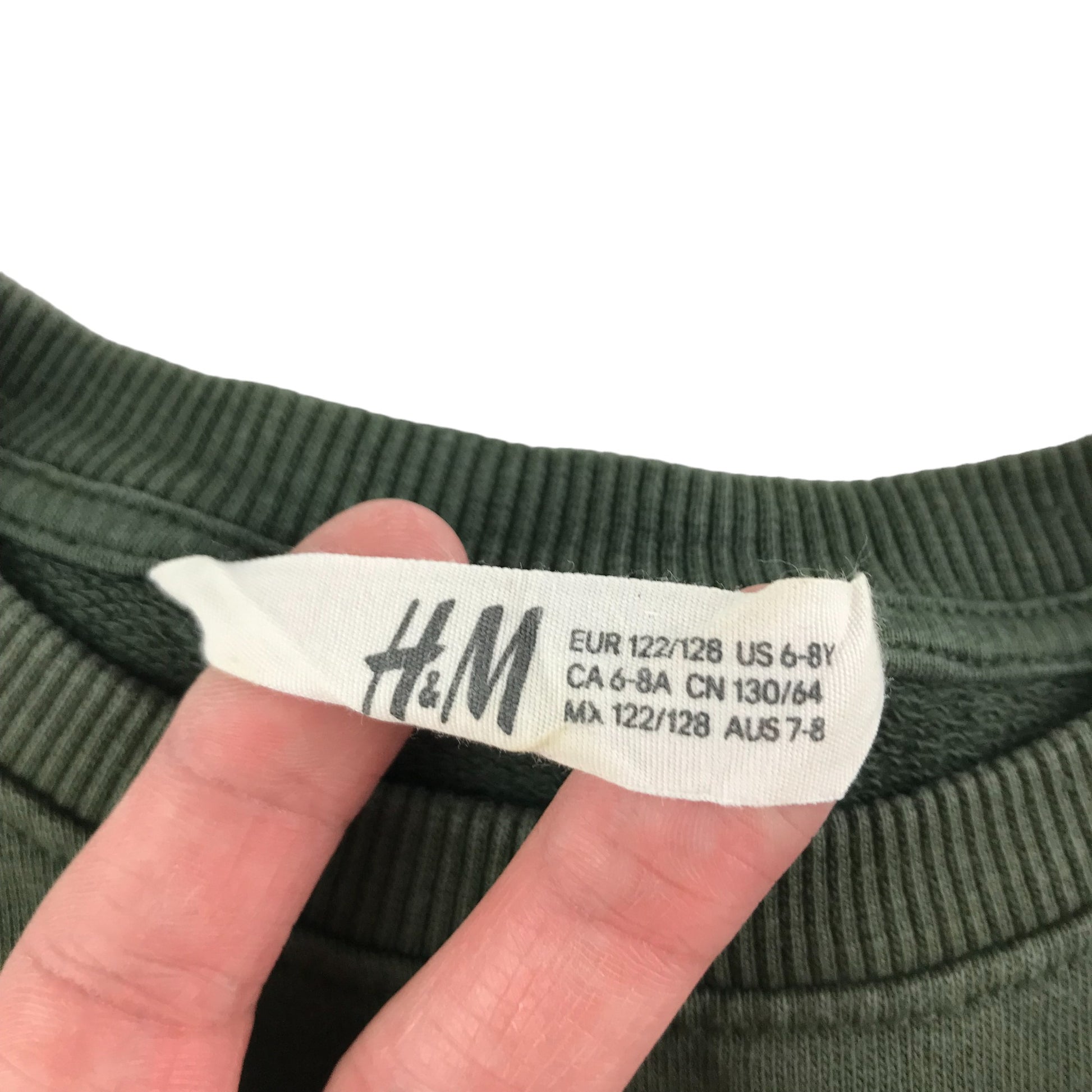 Preloved second-hand H&M Sweater Age 7 Khaki Green Sequin Dinosaur Jersey