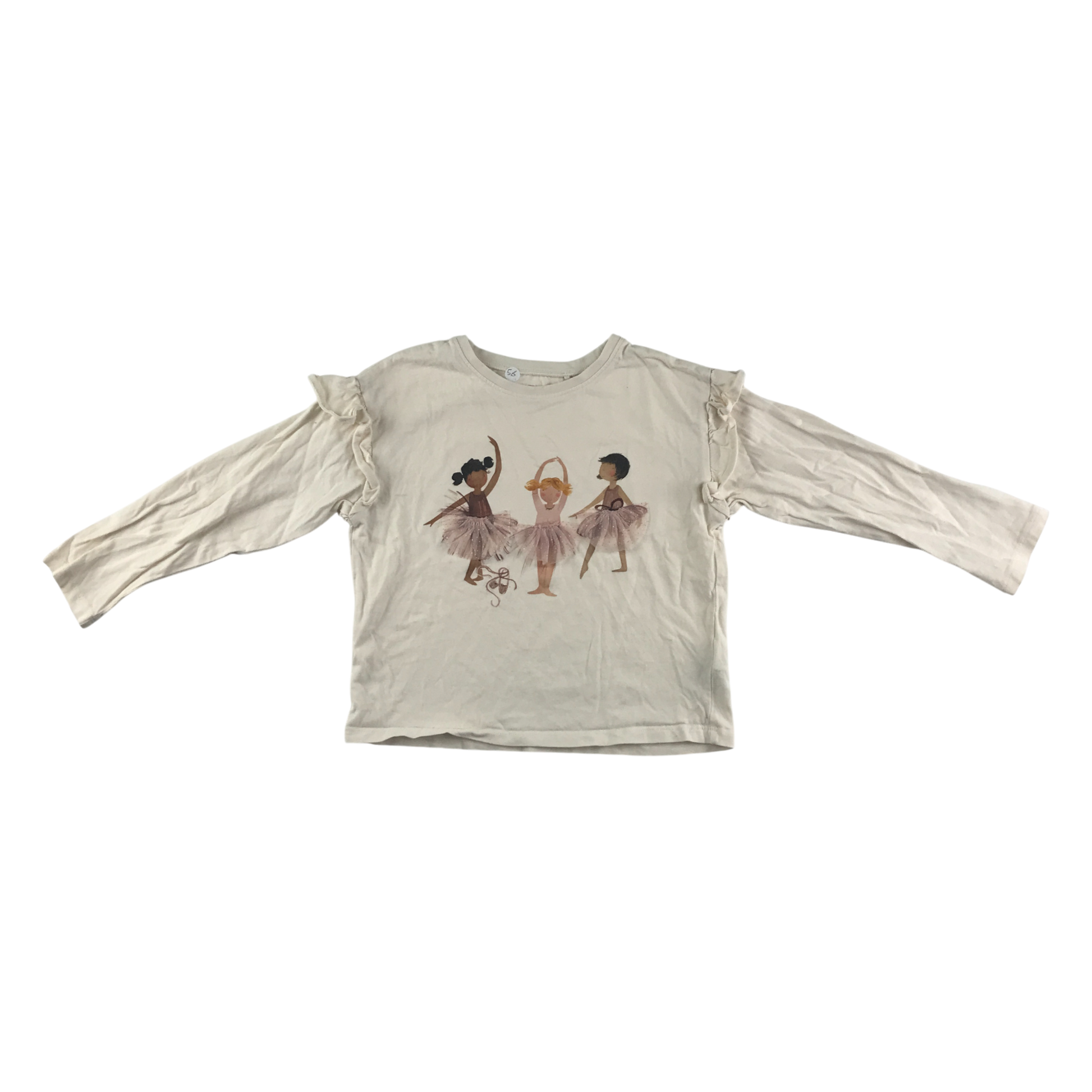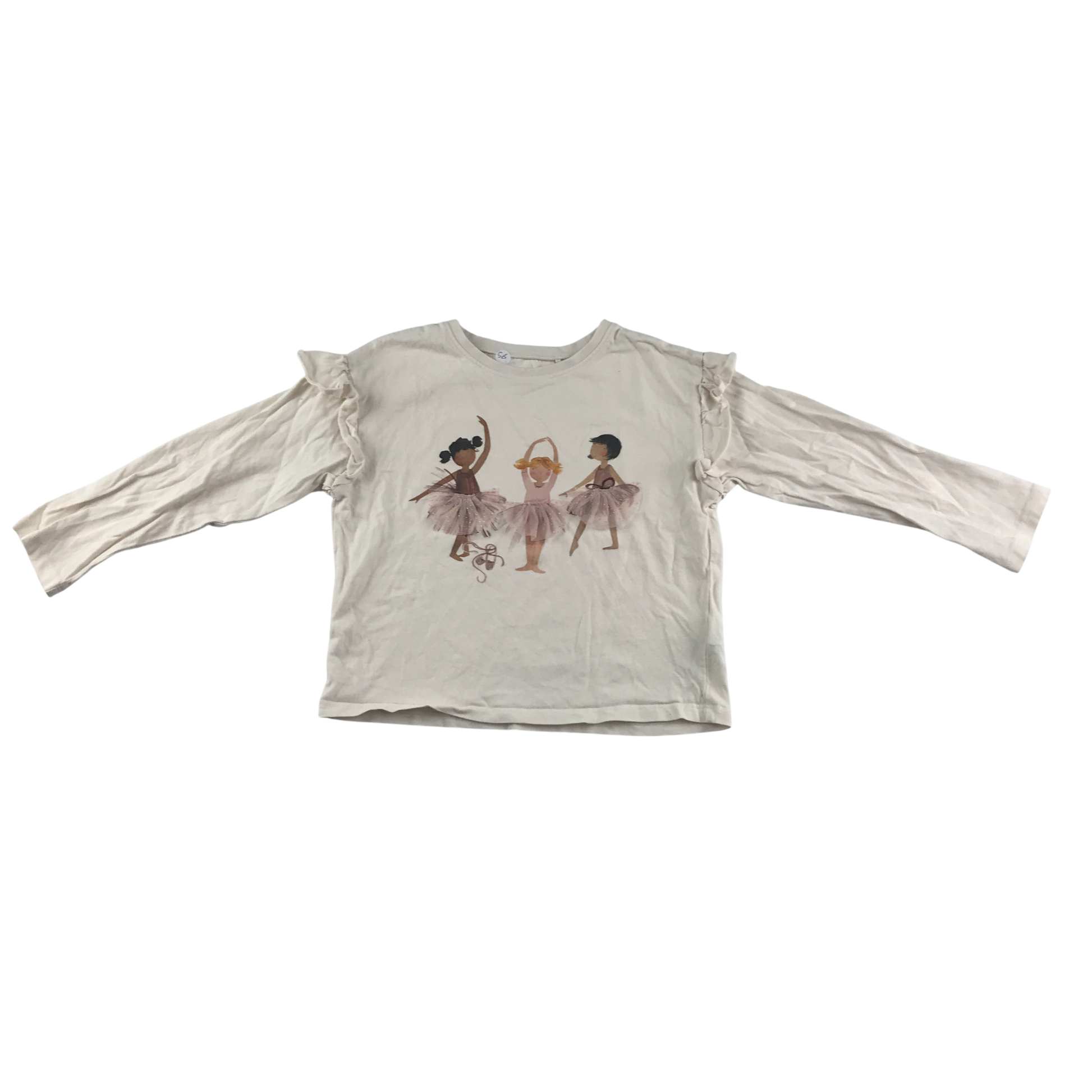 Preloved second hand Next T-Shirt 5-6 Years Beige Ballerina Design Long Sleeve Cotton