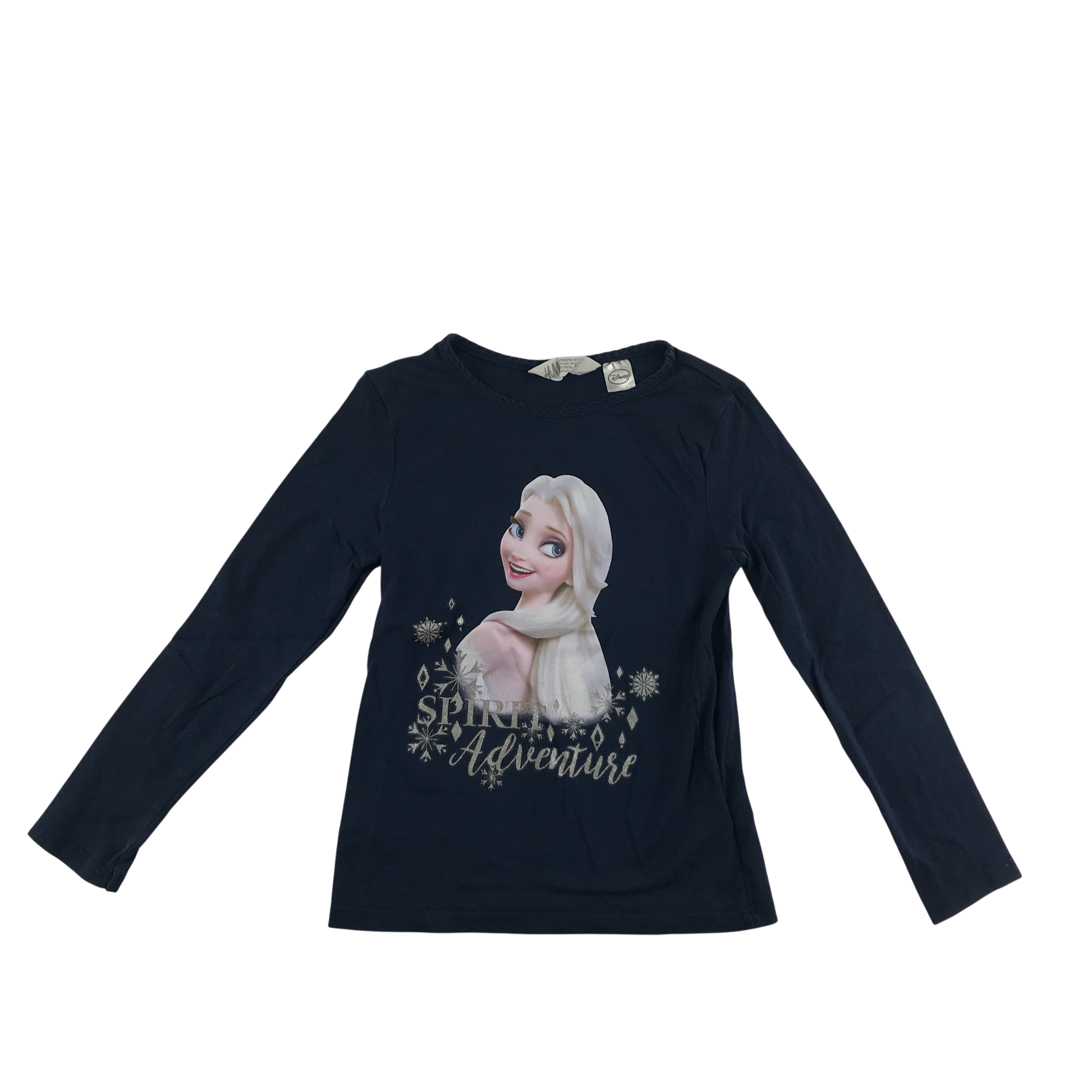 Preloved second hand H&M T-Shirt 5-6 Years Navy Disney Frozen Print Long Sleeve Cotton