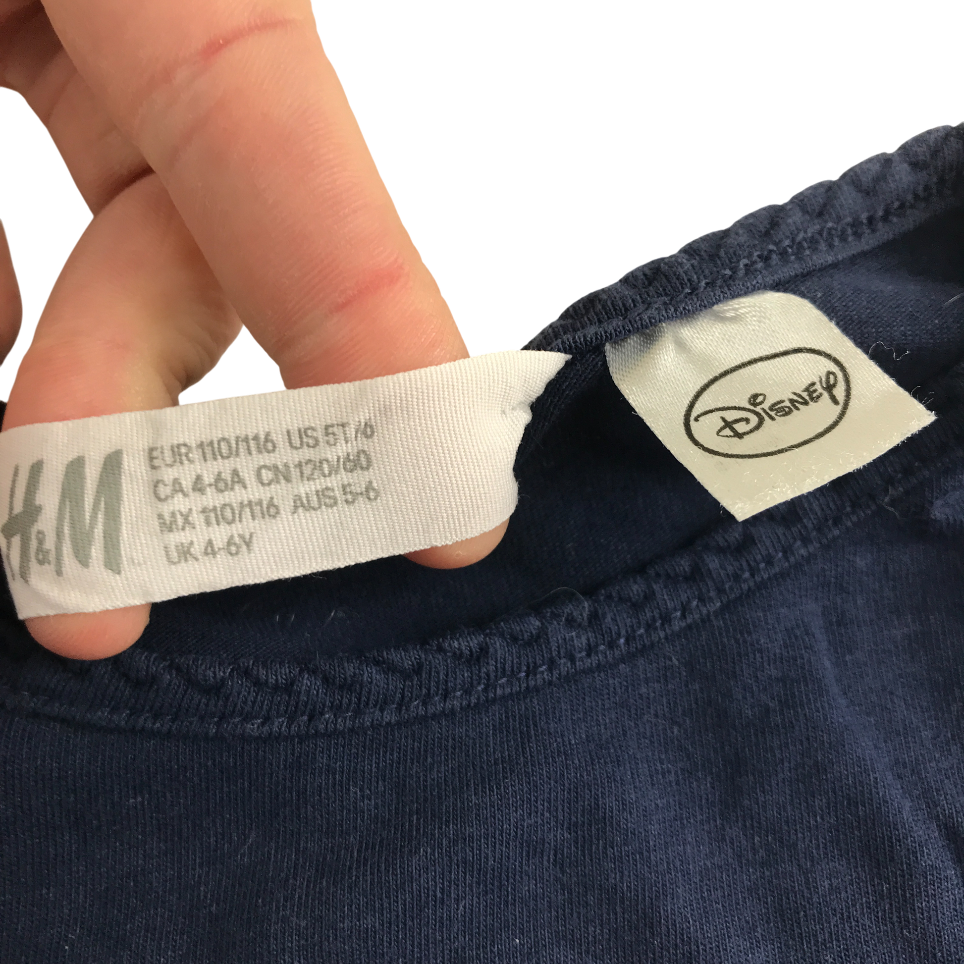 H&M T-Shirt 5-6 Years Navy Disney Frozen Print Long Sleeve Cotton